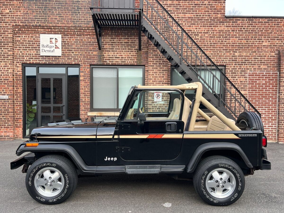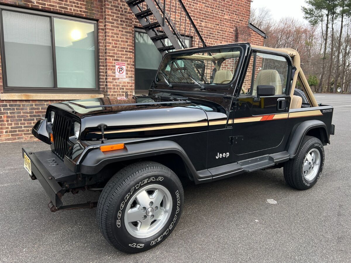 1991 Jeep Wrangler YJ. All original paint. 6 cylinder 4.0L 5 speed transmission. Original window sticker with dealer installed custom pinstripe $495.00. 120,000 miles. NO RUST. Clean CarFax.