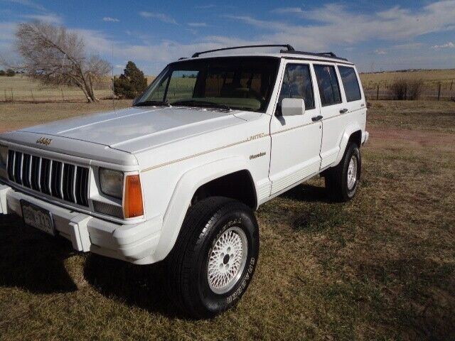 This 1992 Jeep Cherokee Limited Gold and White edition the truck is powered by a 4.0-liter inline-six high output engine linked to a four-speed automatic transmission and a dual-range transfer case. It is equipped with 15? aluminum original wheels, a roof rack, a rear wiper, air conditioning, cruise control, a cassette stereo, and power accessories. Recent service fluids and alignment and safety check. This Jeep Cherokee Limited now shows 170k highway miles and has never been used off road. I have owned it for 23 years and the last 8 years it has been in storage and driven just to keep it in good mechanical shape. The Jeep runs perfect it is all stock except it was slightly lifted for ground clearance for snow. This 92 Jeep Cherokee Limited is great shape it will be hard to part with. Bring a trailer or drive it across country your choice.