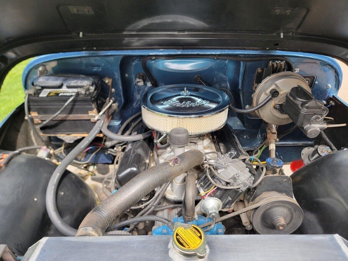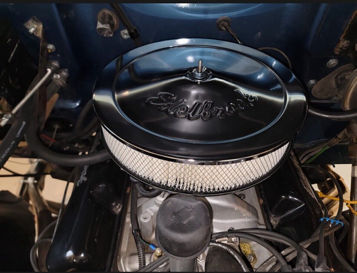 Additional equipment includes a Summit racing full barrel carburetor, Edelbrock intake manifold, and an aluminum radiator, Hedman headers, a dual exhaust system, a new black bikini top and a receiver hitch.