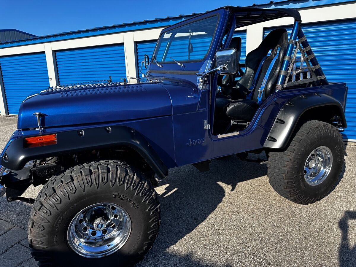 1982 Jeep CJ 5 CustomOne of a kind lifted 1982 CJ-5 with Custom V8 Conversion. Originally from BC Canada has odometer and speedometer in Kph. Brough back "Home" in 2016. Currently has 13,640 km (actual mileage unknown). This Jeep has been our pride and Joy to own for the last 9 years. Always garaged, kept clean, never off road (never in rain), regular maintenance yearly. Well built when we bought it and we have ungraded more.-All metal body taken down to metal primed painted with high quality PPG ford GT blue paint (painted 2019). Paint high quality with some imperfections (run-see photo) not a show quality but looks awesome.-Jeep YJ sheet metal-Aftermarket hood with louvers-Bimini Top-PS/PB Disc front rear drum-Early 70's 350 Chevy small block 375 HP-4 bolt mains, 10:1 compression, HEI distributer, MSD plug wires, high volume oil pump, Corvette baffle oil pan, Racing cam, World S/R Torquer heads, GM performance intake, 194 intake & 150 exhaust valves, Edelbrock 600 Carburetor-Shorty Hot Rod Headers, Dual exhaust with turbo mufflers-Turbo 350 3 sp automatic, with Hurst Shift kit and low stahl Torque Converter-4" lift on 35x12.5 R15 Mud terrain tires on Craeger wheels-Dana 300 gear driven transfer case & advanced adapters link transmission to transfer case-Dana 44 Axles front and rear. 3.92 gears-Super Winch Manual locking hubs-Powder coated axles and bedlined interior-Bushwacker fender flares-Full Roll Cage-15 Gallon fuel tank with new sensor/gauge Autometer and high capacity new fuel pump.Other upgrades;-Aftermarket bluetooth JVC stereo and speakers-CB radio with after market red antenna-Upgraded gauges including aftermarket Autometer: Fuel, oil pressure, coolant temp, voltage and tachometer (stock odometer and speedo work others do not)-Upgraded Edelbrock high volume made USA water pump.-After market high performance Entropy aluminum hand made in Chicago USA radiator with large electric fan and battery isolator.All maintenance records always premium 93 octane fuel and full synthetic oils.Reason for selling: Moving across country don't use as much as we would like to! Turns heads everywhere you go, awesome loping exhaust noteVideo athttps://youtu.be/P3Help7_UX0 Copy and paste into browser