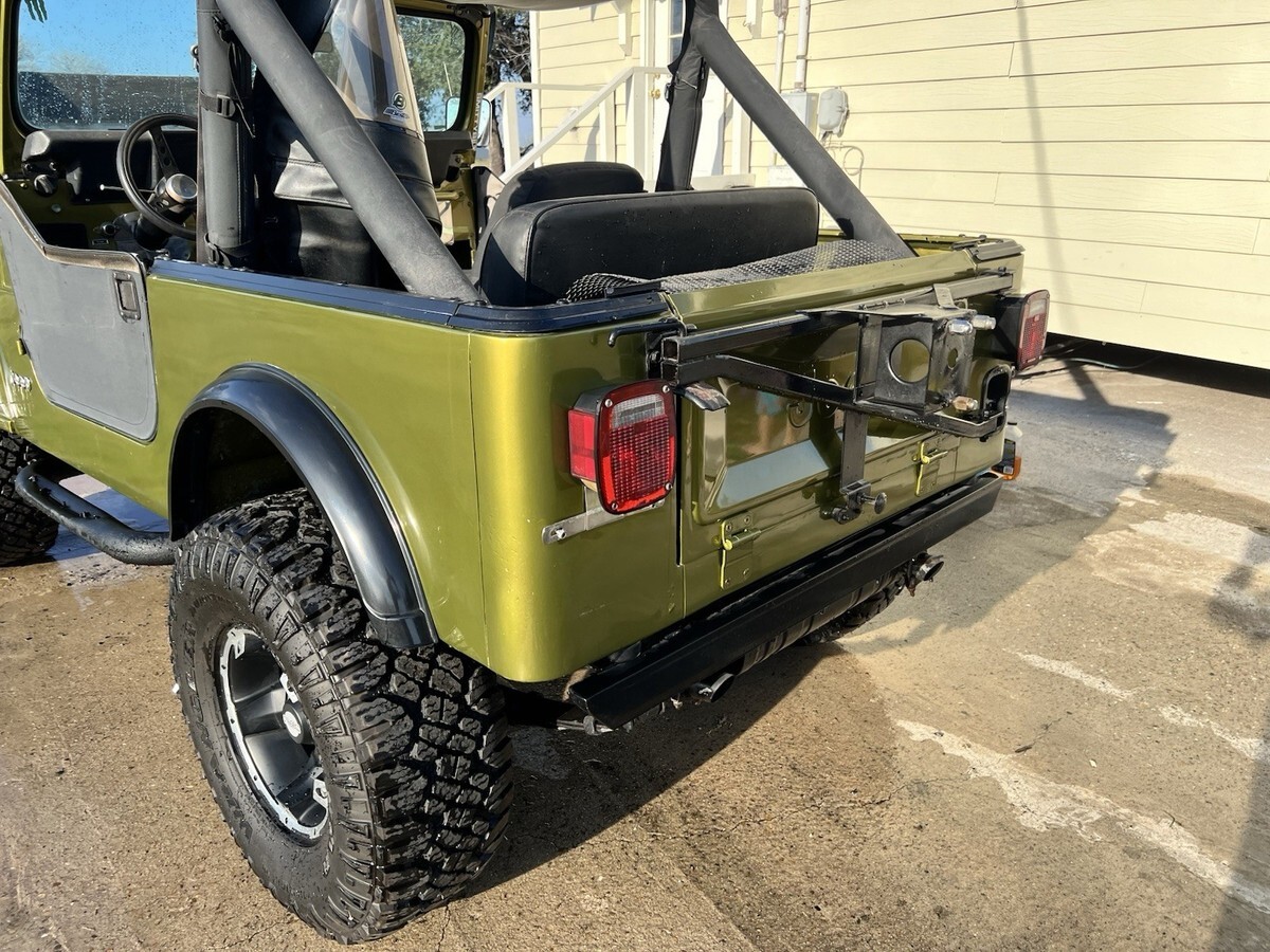 Experience the classic charm of off-road adventures with the 1982 Jeep CJ. Equipped with a 8-cylinder engine, not original and a manual transmission, this CJ promises a hands-on driving experience that connects you directly to the rugged heritage of American-made vehicles. Its timeless green exterior pairs seamlessly with the sleek black interior, creating a color scheme that's both stylish and iconic. Accommodating up to four passengers, this two-door vehicle offers an intimate setting for adventurous spirits. The Jeep CJ is known for its durability and simplicity. Embrace the nostalgia and capability that comes with this 1982 Jeep CJ, ready to tackle any terrain that challenges your sense of adventure.