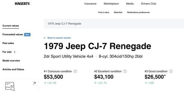 I purchased this CJ7 last year in Phoenix and had it shipped here because I wanted a clean car from the SW.The prior owner bought it new but had not driven it for many years due to a family tragedy.I have priced this jeep very reasonably and included the Hagerty report so that you can judge for yourself.This Jeep is a very solid and low mileage CJ7 that will not disappoint you.It has the desirable 304, 4 speed manual transmission with granny low, power steering, power brakes and EVERYTHING works.Every gauge works, all lighting works, transmission is easy to shift, and 4wd runs quietly.I converted all of the bulbs to LED for reliability and better visibility at night.Every fluid has been flushed (brakes, steering, transmission, axles,…) and replaced with high quality fluids. All new belts and hoses. Basically, all rubber has been replaced including fuel lines, tailgate gasket, windshield and gasket, etc.This jeep has not been molested. It has the original floors, and they are solid. It even has all of the emissions equipment, and it all operates flawlessly.It starts easily and runs strong with a new carburetor and recent tune up.The exhaust, including the catalytic converter, was just replaced and it sounds great too.It has the dash mounted tachometer, blue tooth stereo with 4 new speakers, a rear lock box, locking console, etc.The BestTop complete top has factory tint and is only a few months old. It also has the Bimini top as shown in the pictures.It does not leak any fluids and does not smoke or make any odd sounds.No rust thru on floorboards and all sheet metal is original. There is one small spot of bubbled paint near the embossed logo on the passenger side. I have never seen a Jeep without that spot and the rest of the car is clean.This is a nice jeep for cruising around town or taking off-road reliably.Selling because I only have a two-car garage and do not want to leave it sit out,The only thing I have not used fully is the winch...it has all of the controls and wiring is hooked up correctly, so I assume it works. It is from the era of vehicle and is very desirable and valuable by itself.Only contact me if you are a serious buyer. I do not want any solicitors.