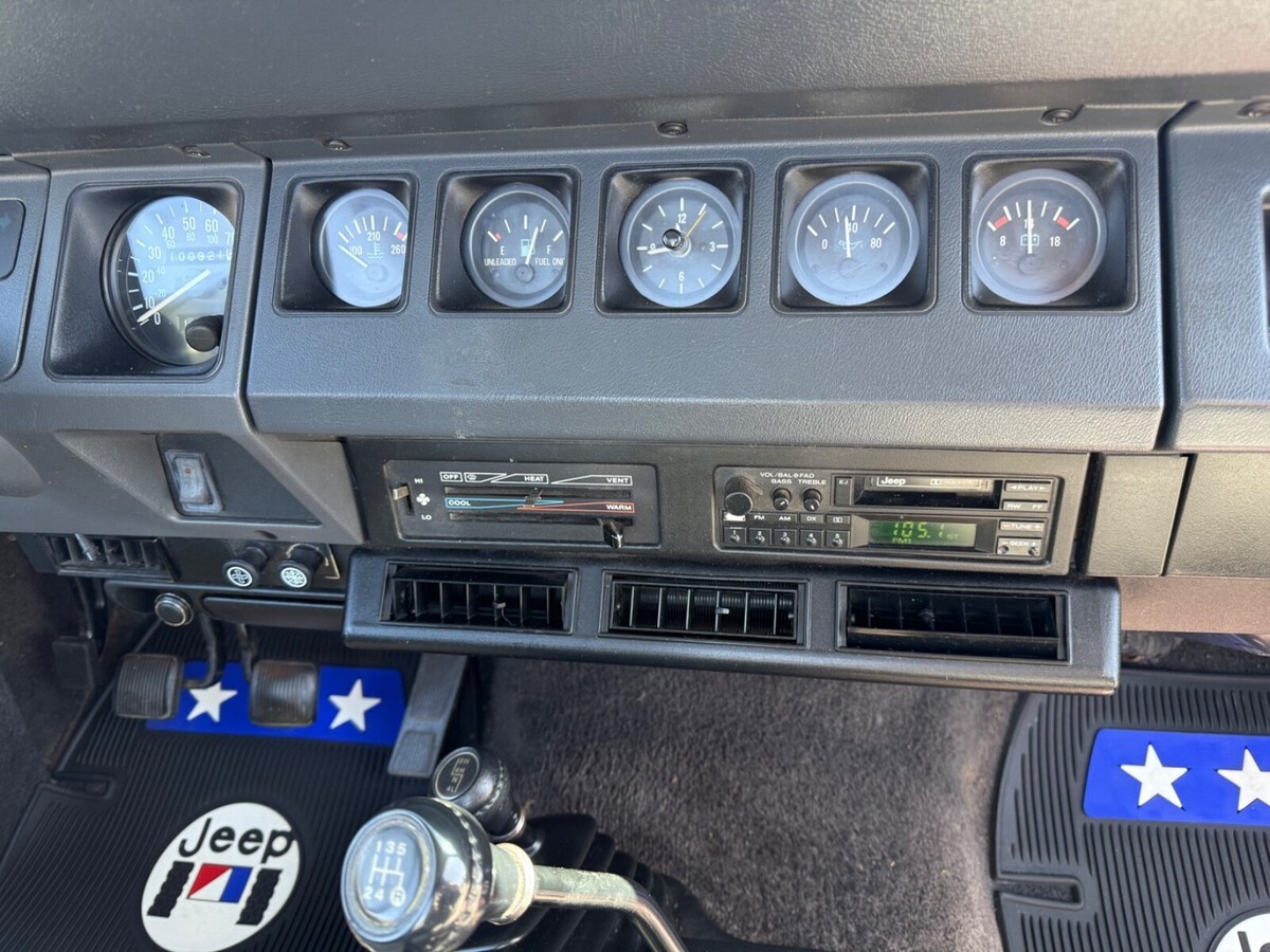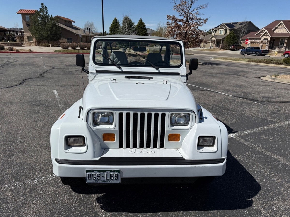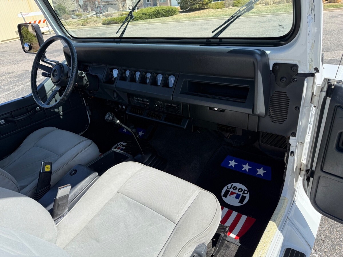 This Jeep was owned by a lady since 1993 in Houston Texas and the previous owner was her coworker at NASA. The jeep has a perfect autocheck and carfax reports also.The white paint looks good and interior is in great shape. The 4.0 just purrs and the 5 speed transmission shifts as it should with no issues. All lights work inside and outside and 4wd works as it should with the 4wd light coming on when engaged. I change the faded steering wheel with a oem steering wheel which looks like new! All gauges work but sometimes the temp gauge takes a minute to fire up. The jeep will come with the bikini top and I have the aftermarket hardtop that came with the jeep and if the winning bidder wants it I will put it back on. It’s a 2 piece hardtop and there is a picture that you can see it. This jeep was not driven much in the last 15 years. Only 100k miles and rot free no rust. The jeep has ac but could use a recharge but it slightly blows a little cold. Heat blows hot and horn works. Tires are in decent shape and no chips in the windshield. The jeep is located in Denver Colorado and could be driven home or I can suggest a shipper. The floor mats and spare tire cover do not go with the jeep. I do have the oem front black floor mats that will go with the jeep. I only take cash or bank wire. If you like more pictures or have any questions please ask. These renegades are getting harder to find for sure. This could be a great ice cream runner with the kids as Jeep season is about in full swing! It does have the original radio and sound bar and both work.