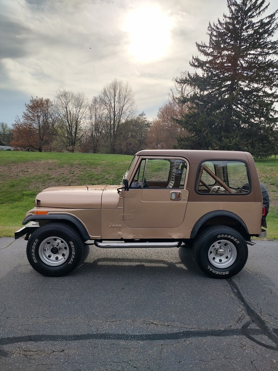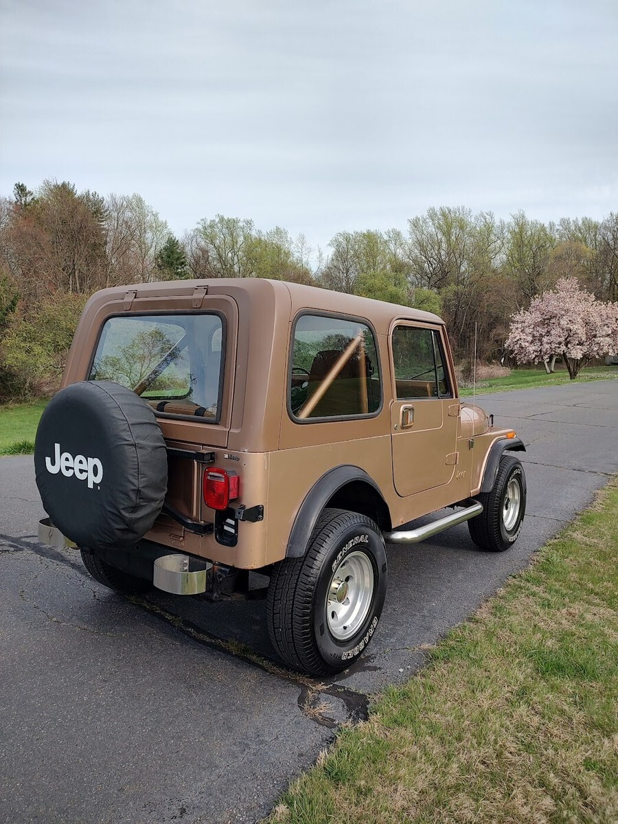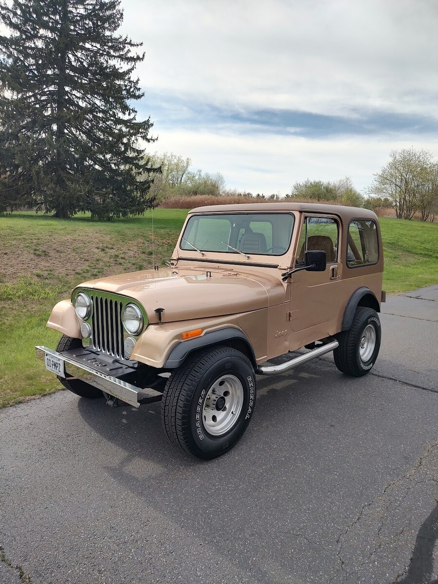 "Golden" opportunity to own the perfect summer cruiser!Mechanically perfect, ready to drive anywhere, Turn key!1985 Jeep CJ7258 straight 65 speed manualFactory ACAutometer 6000 RPM 2 5/8"tachSome Laredo features include:"Smokers Package" with factory ash tray (NOT SMOKED IN)Chrome grill insertsChrome front bumperThis is an all original 1985 CJ7 with factory ACArguably the best year / engine / transmission combinationDrives perfect, go anywhereNo steering play, no shifter playTires (31's) are like newAll gauges work and are accurateEven the factory carburetor is properly adjustedNew master cylinderNew light switchNew Interstate MT-56 batteryNew rear differential fluid and gasketFrame is remarkably rust freeFloor pans are SOLIDSome light surface bubbles on PS rockerDS rocker has some rust spotsMost CJ's have 150K+ miles on them. 81K is an intangible that cannot be easily replicated