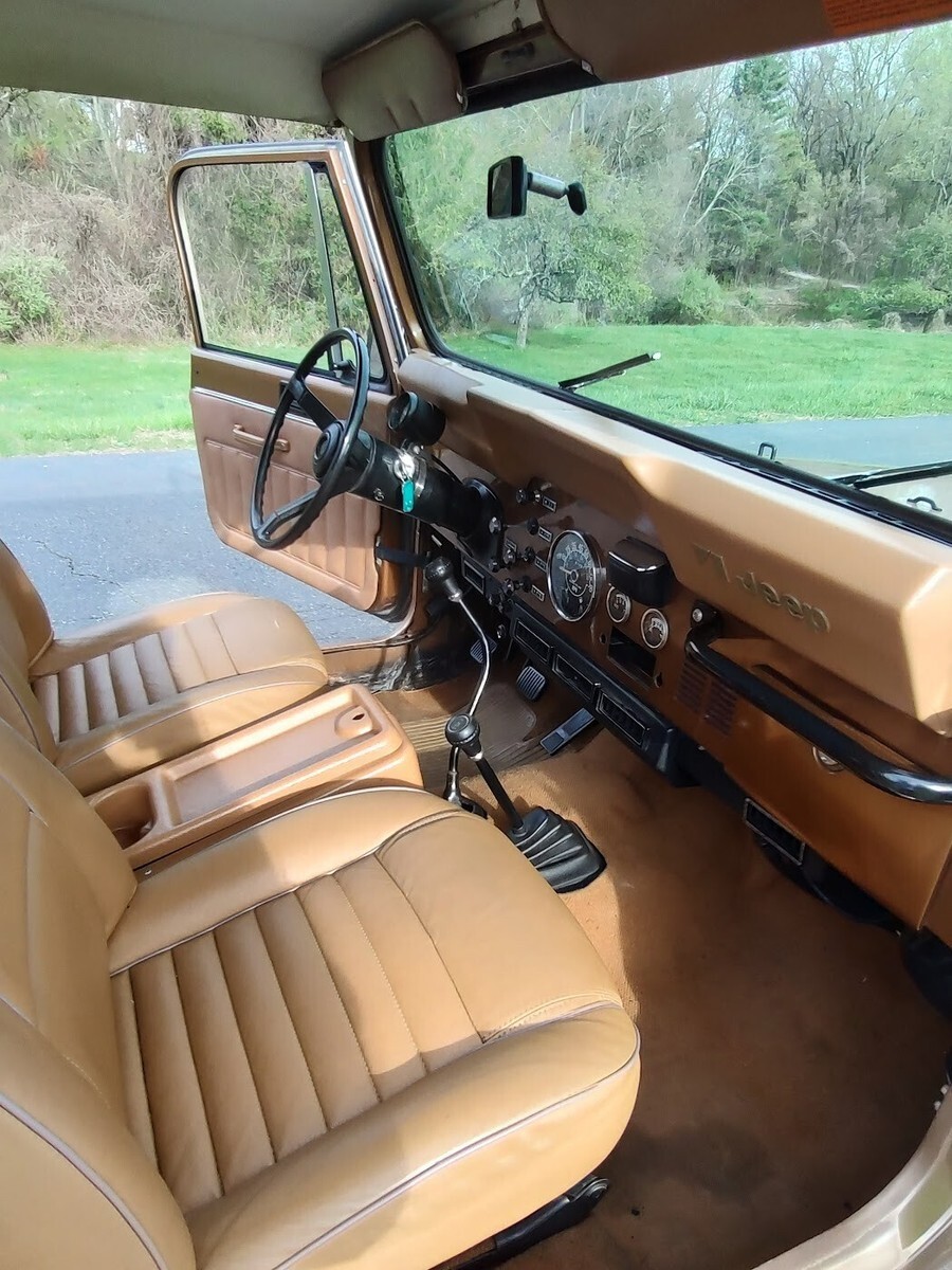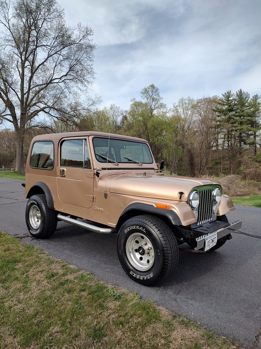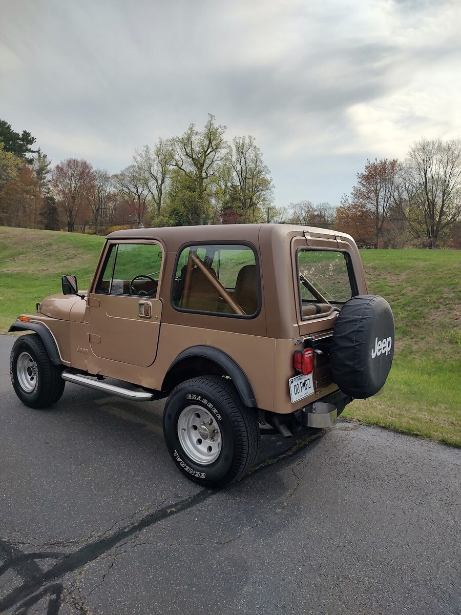 "Golden" opportunity to own the perfect summer cruiser!Mechanically perfect, ready to drive anywhere, Turn key!1985 Jeep CJ7258 straight 65 speed manualFactory ACAutometer 6000 RPM 2 5/8"tachSome Laredo features include:"Smokers Package" with factory ash tray (NOT SMOKED IN)Chrome grill insertsChrome front bumperThis is an all original 1985 CJ7 with factory ACArguably the best year / engine / transmission combinationDrives perfect, go anywhereNo steering play, no shifter playTires (31's) are like newAll gauges work and are accurateEven the factory carburetor is properly adjustedNew master cylinderNew light switchNew Interstate MT-56 batteryNew rear differential fluid and gasketFrame is remarkably rust freeFloor pans are SOLIDSome light surface bubbles on PS rockerDS rocker has some rust spotsMost CJ's have 150K+ miles on them. 81K is an intangible that cannot be easily replicated