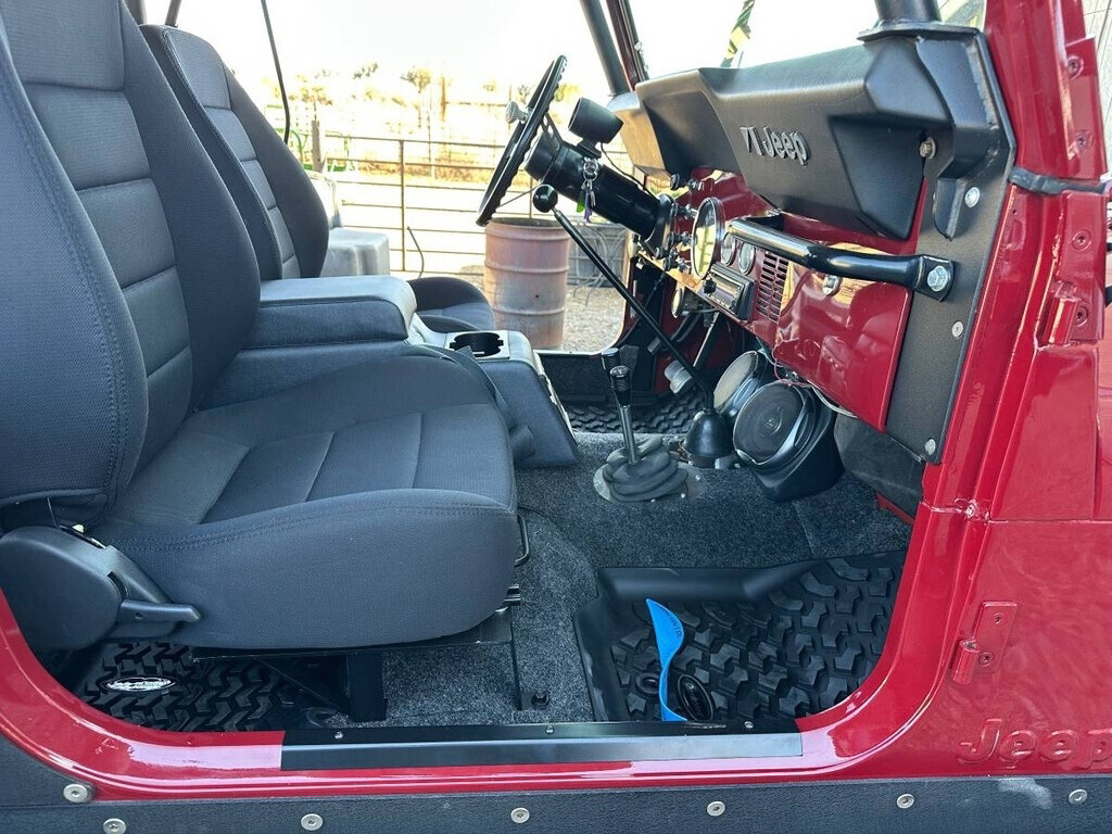 1978 Jeep CJ7 1978 Jeep CJ7 – This well-kept 1978 Jeep CJ7 was purchased from the original owner in 2009 and has been extensively customized for enhanced performance, reliability, and off-road capability. The original engine runs strong, featuring an updated timing gear and chain, new Holley carburetor, electronic ignition, and twin electric cooling fans. The 4-speed transmission, sourced from a Jeep pickup, includes a granny low gear, ideal for rugged terrain and trail adventures. The suspension has been upgraded with custom Alkan springs, a Mountain Off-Road spring-over lift kit, Bilstein shocks, and reinforced framing. The interior is all new, including bucket seats, fresh carpeting, and an upgraded stereo sys