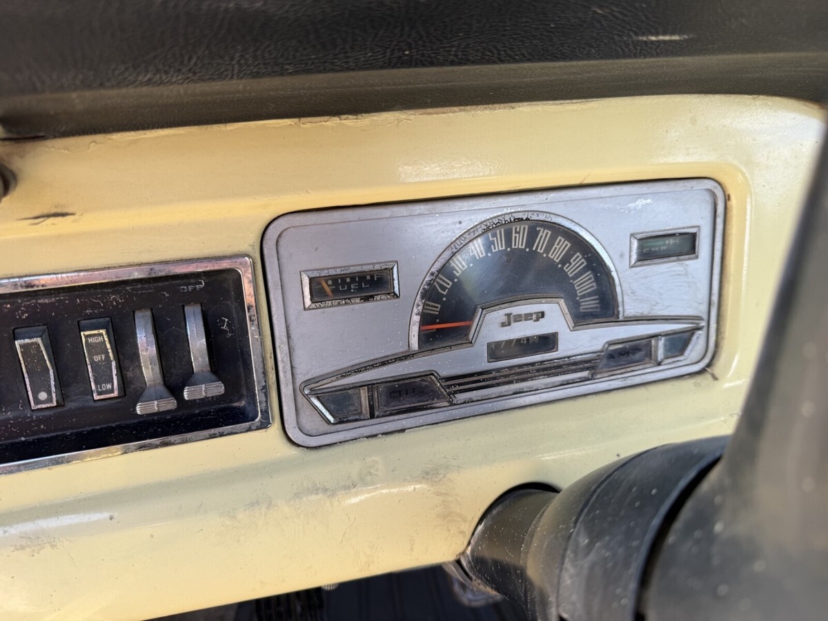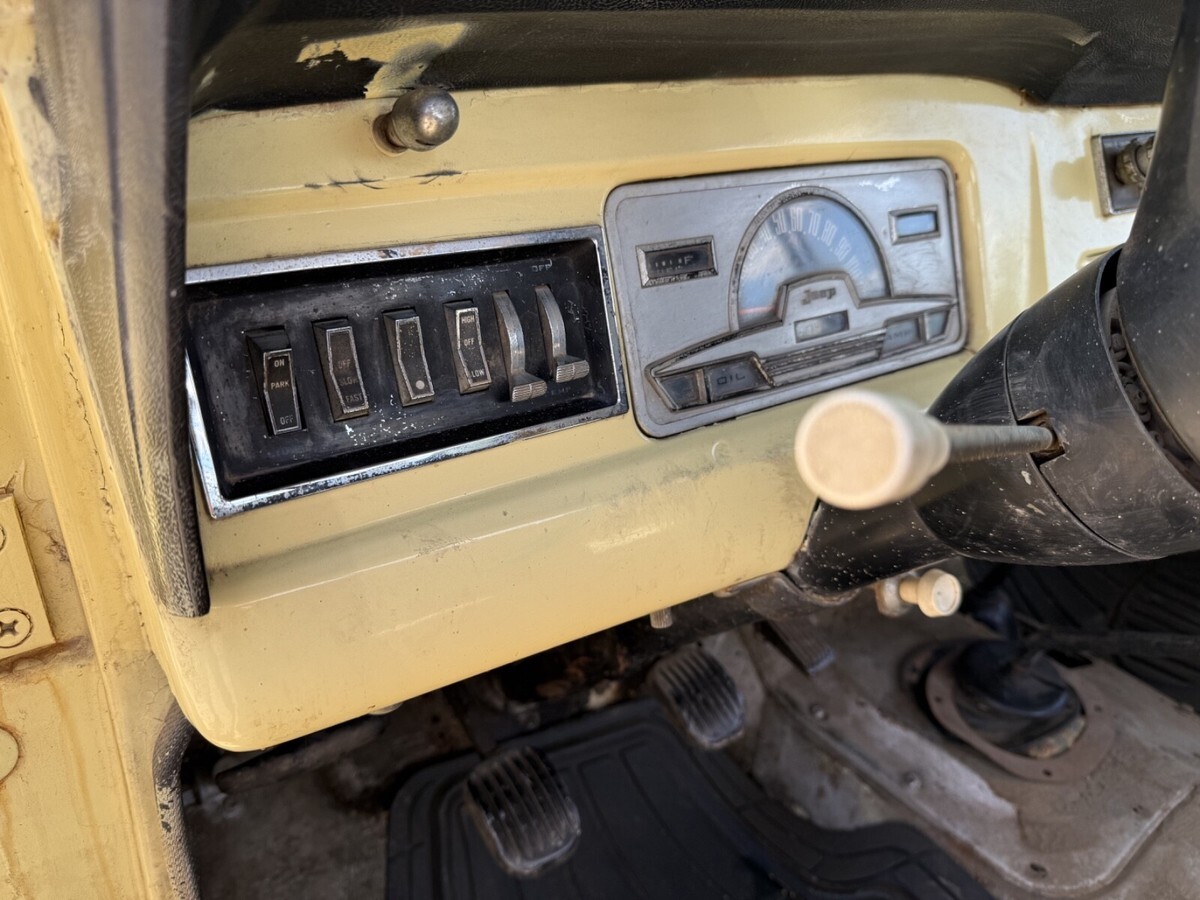 This jeep was purchased by a friend years ago with the intention of fixing it up. He got busy and never completed the restoration, and I am now helping to sell the vehicle.This jeep runs reasonably well. I believe it has the original engine, which seems to run fine. I'll get to the (known) problems in a minute, but first the good stuff:The body is in really good shape for its age. Granted it has a few dings and the tailgate is slightly bent as you can see in the photos, but there is very little corrosion.The frame for the soft top seems to work perfectly. The windows all roll up and down well, and the window frames are all intact. The lights, blinkers, and wipers all work. The doors open and latch smoothly.It is a very unique vehicle which elicits admiration and envy.Known problems:There is a very slow leak of brake fluid from the right front.The soft top lacks a back window, and has a cut on the upper rear left as you can see in the photo.The carburetor lacks an air filter. It seems like the intake of the carburetor has a small piece that is broken that would have secured a filter. This seems fixable without much trouble, but would be up to you. I have neither the tools nor the time to fix it. It has not been run in dusty conditions or for much time without a filter.The front differential is not connected to the transmission, so it currently functions as a RWD. I am not sure if this is because the differential is bad, if the linkage broke and was just not repaired, or what, but it's not connected.Overall, it's a blast to drive. It's a great buy because it runs as-is, but also has tremendous potential if someone wanted to put some time into restoring it. It is priced well below almost any other Commando you will find, but you won't be able to find a running specimen for less than this.