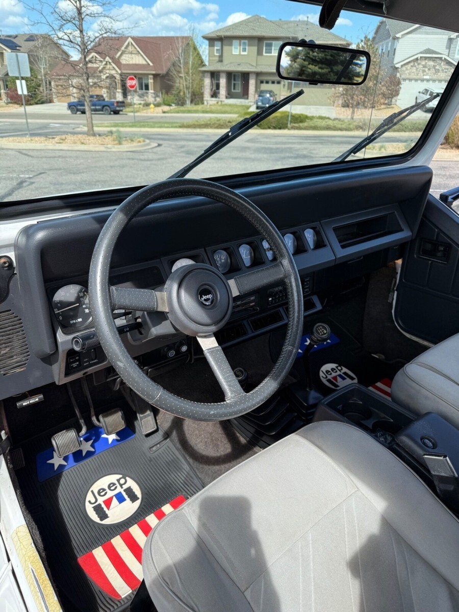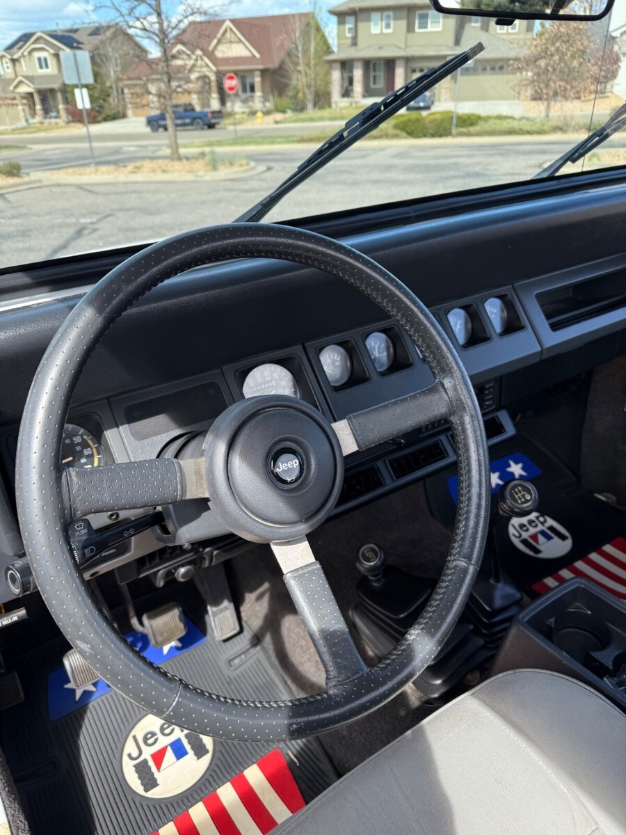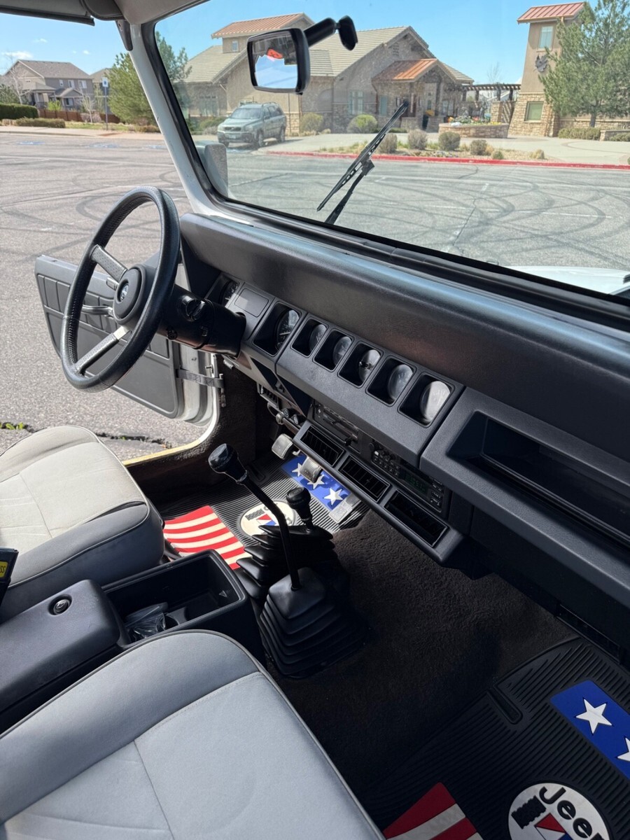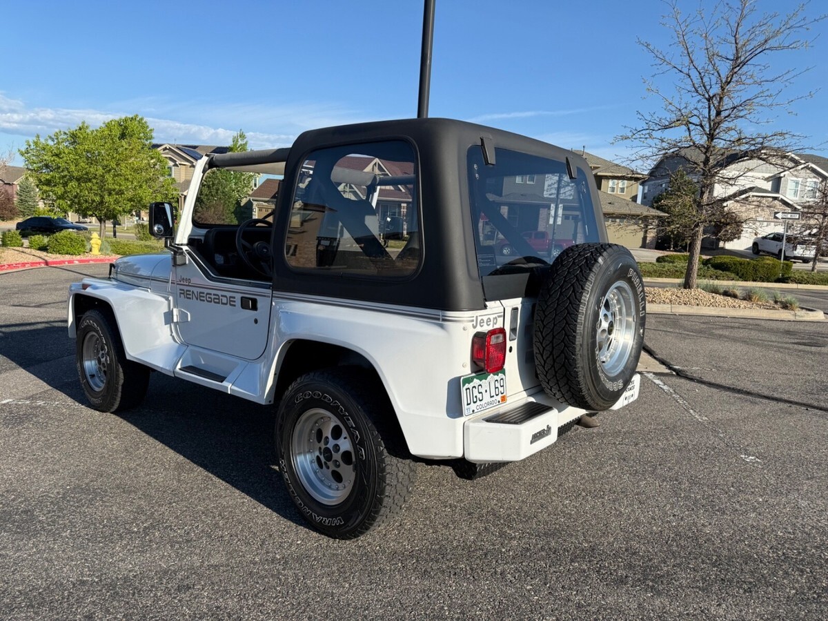 This Jeep was owned by a lady since 1993 in Houston Texas and the previous owner was her coworker at NASA. The jeep has a perfect autocheck and carfax reports also.The white paint looks good and interior is in great shape. The 4.0 just purrs and the 5 speed transmission shifts as it should with no issues. All lights work inside and outside and 4wd works as it should with the 4wd light coming on when engaged. All gauges work but sometimes the temp gauge takes a minute to fire up. The jeep will come with the bikini top and I have the aftermarket hardtop that came with the jeep and if the winning bidder wants it I will put it back on. It’s a 2 piece hardtop. This jeep was not driven much in the last 15 years. Only 100k miles and rot free no rust. The jeep has ac but could use a recharge but it does slightly blows a little cold. Heat blows hot and horn works. Tires are in decent shape and no chips in the windshield. The jeep is located in Denver Colorado and could be driven home or I can suggest a shipper. I do have the oem front black floor mats that will go with the jeep. I only take cash or bank wire. If you like more pictures or have any questions please ask. These renegades are getting harder to find for sure. This could be a great ice cream runner with the kids as Jeep season is about in full swing! It does have the original radio and sound bar and both work.