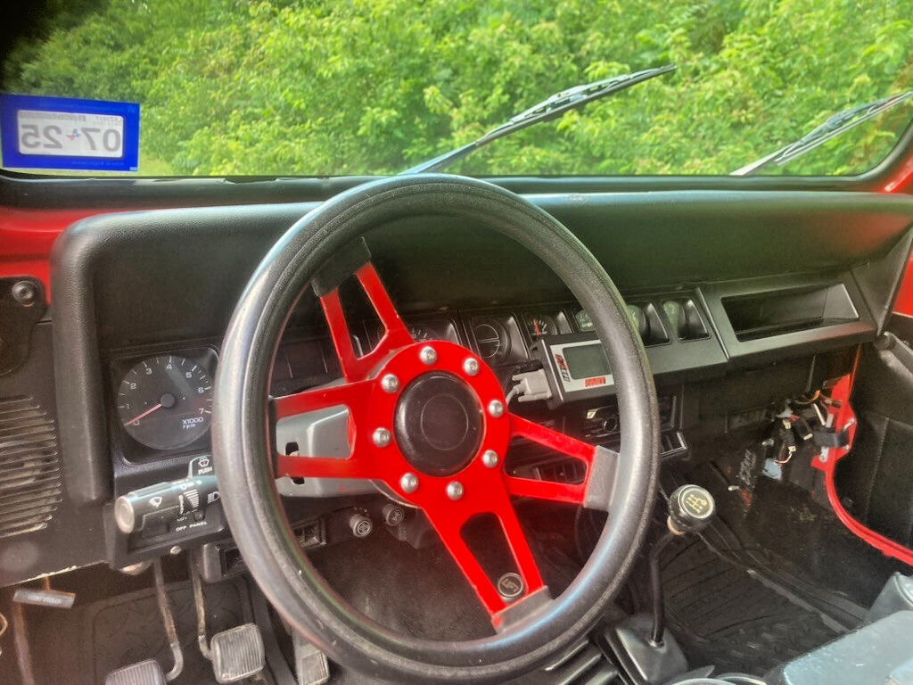1993 Jeep YJ for sale. Less than 900 miles on a new Jasper 4.0 litre engine, 6 cylinder. Original miles are 143,500. F.A.S.T. fuel injection system, manual 5 speed transmission. Has a great air conditioner. Stereo with cd player, bluetooth. New clutch and pressure plate, new exhaust, new shocks. Universal joints are new. Over sized tires, black wheels. New spare, rim and spare tire cover. Tow bar and wired for towing. Has a hard cover which can be removed. Has been wrapped and I have additional wrap. I have chrome nerf bars that have not been installed and a new set of carpeting (the existing carpet is in greatshape). There is a winch on the front bumper that does not work. I am not sure if it is a winch problem or an electrical problem, something I have not worked on.