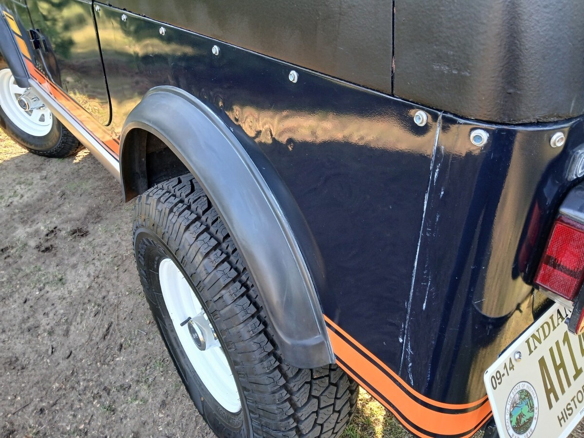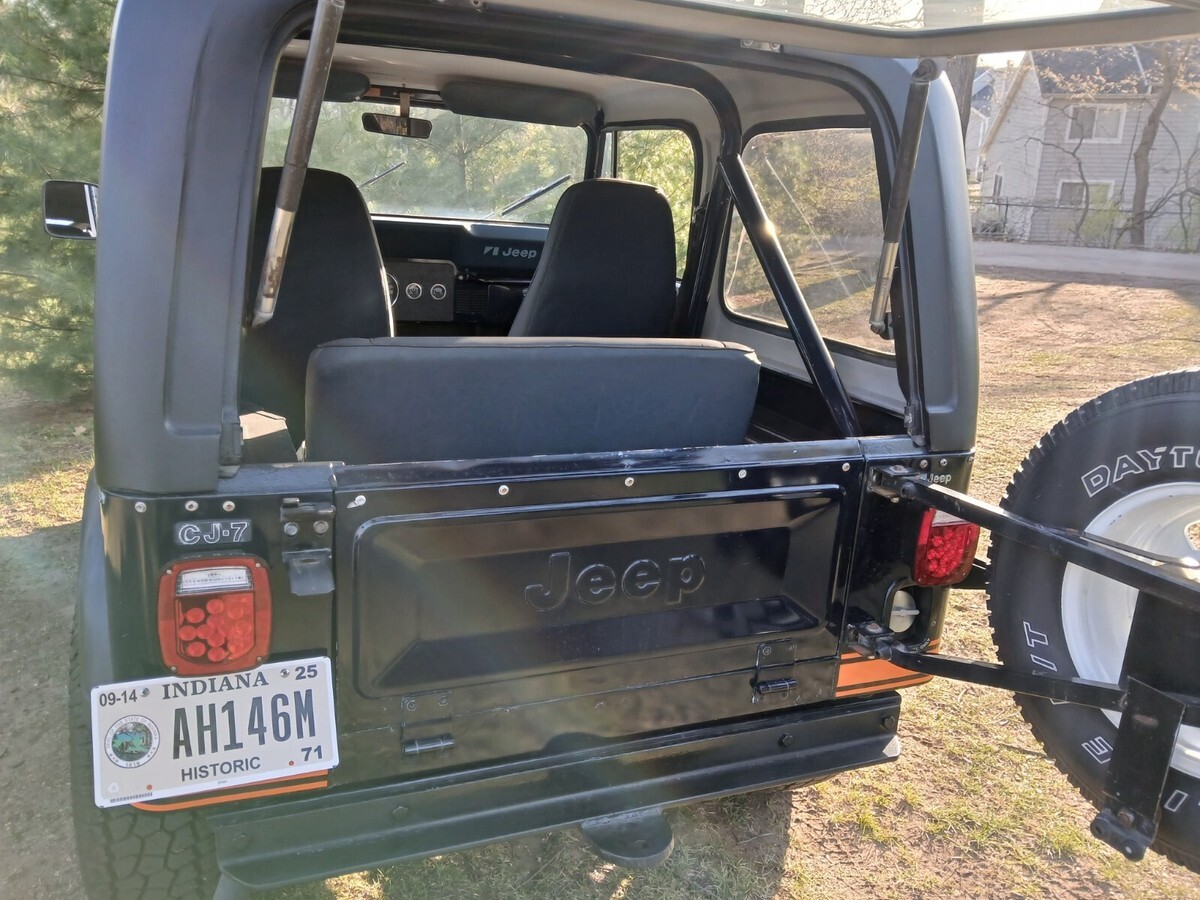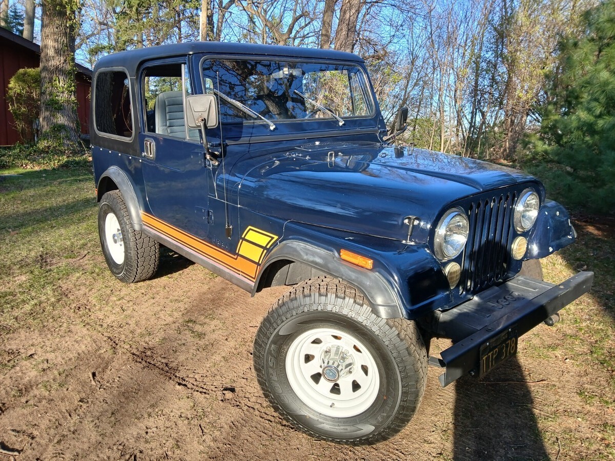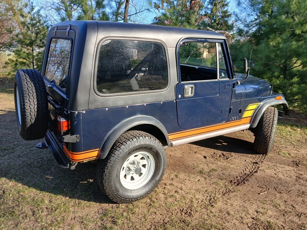 - 1983 Jeep CJ7. Very solid Jeep. Blue denim seats (kinda rare). Engine rebuilt about a year ago. 4WD works. Runs very well. 4 speed. New Clutch and linkage. Bigger than stock carb. New fuel tank and lines. New hei Dist and wires. Comes with hard top and bikini top and box of parts. Led Tail lights. Floor was coated with Por15 then top coated. Couple tiny holes on driver floor. Lockable center console with stereo. Tires are new. Spare looks good, but old. New mechanical fuel pump and electric fuel pump. All fluids new. Very solid and almost original CJ! Thanks for Looking!