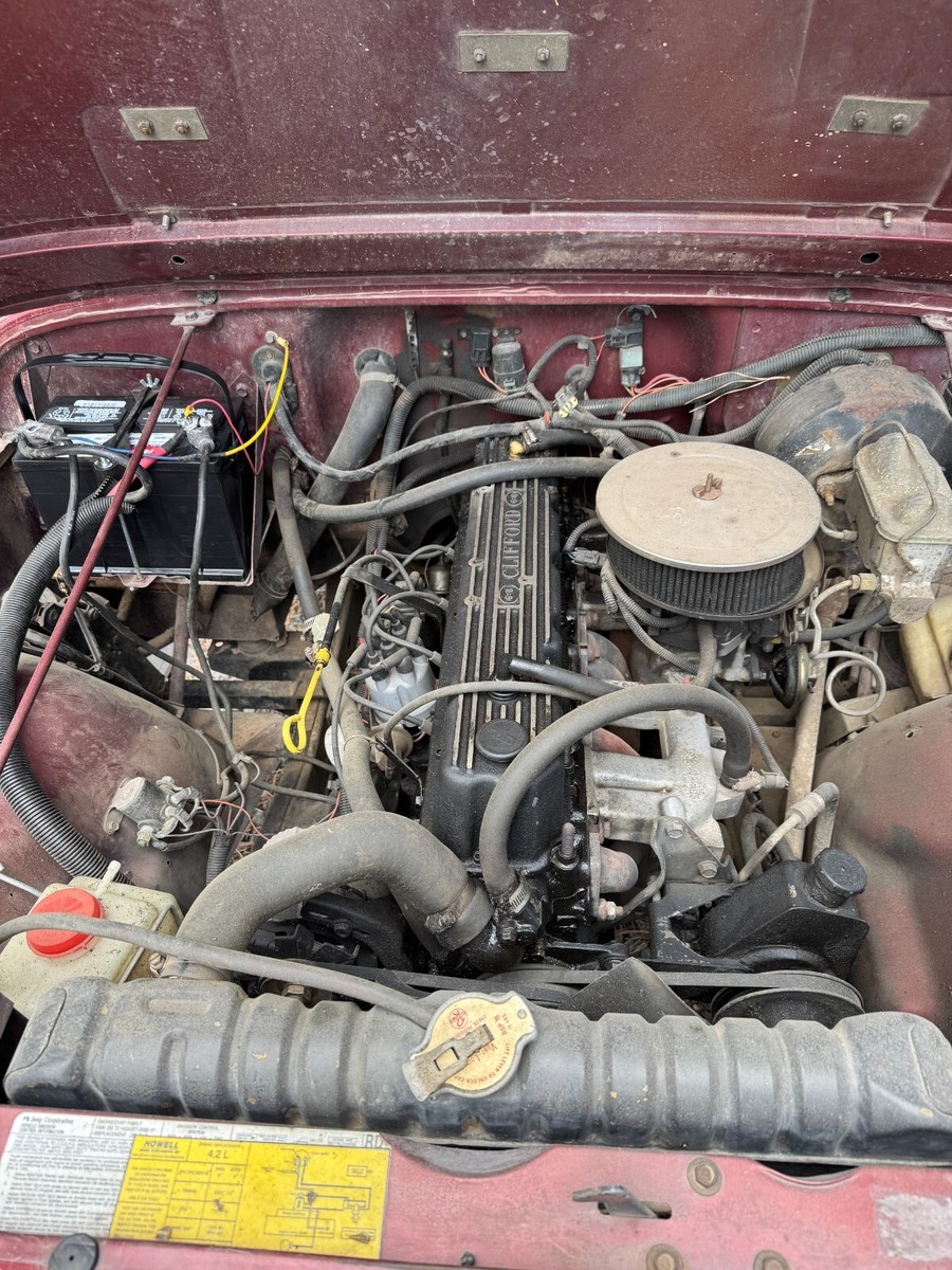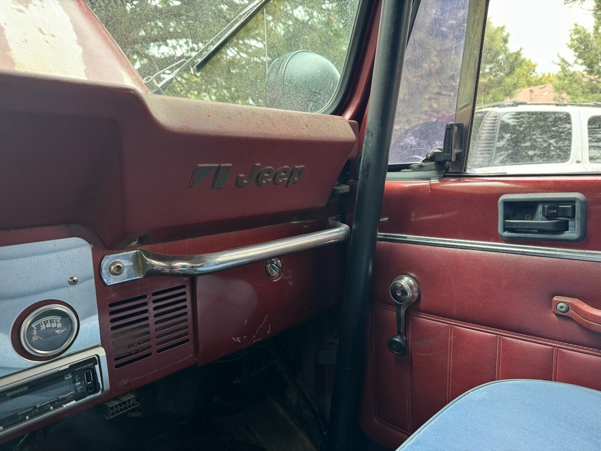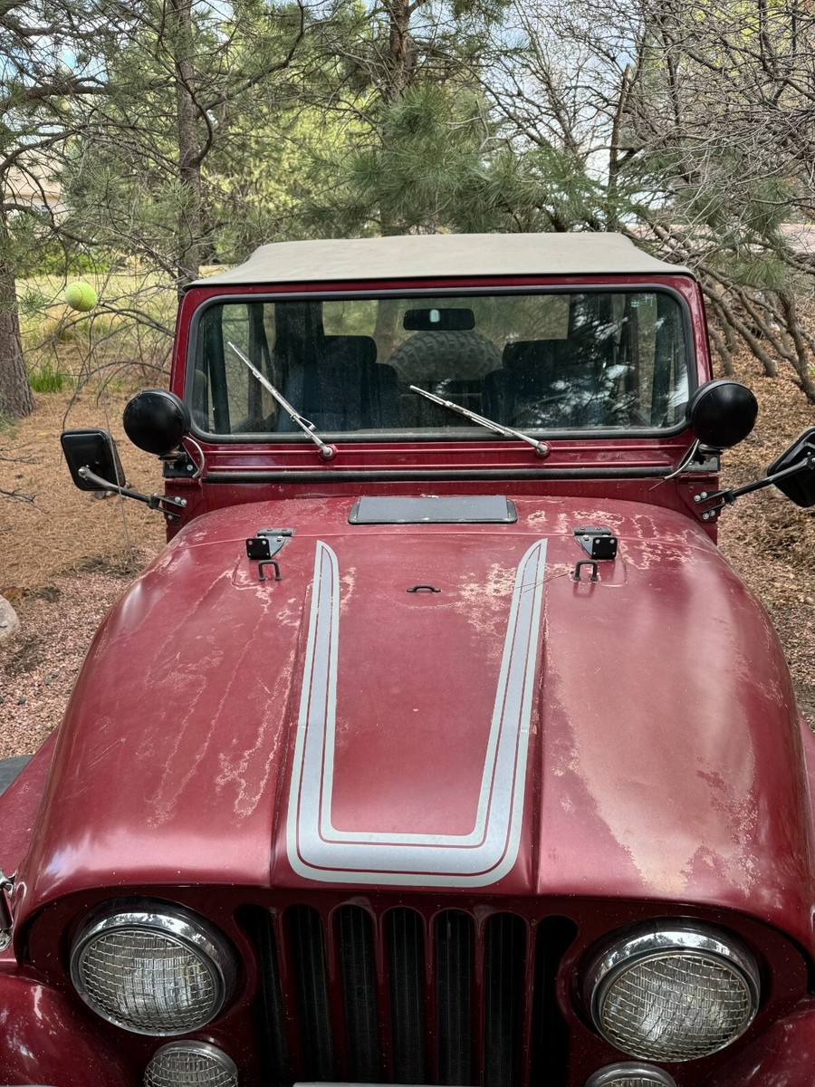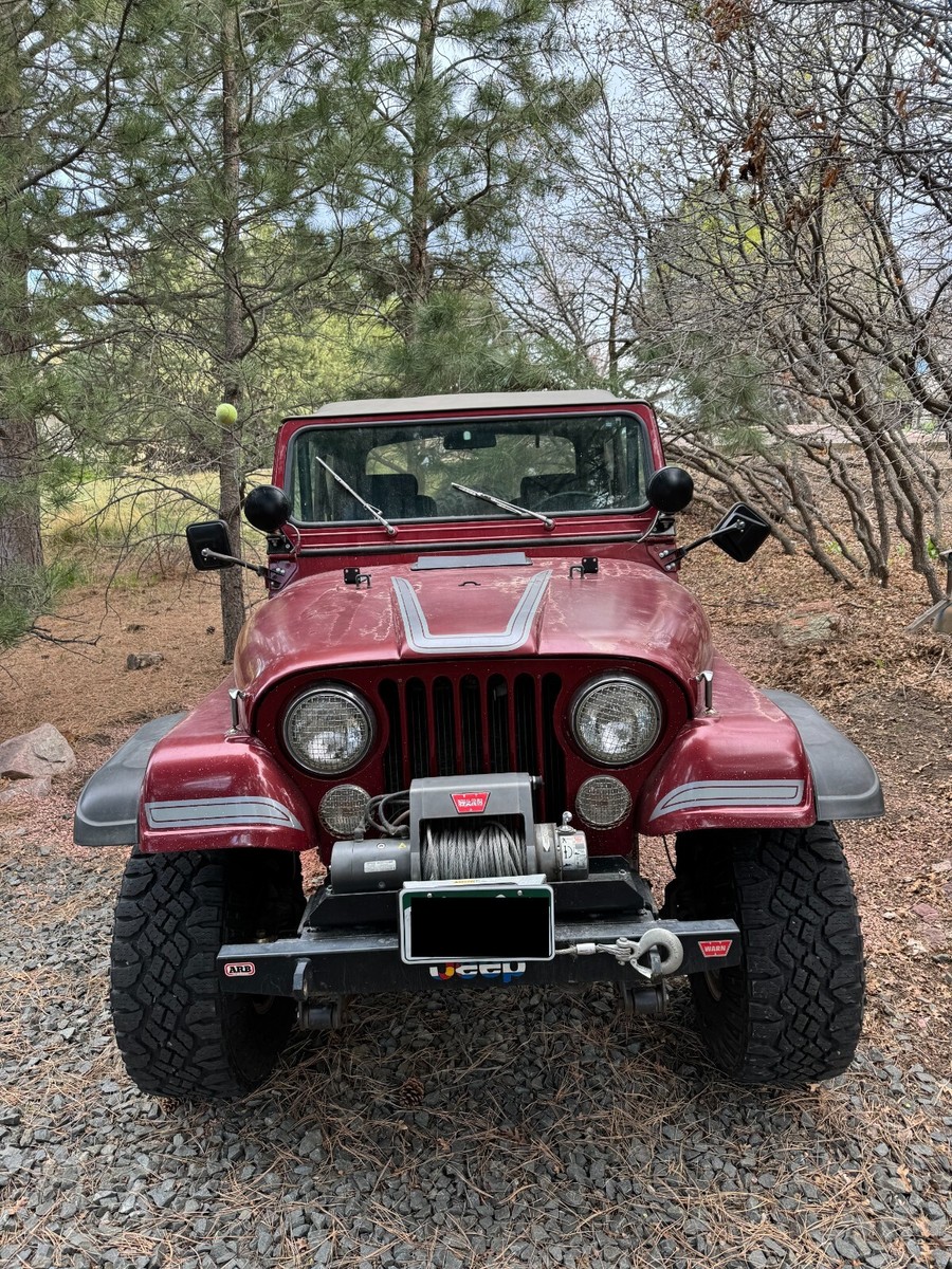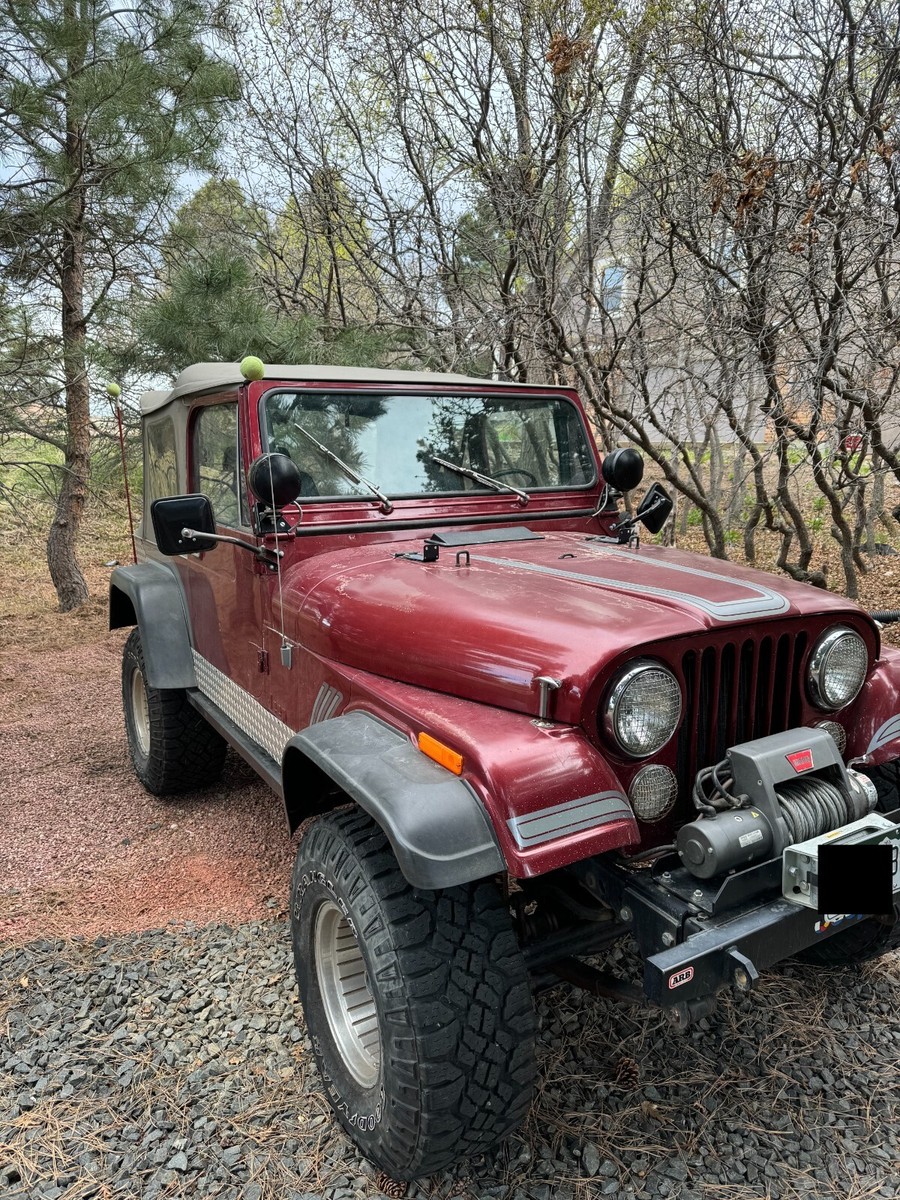 We purchased this used. We had very little chance to drive it but it ran great when we drove it.Engine: 258ci, 4.2L Inline 6 Trans: 5 Speed ManualLaredo Option PkgGauges WorkWindshield Wipers InoperableSoft TopFull Steel DoorsExtra Set of Soft DoorsPower SteeringFront Disc/Rear Drum BrakesDana 44 Front and AMC 20 rear differentialsOriginal Paint.Aftermarket options include: Full Roll Bar System, Warn Winch, 4" suspension lift.Currently installed tires are 33x12.5R15ATMileage is at 204,900Great foundation for a restoration or revert back to around town driver.Note: Driver and passenger seats do not adjust forward and backward