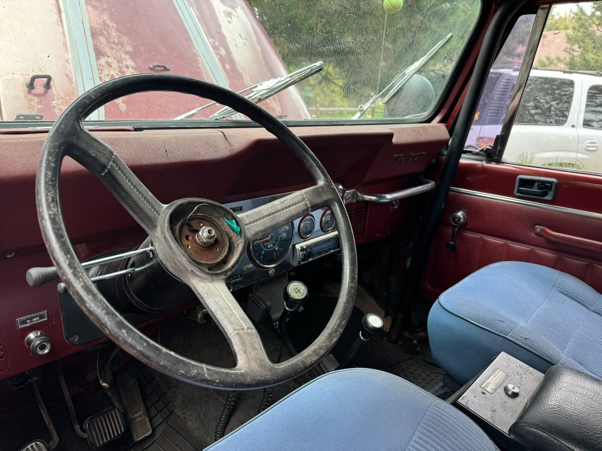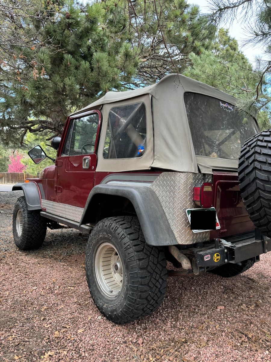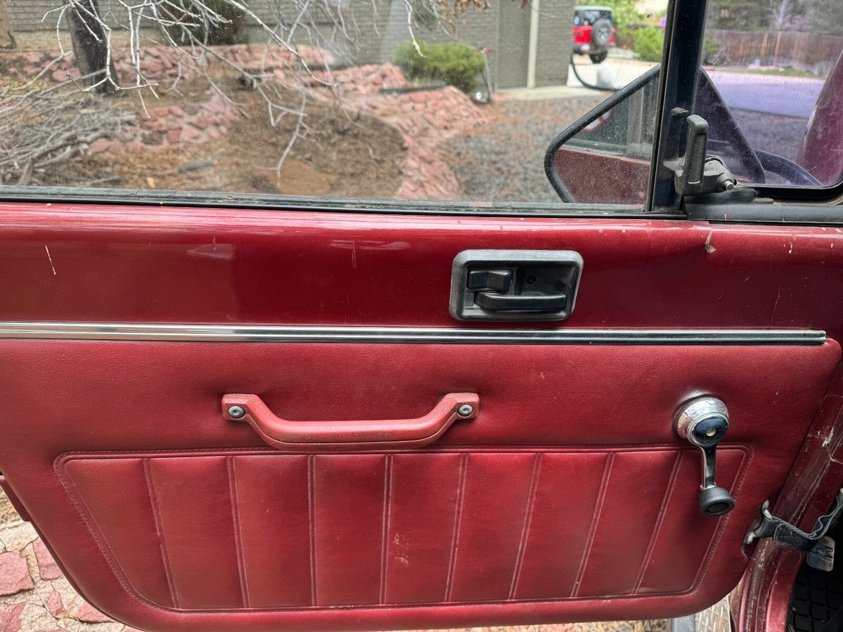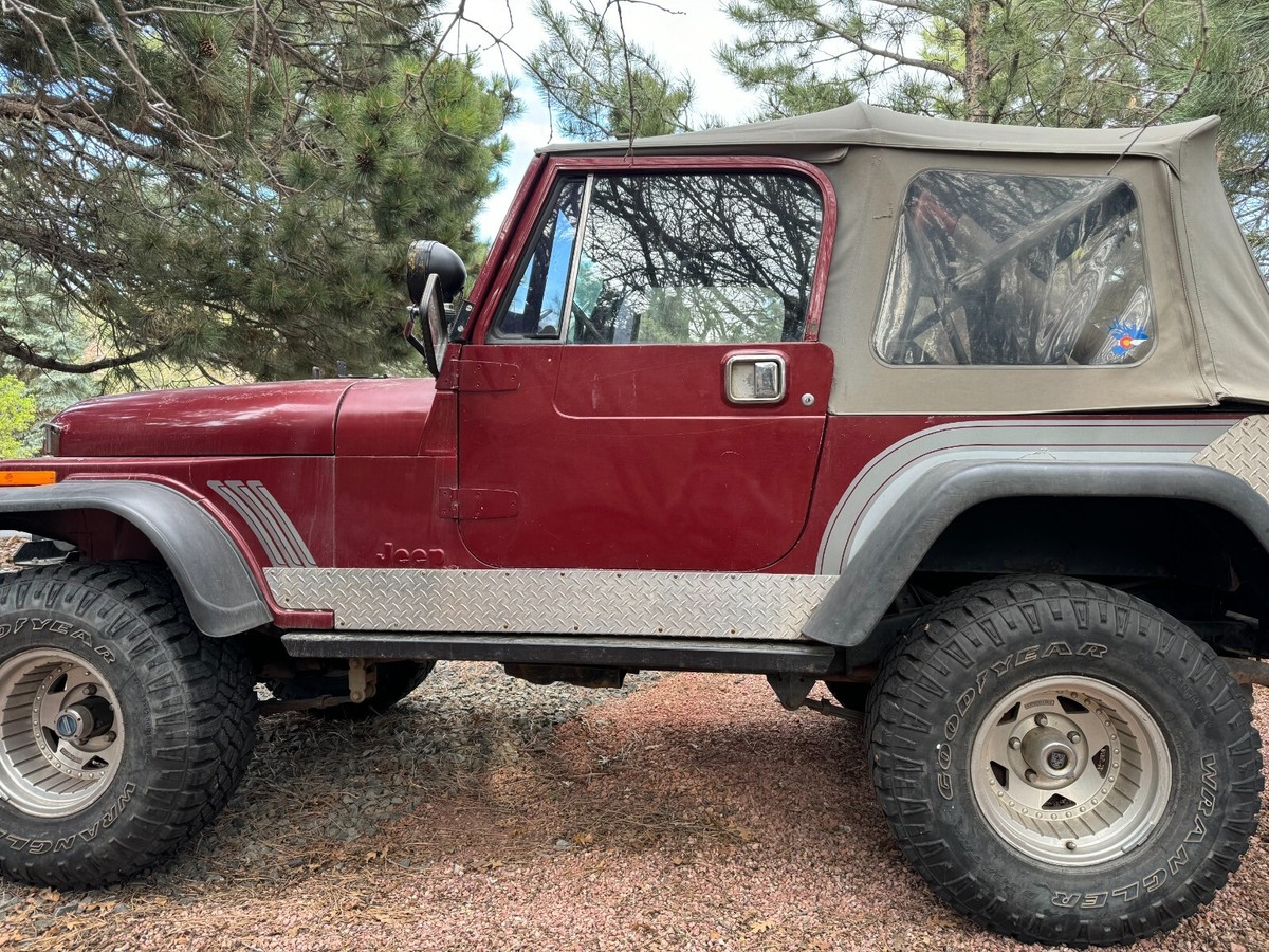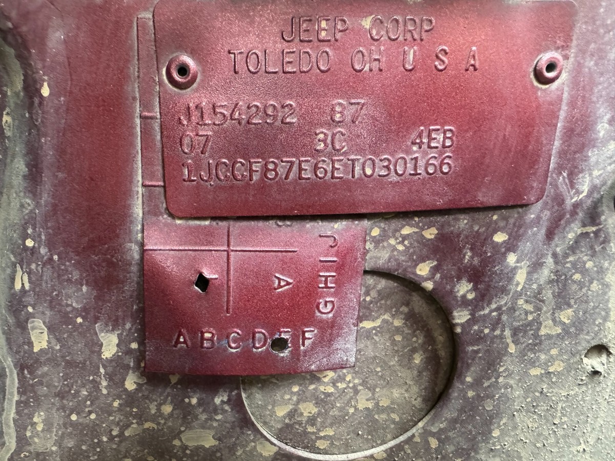 We purchased this used. We had very little chance to drive it but it ran great when we drove it.Engine: 258ci, 4.2L Inline 6 Trans: 5 Speed ManualLaredo Option PkgGauges WorkWindshield Wipers InoperableSoft TopFull Steel DoorsExtra Set of Soft DoorsPower SteeringFront Disc/Rear Drum BrakesDana 44 Front and AMC 20 rear differentialsOriginal Paint.Aftermarket options include: Full Roll Bar System, Warn Winch, 4" suspension lift.Currently installed tires are 33x12.5R15ATMileage is at 204,900Great foundation for a restoration or revert back to around town driver.Note: Driver and passenger seats do not adjust forward and backward