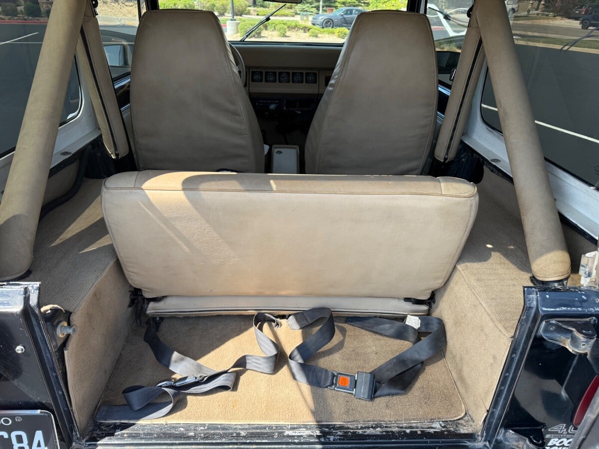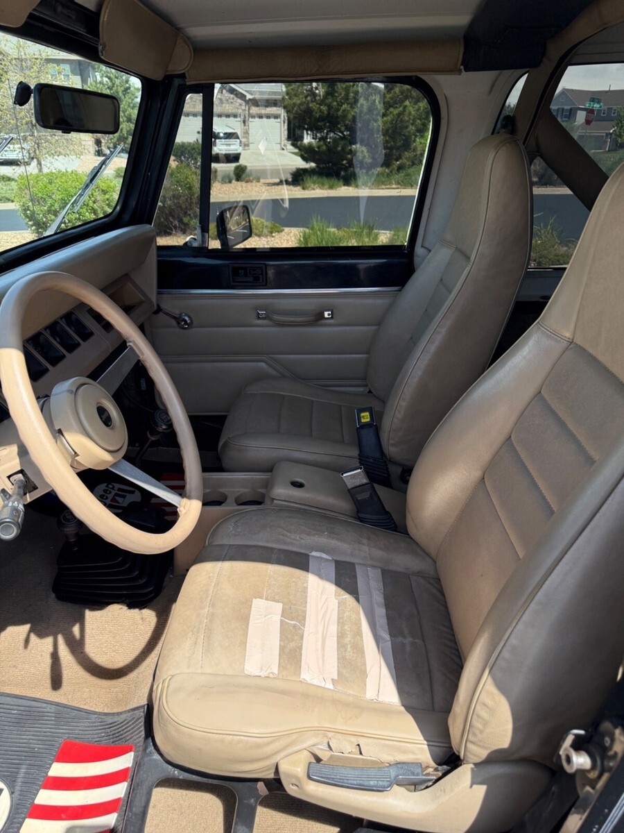 Selling my 1991 Jeep Wrangler Base model with the 4.0 engine and 5 speed transmission. Has perfect auto-check and car-fax reports. I bought it from the family who owed it for over 20 years. They live in Durango Colorado in the summer months. The jeep runs great and shifts smooth as it should with the lower miles on it. The tires are pretty new and recently I installed new shocks, steering dampener, stabilizer links and transmission mount. Also had a oil flush and fuel injection service performed. All fluids were change also. It runs straight down the road with no issues! All gauges work but sometimes the clock will stop but will start back up. Heater blows hot and 4wd works with the 4wd light coming on. It has the 20 gallon fuel tank and the horn works. All glass is good with no chips or cracks. The hardtop has a small chip missing out on the drivers side where you mount it to the body and its very small. The interior is decent but the drivers seat its worn a little bit i just keep a towel on it. The jeep is located in Denver and can been driven home or you can have it shipped. I can suggest a shipper if needed. The floor mats and the tire cover do not come with the jeep. The jeep has the sound bar for the radio but the jeep does not have a radio installed. I have the owners book and a extra key. If you have any questions please ask. The jeep has 108k on it.
