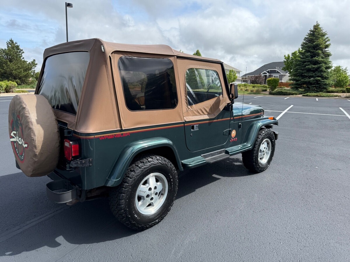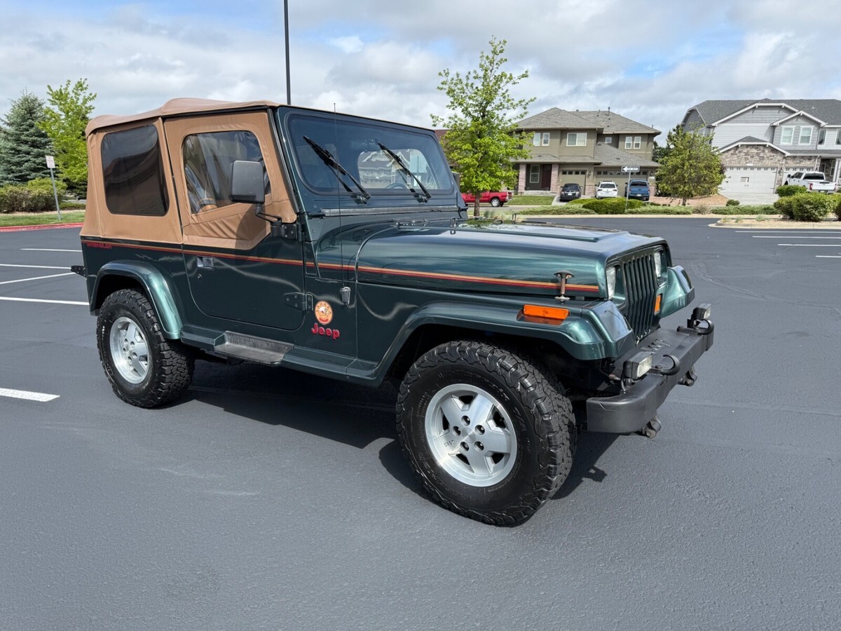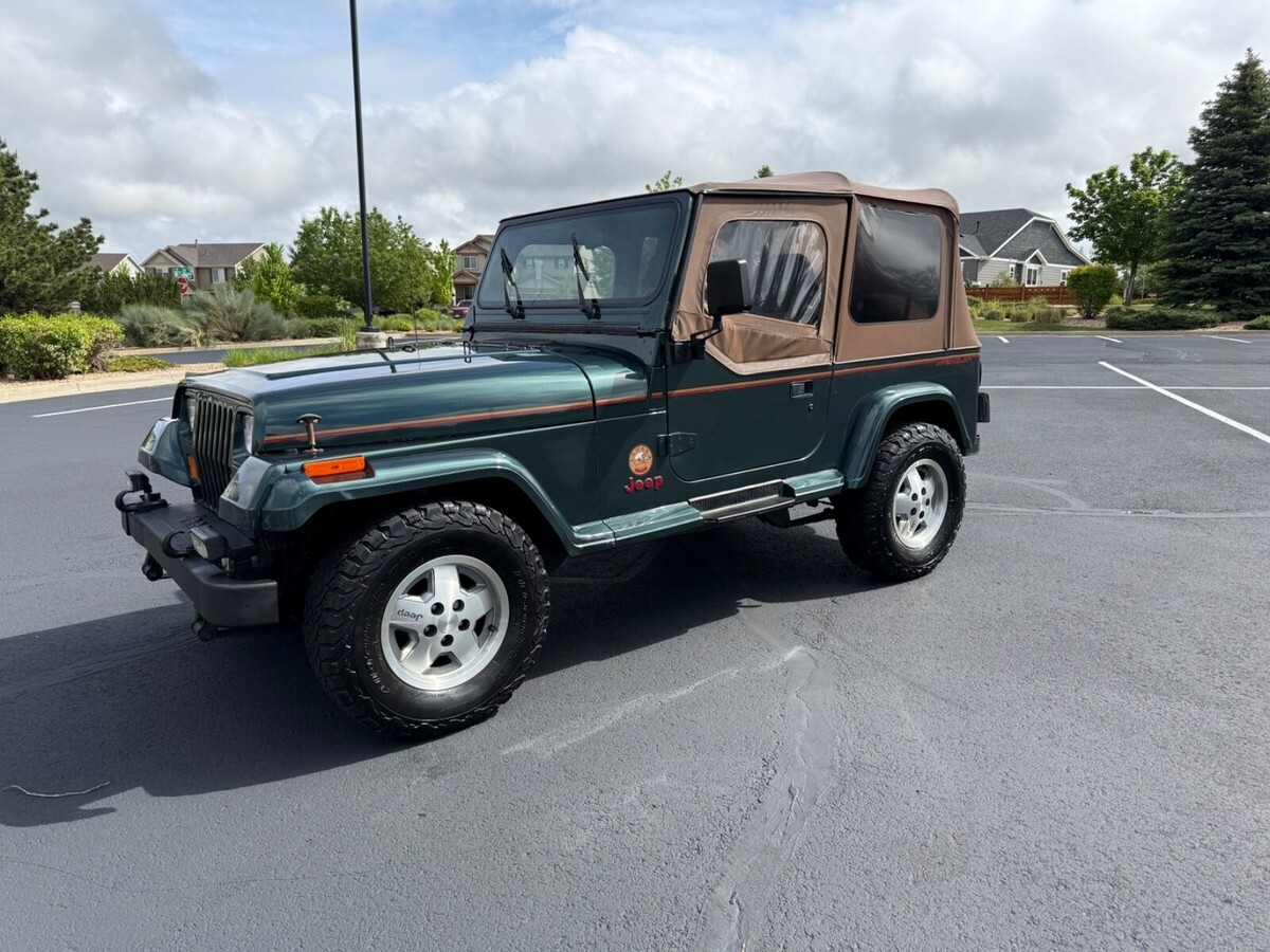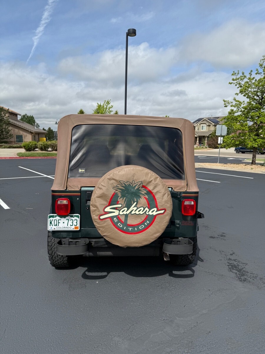 Selling my 1993 Jeep wrangler Sahara edition with the perfect auto-check and car-fax reports! I’m the third owner and bought it from the person who bought it from the original owner who was from Texas. They both kept this Jeep immaculate as you can tell from the picture and the last owner had a lot of Service work perform before my purchase. The paint is very clean and the Sahara interior is about perfect. I do have the original radio which will go with the jeep. The previous owner had a new radio and speakers installed and sound great from the dash and the soundbar above. The tires BFG KO2 are about new all 5 of them. The top is from 2021 and in great shape with no tears. The windshield has no cracks or chips. All lights work inside and outside. The 4wd drive works with the light coming when engaged. Horn works and heat blows very hot. The ac blows very cold with no condensation coming from the unit like most do. Oil and fuel injection service perform recently. The spare tire cover and floor mats do not come with the jeep as they are from my collection. The service work perform…. front brakes and rotor, rear wheel cylinders,heater core and thermostat plus coolant flush, new flywheel and clutch plus new rear u-joints which was over 1700.00,new heater hoses,new water pump and clutch mast cylinder, new plugs and wires, new serpentine belt and output shaft seal!!! I have a 2 inch folder of the invoices and many more. Also have the build sheet from Jeep. Have the owners books from new and a extra key. The Jeep is located in Denver Colorado and could be driven home very easy or you can have it shipped. I can suggest a shipper that I have used from over 20 years. It’s Jeep season and time for some fun in the sun. The Jeep does not leak any fluid at all. This Jeep is ready to roll and needs nothing as everything has been done to it! If you like more pictures or have any questions please ask. I took a picture of the rear quarter panel wheee you see the wrangler sticker….. you can see the weld marks from the factory I always enjoy seeing that as this jeep is mint…