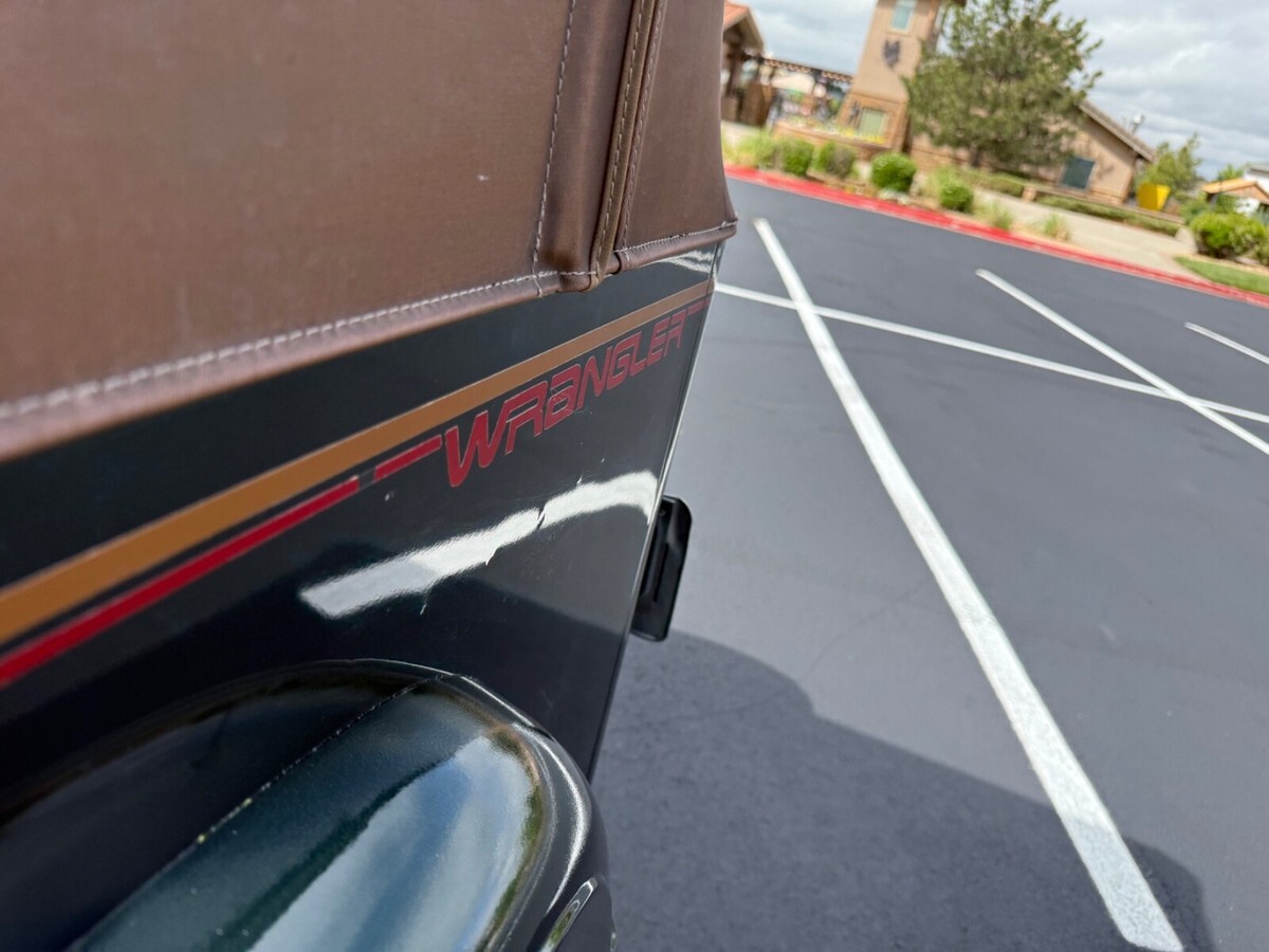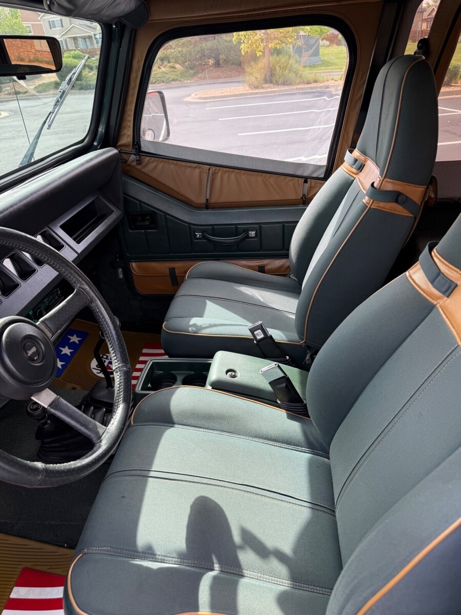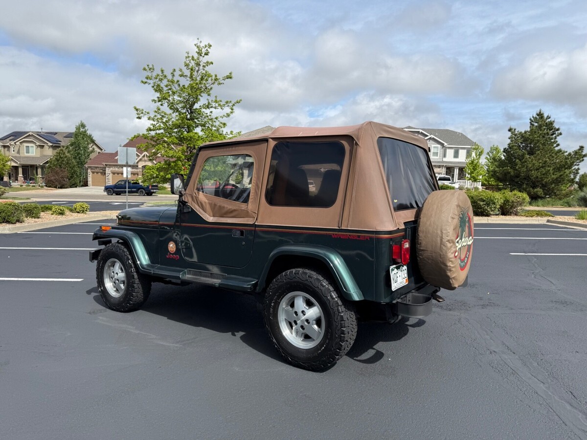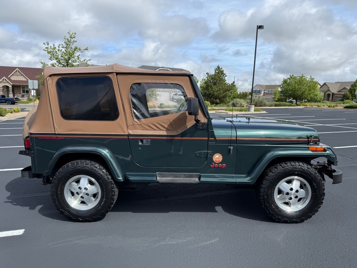 Selling my 1993 Jeep wrangler Sahara edition with the perfect auto-check and car-fax reports! I’m the third owner and bought it from the person who bought it from the original owner who was from Texas. They both kept this Jeep immaculate as you can tell from the picture and the last owner had a lot of Service work perform before my purchase. The paint is very clean and the Sahara interior is about perfect. I do have the original radio which will go with the jeep. The previous owner had a new radio and speakers installed and sound great from the dash and the soundbar above. The tires BFG KO2 are about new all 5 of them. The top is from 2021 and in great shape with no tears. The windshield has no cracks or chips. All lights work inside and outside. The 4wd drive works with the light coming when engaged. Horn works and heat blows very hot. The ac blows very cold with no condensation coming from the unit like most do. Oil and fuel injection service perform recently. The spare tire cover and floor mats do not come with the jeep as they are from my collection. The service work perform…. front brakes and rotor, rear wheel cylinders,heater core and thermostat plus coolant flush, new flywheel and clutch plus new rear u-joints which was over 1700.00,new heater hoses,new water pump and clutch mast cylinder, new plugs and wires, new serpentine belt and output shaft seal!!! I have a 2 inch folder of the invoices and many more. Also have the build sheet from Jeep. Have the owners books from new and a extra key. The Jeep is located in Denver Colorado and could be driven home very easy or you can have it shipped. I can suggest a shipper that I have used from over 20 years. It’s Jeep season and time for some fun in the sun. The Jeep does not leak any fluid at all. This Jeep is ready to roll and needs nothing as everything has been done to it! If you like more pictures or have any questions please ask. I took a picture of the rear quarter panel wheee you see the wrangler sticker….. you can see the weld marks from the factory I always enjoy seeing that as this jeep is mint…