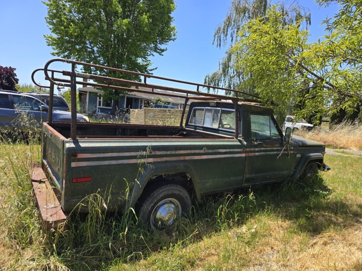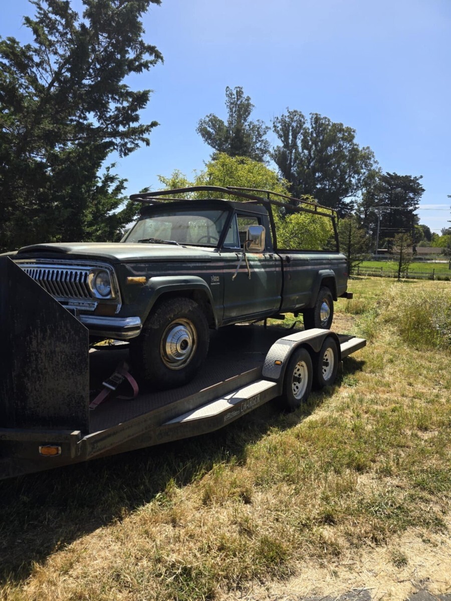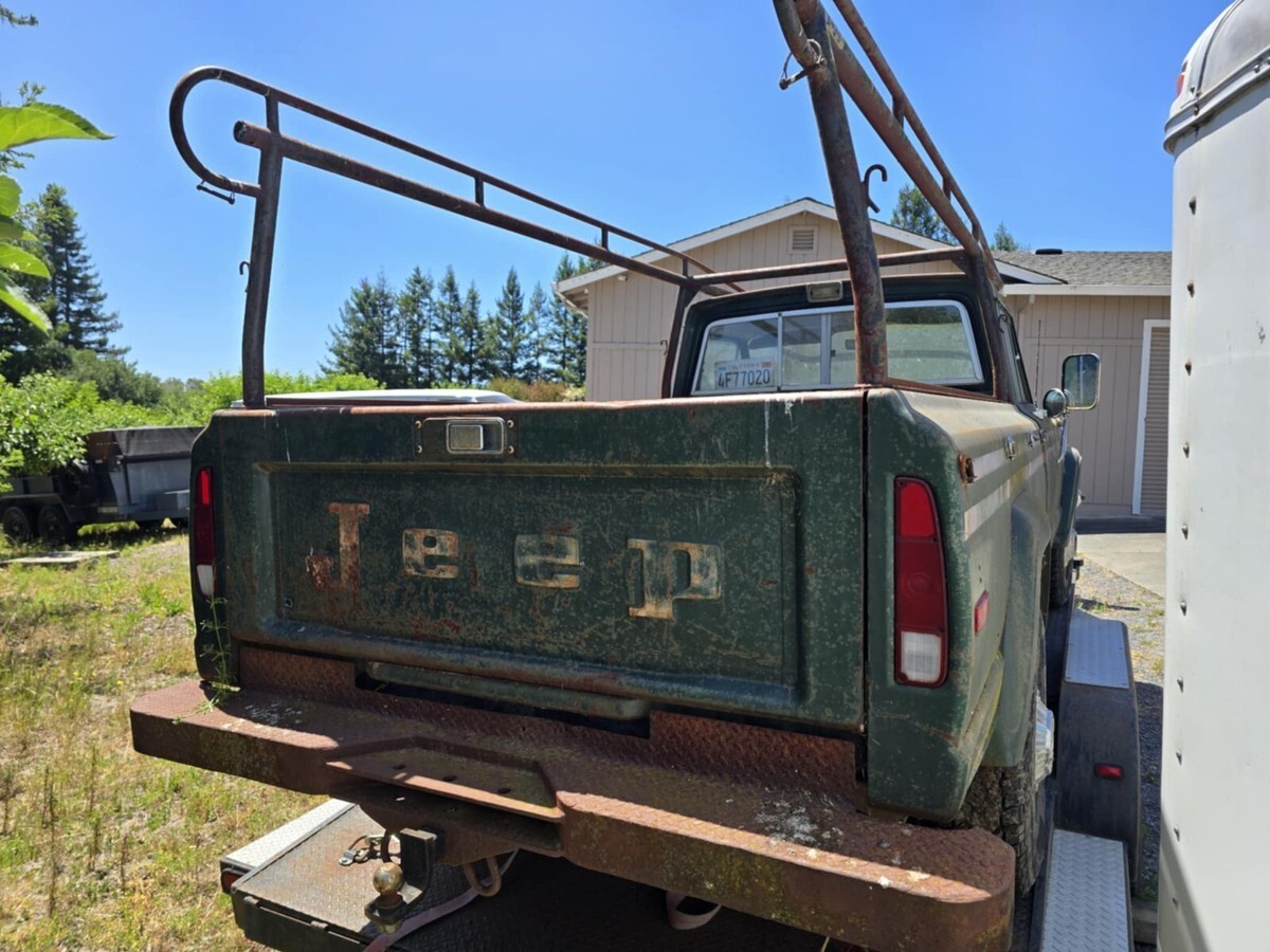 1977 Jeep J20 Truck Farm Fresh- Running Project Truck 4x4 Sm Block Chevy- has been sitting for 1-2 years- at the time of parking, had brake work done and new tires put on- this truck is not smog legal in the state of California as it has a small block chevy engine installed- no smog will be provided and prefer to sell out of state id possible- if you win and your in California, you understand that its not smog legal and i will not get it smoged. I jump started the truck with gas down the carb- it ran and made no unusual noises- will need to be gone through completely before its road ready and will need to be towed- it will not drive onto a trailer; you will need to winch it up. overall good condition and only a couple small minor dents and 2 spots of floor rust in the cab- clear ca title.Please message me with any questions- I can get more photos if you would likeLocated in Sonoma county CaliforniaBuyer is responsible for all shipping arrangements-$500 dollar non refundable deposit due within 48 hours of of completed auction- full payment to be made via cashiers check from a well known bank and must clear before vehicle leaves- cash in person is the best form of payment- no personal checks, no bank transferers. Full payment due with in 7 days of auction ending. buyer must pick up vehicle within 2 weeks of auction ending.I reserve the right to end the auction early as the vehicle is listed locally-!!!!!DO NOT CASH OUT WIT CARMEL!!!!