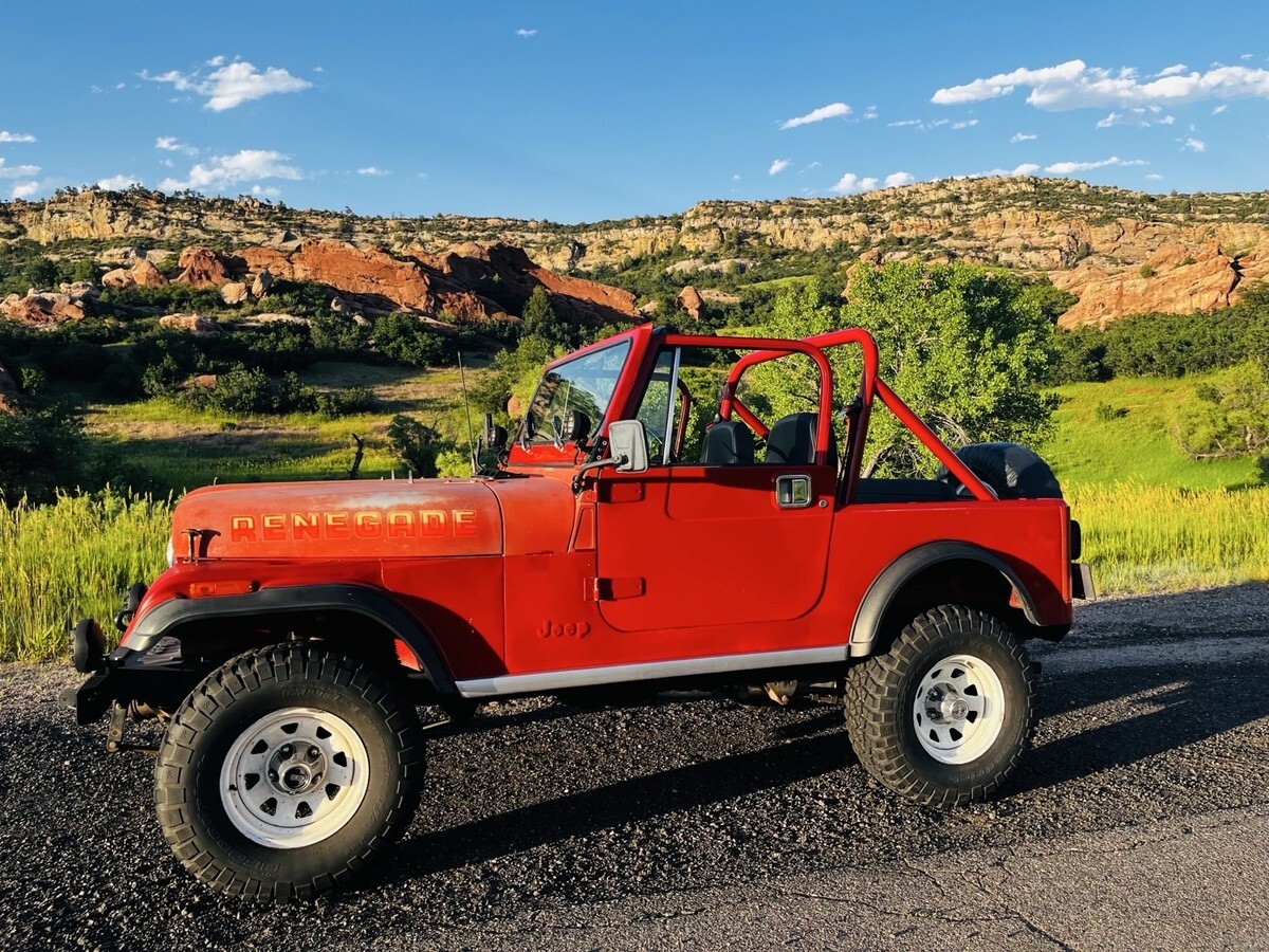 1984 CJ-7 Renegade. New seats. Upgraded larger fuel tank. Hard top and hard doors. Comes with flat tow bar and bikini top. Minor rust on floorboard of driver side and passenger side - that is the only rust. Clean Colorado title. Can pass emissions. Engine is 4.2L, 258 CID.