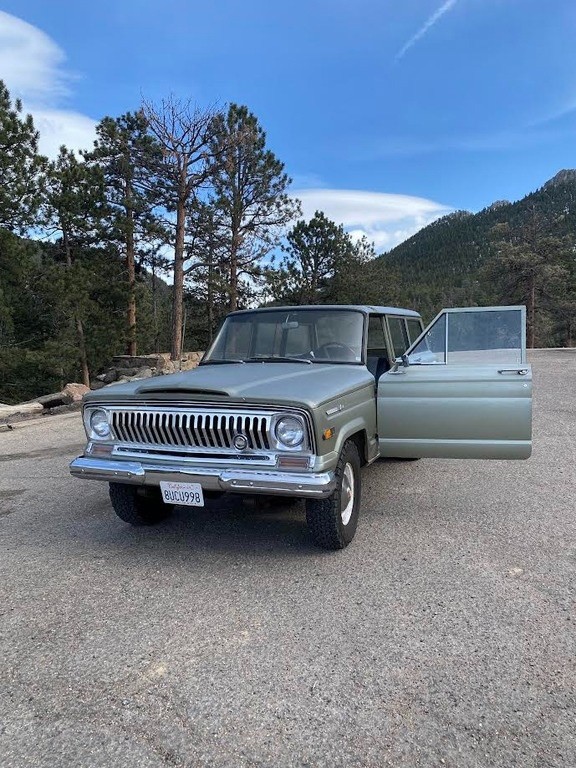 1969 Jeep Wagoneer 4X4 This 1969 Jeep Wagoneer 4X4 is a rugged classic with a solid foundation and several key upgrades. Originally from California, it was purchased in 2023 and relocated to Estes Park, Colorado. Under the hood is a strong-running Buick 350 engine enhanced with a brand-new Holley fuel injection system, new fuel pump, and a rebuilt transfer case for improved drivability and reliability. It also features a new master brake cylinder and all-terrain tires, making it ready for mountain roads or off-road adventures. The interior showcases restored seats, offering both comfort and vintage charm. The body is straight overall, with the exception of a minor fender-bender on the rear right. This Wagoneer blends classic stylin