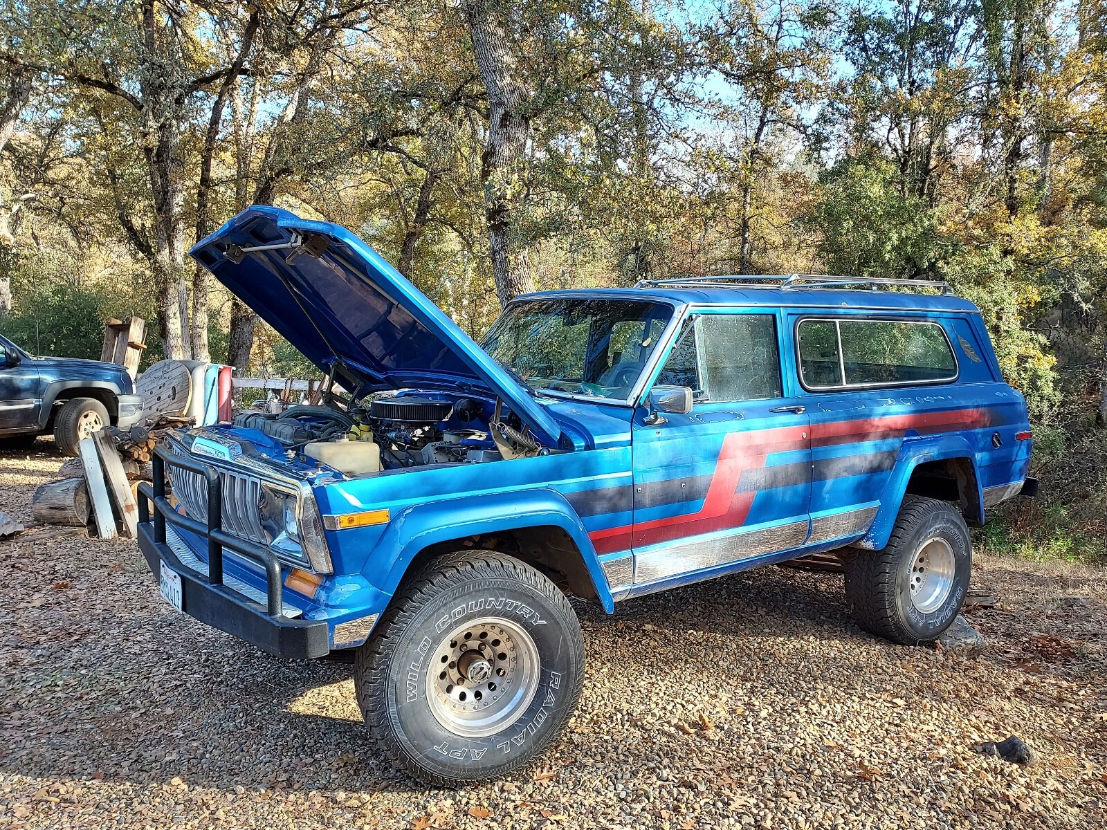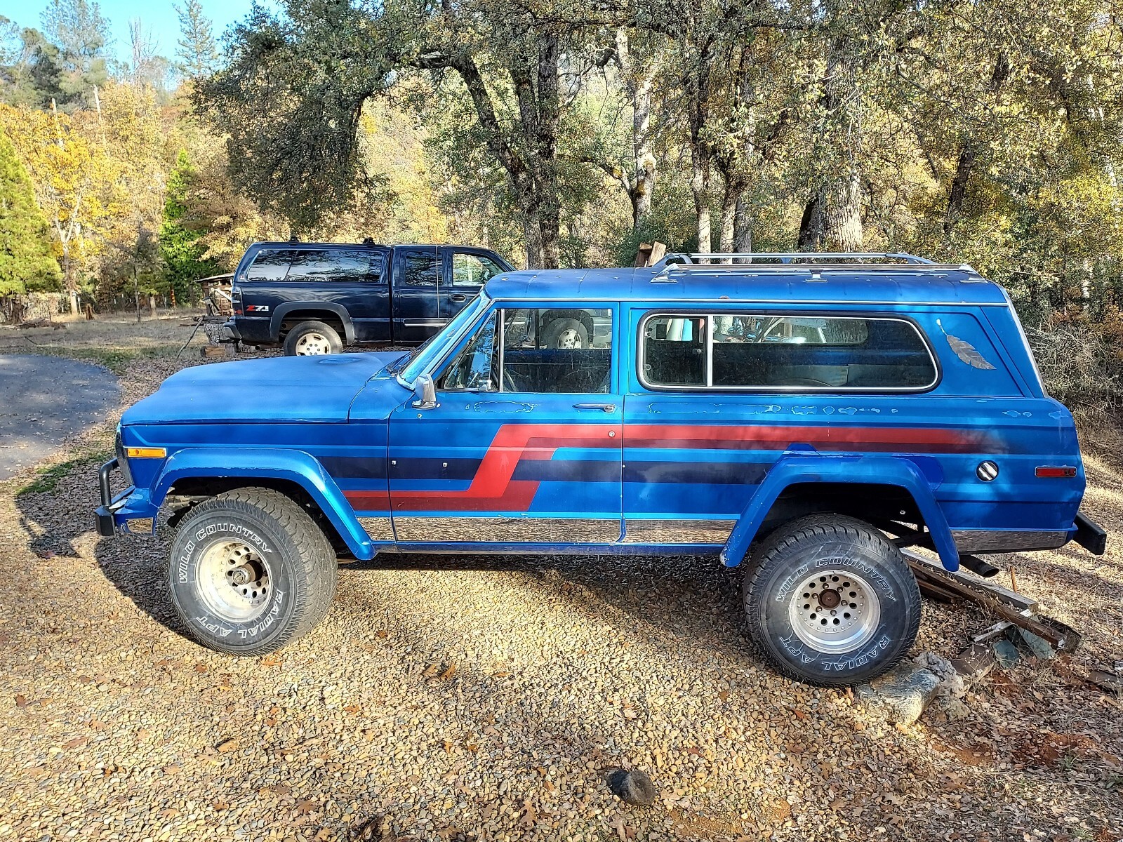 California Fresh Full Size Jeep Cherokee Chief Sport. 360 V8 with 727 Auto Trans, 4x4 with manual lockout hubs.Tires have tread, but are old. Engine tune up work done, Brakes done with all new parts, dual exhaust, custom bumpers.This truck is the Blue Beast! Yes, she is a Monster! Runs great, not too loud while driving but Roars when you goose it. I have never driven at high speeds or long distance, just some crawling around on hilly twisty dirt roads...and she excelled!Inside is rough, some of the switches might not work, but she has original buckets with center rest, and back seat folds down, then flips forward to front seat backs.Tired window motors, electric windows and locks. When battery is fully charged the windows work better. When battery is low, they slow down or stop. Enough works now to drive it, but really needs a lot of detail components renewed. I was using old batteries ass I did not drive hardly at aall, and batteries always seemed to run down after sitting. Not sure if that's old batteries, of something robbing power. I have a new battery for it.People are doing serious restorations on these trucks and demanding very high prices. The shine is off of this one, but she is California Clean. Hardly any rust at all and no major dents. I found peeling/cracking bondo from when she got her 80's makeover. Rather than ignoring or restoring, I scraped it out, did careful sanding, then etched, primed and painted the spots. This way its preserved, but you can see what you've got. Nothing hidden.She has a salvage title. I was told its not from collision, but from being stolen. She disappeared for a while and eventually turned up in Sacramento, CA. That's when she got the salvage designation. You can pick her apart, but you will look long and hard to find a more solid, better running Widebody Survivor FSJ in northern NY.The first several pics were taken last summer when still in CA. The last group of closeups were taken July 2025. Has not been driven in NY, however the sun is working on the clear coat causing fading of paint coat and peeling of the clear. I focused on bottom pics because thats where the beef is, and the true test of clean. See the solid floors and the crisp edges on all the metal components.If you want to build an awesome FSJ, you will save a lot of work/dollars if you don't have to clean up rust and/or collision damage and you start with something clean and solid. Want a beast that won't fall apart on you? This is the one!Still has CA plates and title. Registered Non-Operational in CA. Current location, Watertown, NY.For sale as-is, where-is. Please do your own inspection and ask all questions before bidding.