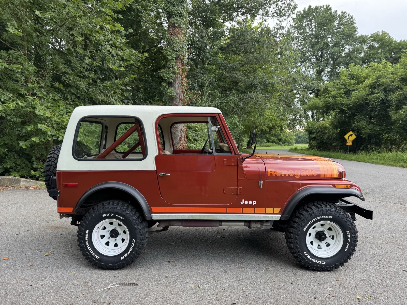 Late 79’ model Jeep CJ7 Renegade highly optioned with AMC 304 V8 automatic, hardtop and hard doors. Mostly original paint gives it a very nostalgic look. This is the year and package everyone wants. New tires, fresh painted top, body paint corrected and blended where needed to preserve original look. New holly 2300 runs excellent, shift right. Side pipe exhaust. Expertly restored seats and buttons on excellent original frames. The hard work is already done it’s ready to enjoy now.
