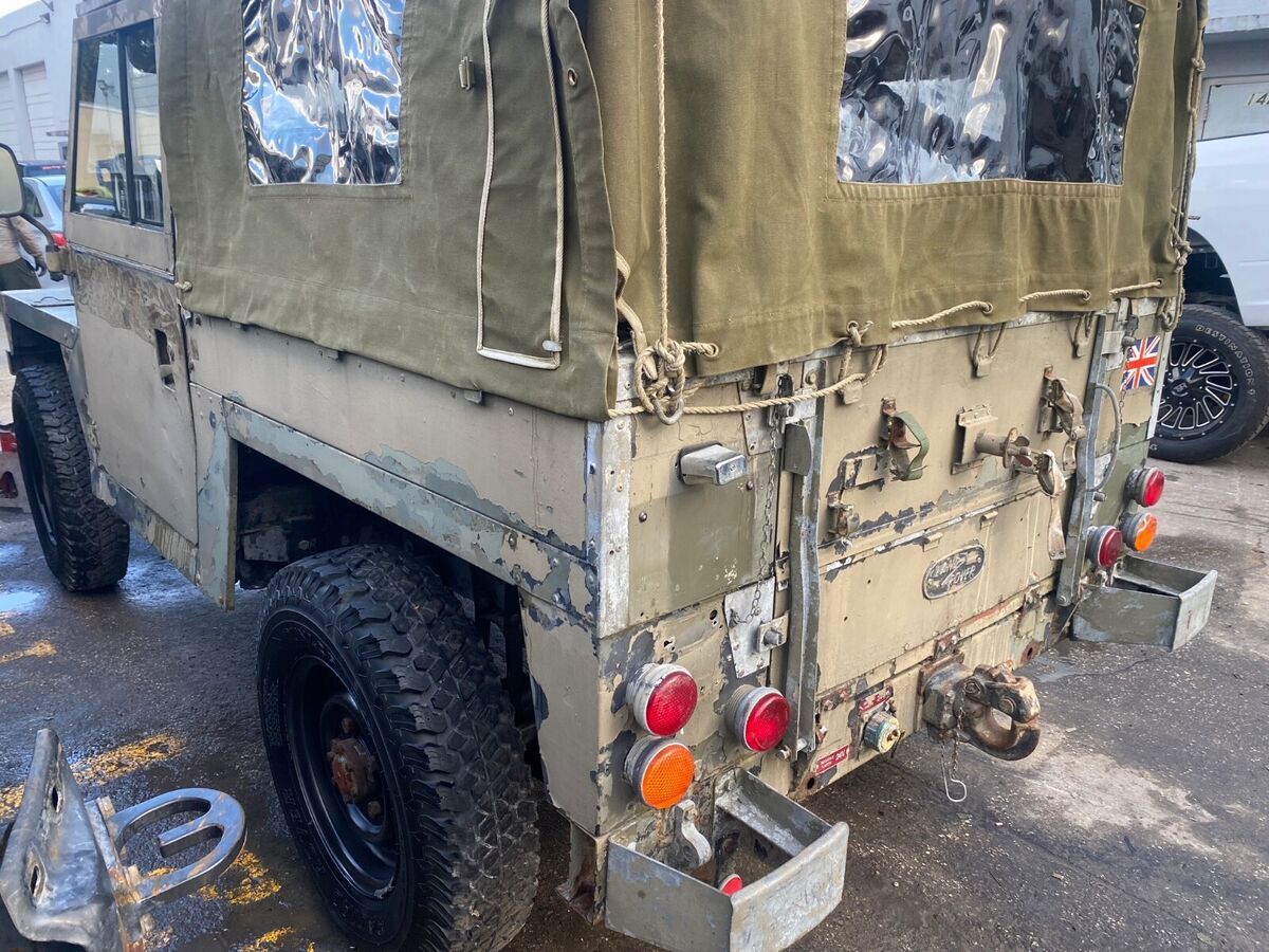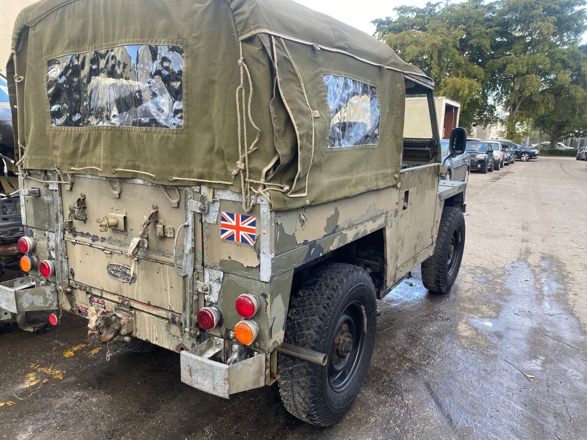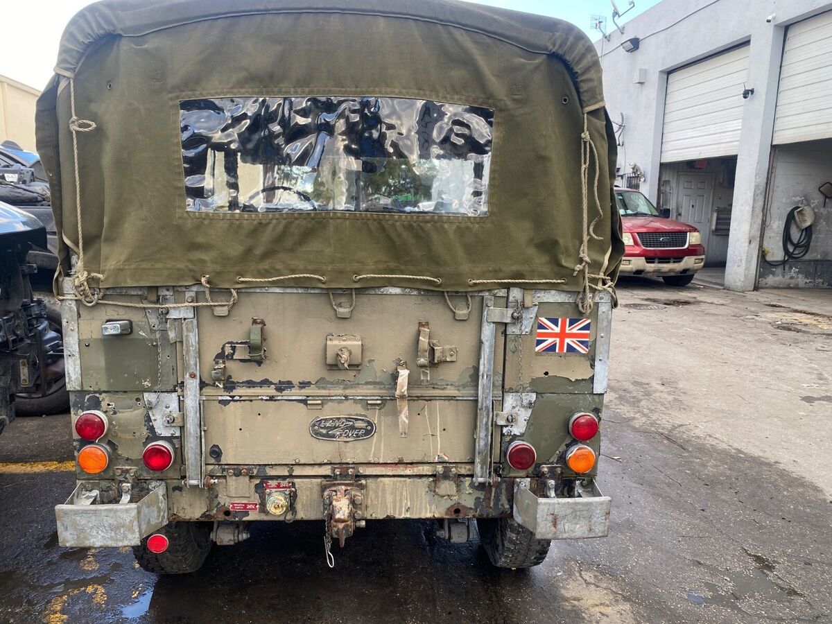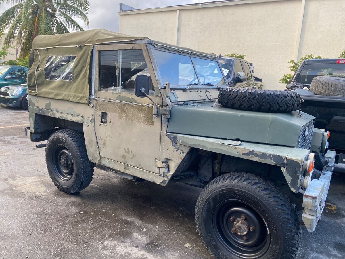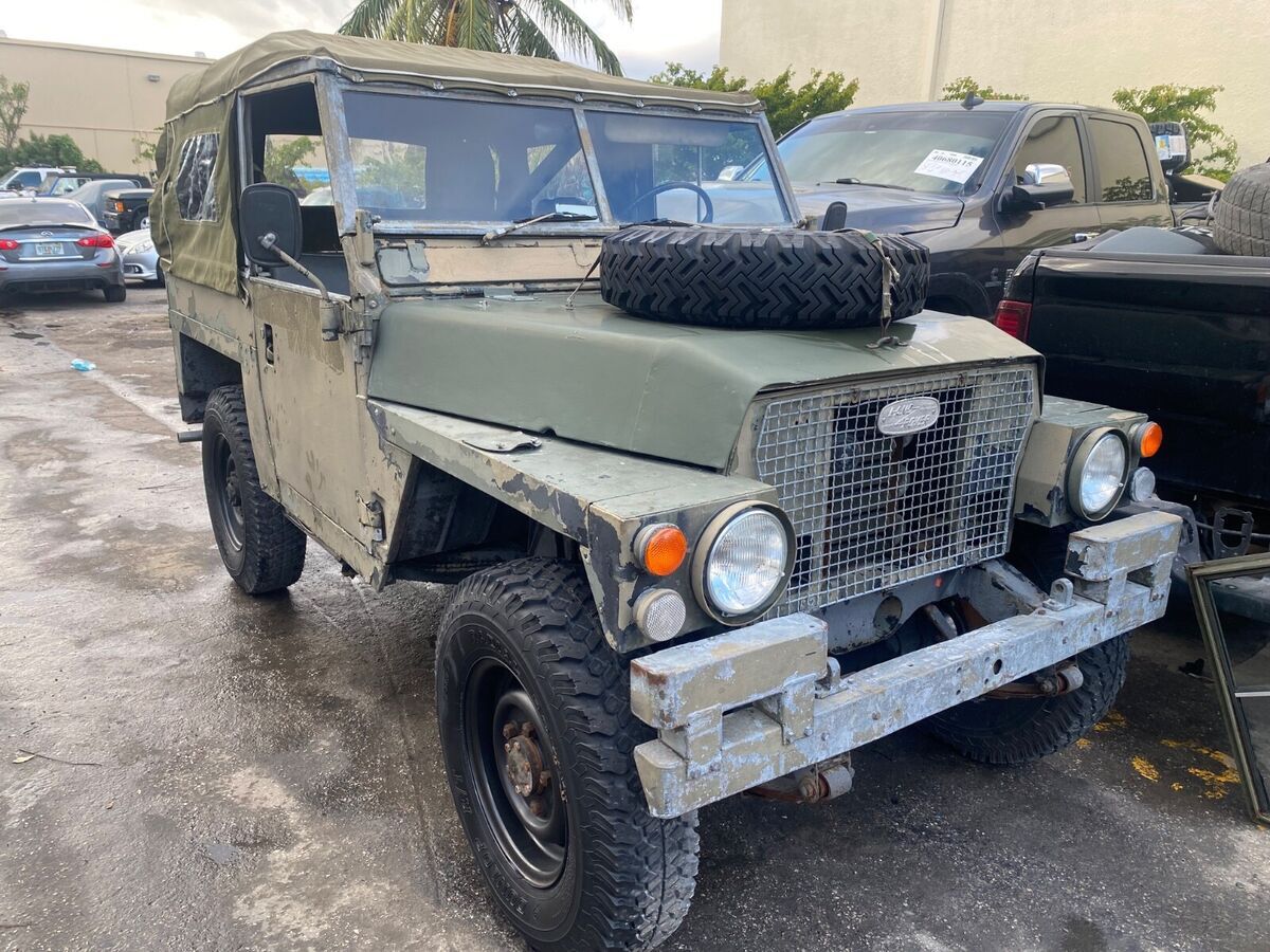 RARE 1976 LAND ROVER 88”LIGHTWEIGHT RUNS AND DRIVES WELL WAS BRANDED BECAUSE IT CAME FROM THE TAMPA AREA AND WAS AFFECTED FROM THE PRIOR HURRICANE INSPECTED AND TITLE BRANDED REBUIL, NEW EXHAUST AND EXMOOR SOFT TOP ALSO BESIDES TOP FRAME A ROLL CAGE IS INSTALLE, MECHANICALLY SOUND GREAT FRAME AND BODY INTERIOR ORIGINA, COULD USE PAIN, NATO GREEN ALL ITS LIF, LH, SOME SPARES GO WITH IT REBUILT TRANSMISSION AND NEW CLUTCH AND HYDRAULICS ALL FRESH BRAKES AND SUSPENSIO, ALL FLUIDS CHANGED AND RUNS AND DRIVES AWESOME WE HAVE VIDEOS FOR INTERESTED PARTIES, PERFECT FRAME AND FRONT FIREWALL PANE, REBUILT ALTERNATOR AND CARBURETOR TOO LOTS OF GOOD WORK WENT INTO IT READY TO ENJOY AND DO MINIMA INTERVENTION, DO NOT MISS THE OPPORTUNITY THANKS FOR LOOKING & GOOD LUCK BIDDING