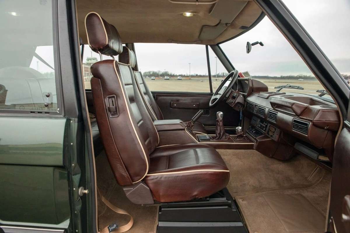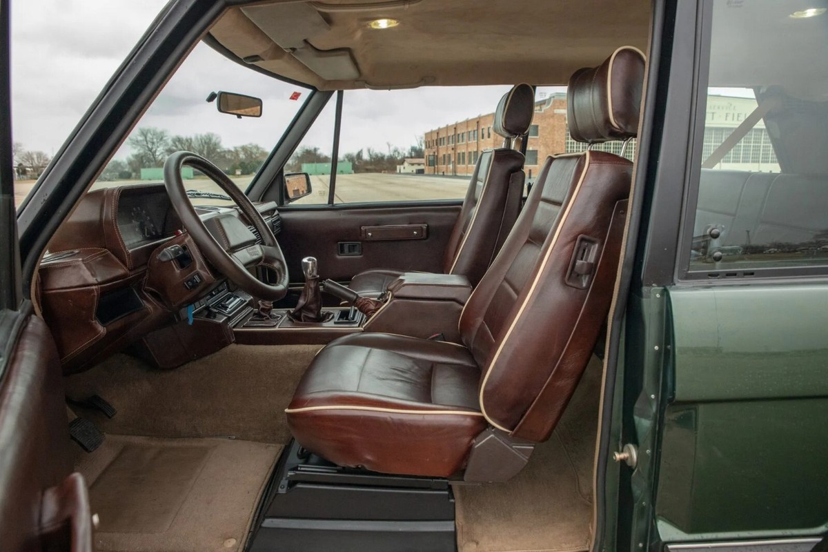 1991 Land Rover, Range Rover Classic. Converted and upgraded to a Rover 300Tdi turbo diesel and an R380 manual gearbox. Full custom leather interior. Recent servicing included new upgraded alternator.This rig sold on BringaTrailer last year where there are lots of photos and details on the truck:https://bringatrailer.com/listing/1991-land-rover-range-rover-65/Currently in Northern Virginia. Ardennes Green Metallic paint is original and is Ok for a driver. Unique and powerful powertrain conversion and very one-off brown leather dash, doors, seats, cubby, and console. Clean Virginia title. +2" suspension lift and roughly +1" lift on oversized tires.