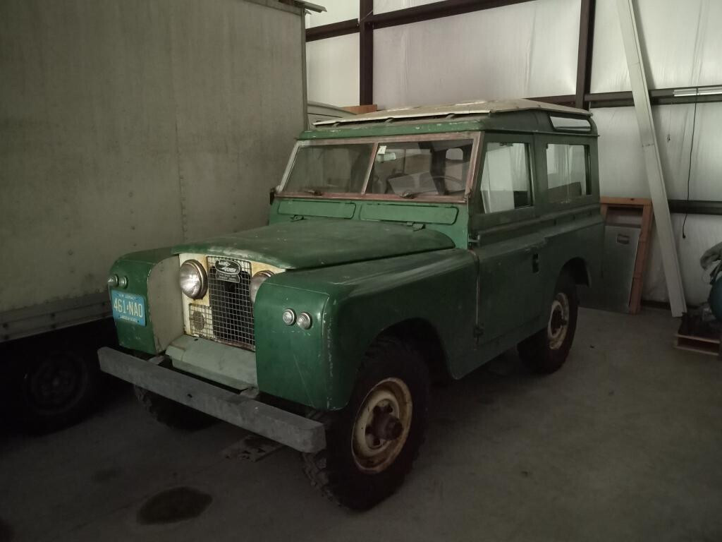 1964 Land Rover 88 II A seven passenger station wagon. Grey E hide interior, tropical roof, round non tire mount hood, Warn hubs, four new springs and shocks. Very good bulk head, dry stored in garage for 30 years. For restoration, with new Marsland galvanized frame(see photo) and many NOS parts(UK parts). I am listing this for my friend who lives in Maine. For questions, further info, etc. I will provide his phone number, otherwise I will not be involved with this transaction.