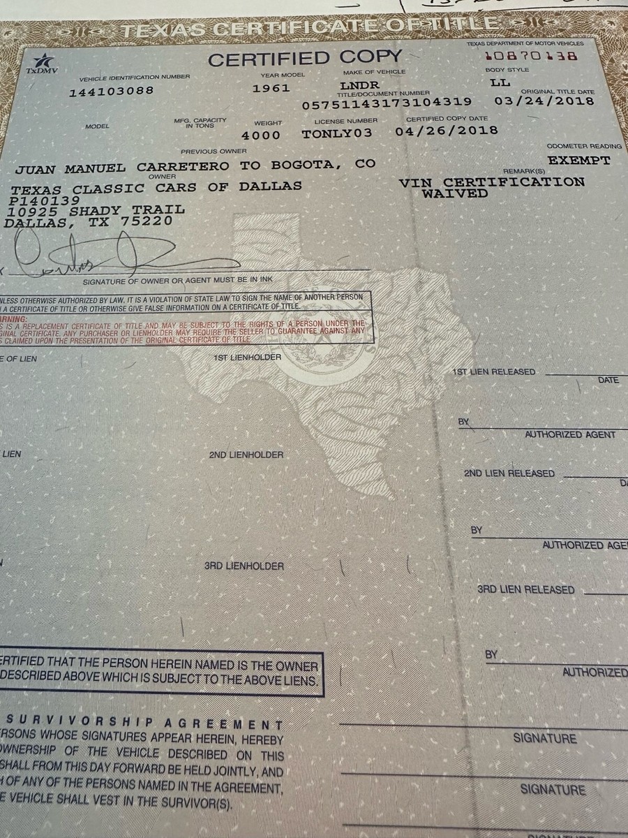 Cars been beautifully restored essentially has been stored in a museum area since purchased in 2016 regularly started bought from a reputable dealer in Texas. Excellent vehicle.