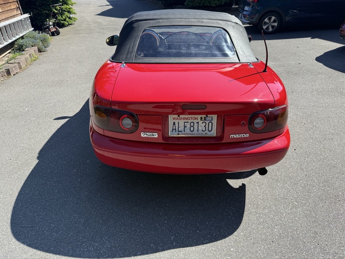 This 1993 Mazda Mx-5 Miata is an original with a new paint job and the canvas top was replaced. The owner has had it for 5+ years. The vehicle runs great and is mainly used for monthly dates.