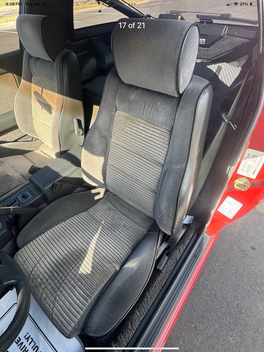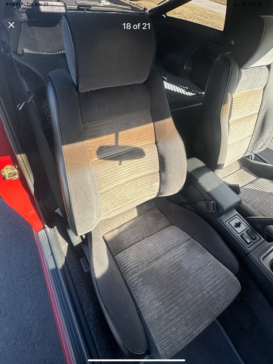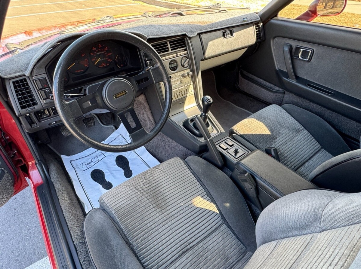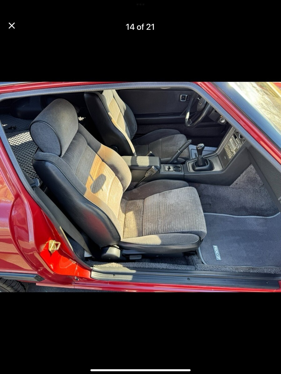 This 1985 Mazda RX-7 GSL-SE with 124k miles. An additional option included is variable assist power steering. Work performed replacing the clutch master and slave cylinders, replacing the brake master cylinder, spark plugs, spark plug wires, drive belts, thermostat, four speakers, replaced front and rear springs and struts, installed new rear shocks, replaced both strut cartridges, replaced differential carrier, rebuilt power steering pump, installed four new BFGoodrich Radial T/A tires (215/60R14), replaced power antenna motor, and battery. The windows were tinted to protect from the sun’s rays, although the car has been kept in the garage while under current ownership.