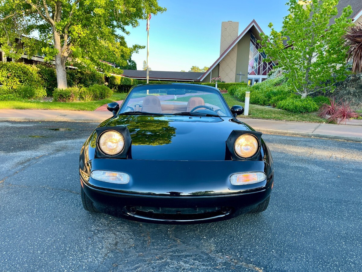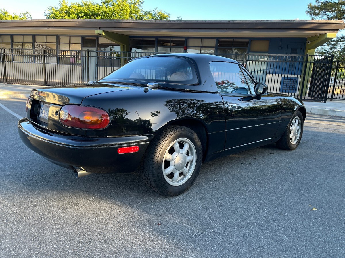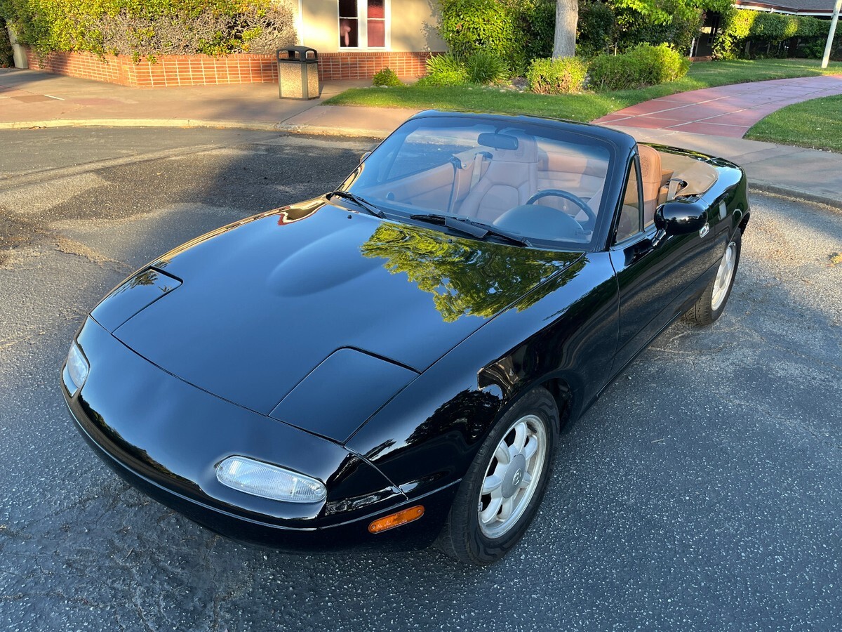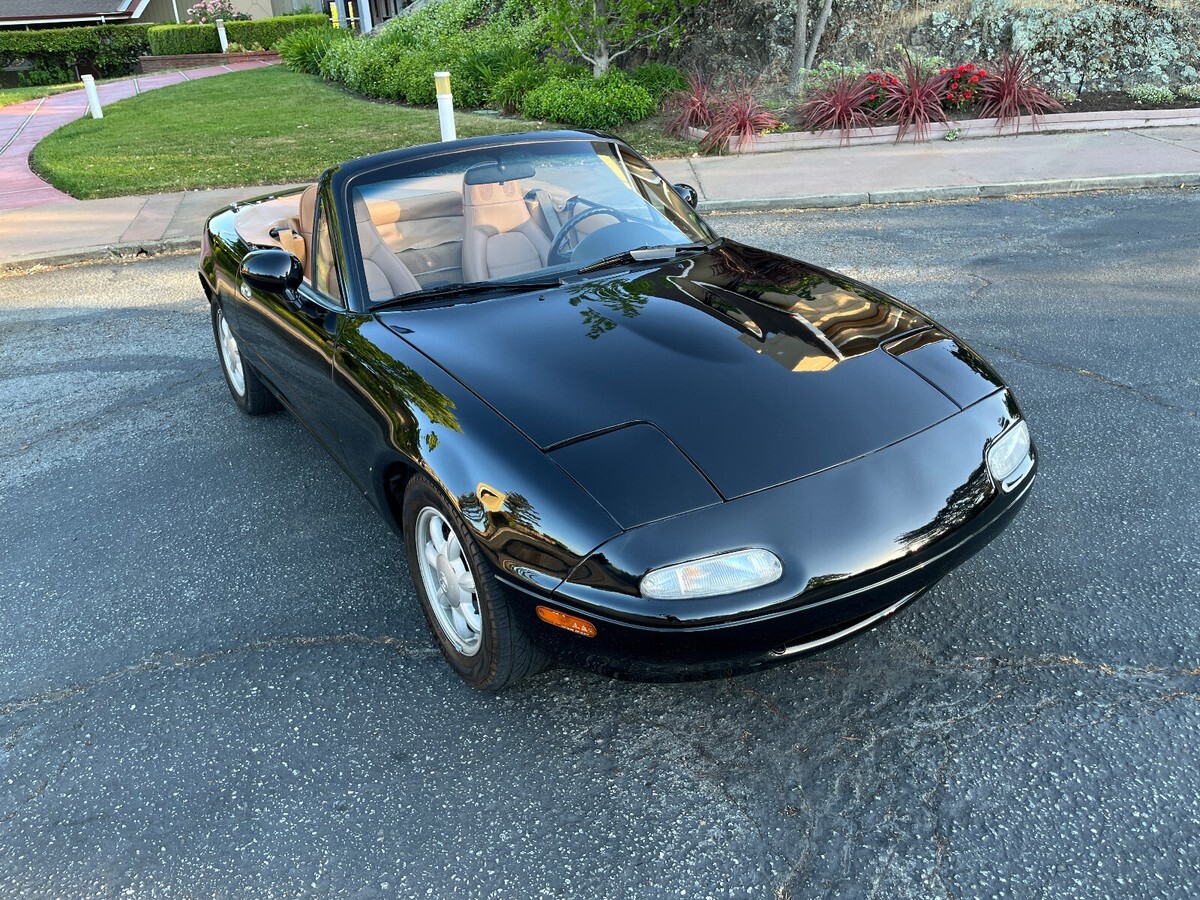 1993 Mazda Miata MX-5 in excellent condition. This is a 5-Speed, clean title, rust-free California car with recent smog certificate, equipped with soft top and color matching hardtop, A/C, power steering, power windows, and power mirrors. The timing belt along with all fluids and tune-up, including spark plugs, wires, filters, etc. have been changed within the last two thousand miles at one of the Bay Area's most respected shops, A+ Japanese Auto Repair. This Miata is a classic sports car known for its sleek design and fun-to-drive performance. This manual transmission vehicle features a 1.6 liter 4 cylinder engine, perfect for winding roads and quick acceleration. With a stylish black exterior and luxurious tan leather interior, this car exudes a sporty yet comfortable vibe.Overall, this Miata is in excellent shape for a 30+ year-old car and this example lives up to the what this cars have become, an iconic and timeless piece of automotive history that is sure to impress any car enthusiast.https://m.youtube.com/watch?v=V2UvkadayO0