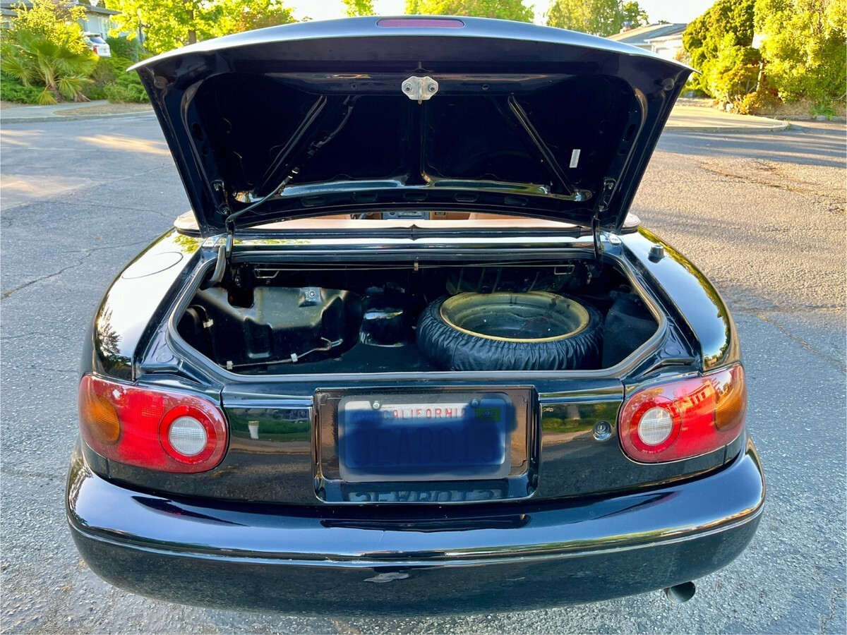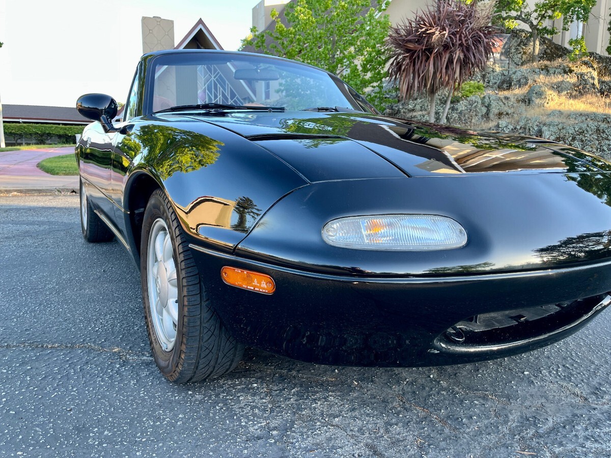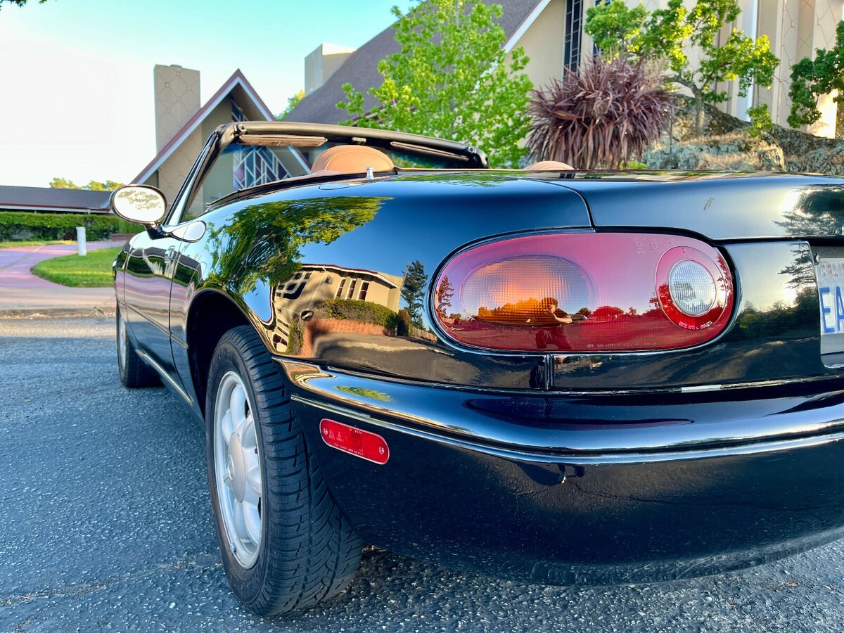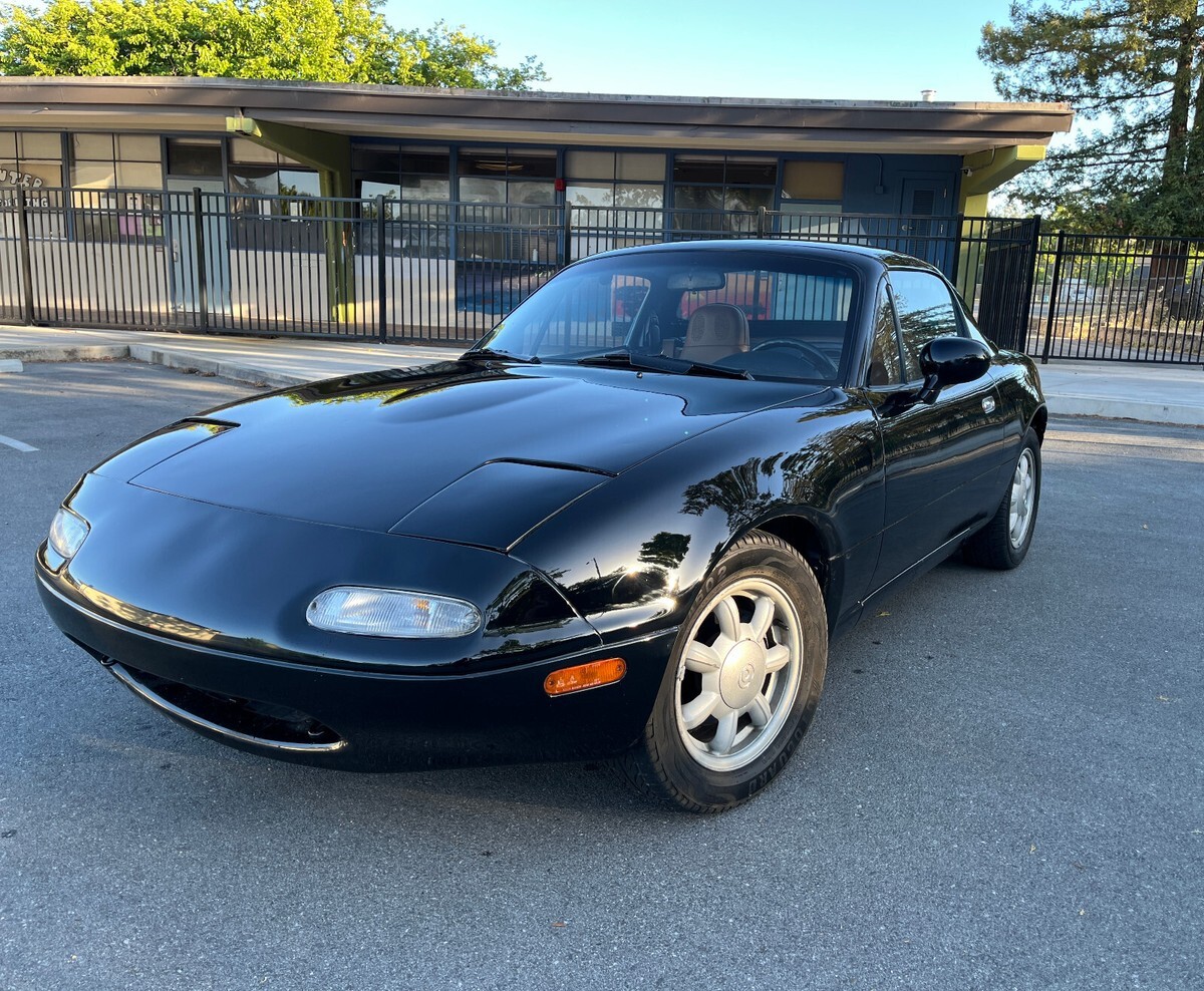 1993 Mazda Miata MX-5 in excellent condition. This is a 5-Speed, clean title, rust-free California car with recent smog certificate, equipped with soft top and color matching hardtop, A/C, power steering, power windows, and power mirrors. The timing belt along with all fluids and tune-up, including spark plugs, wires, filters, etc. have been changed within the last two thousand miles at one of the Bay Area's most respected shops, A+ Japanese Auto Repair. This Miata is a classic sports car known for its sleek design and fun-to-drive performance. This manual transmission vehicle features a 1.6 liter 4 cylinder engine, perfect for winding roads and quick acceleration. With a stylish black exterior and luxurious tan leather interior, this car exudes a sporty yet comfortable vibe.Overall, this Miata is in excellent shape for a 30+ year-old car and this example lives up to the what this cars have become, an iconic and timeless piece of automotive history that is sure to impress any car enthusiast.https://m.youtube.com/watch?v=V2UvkadayO0