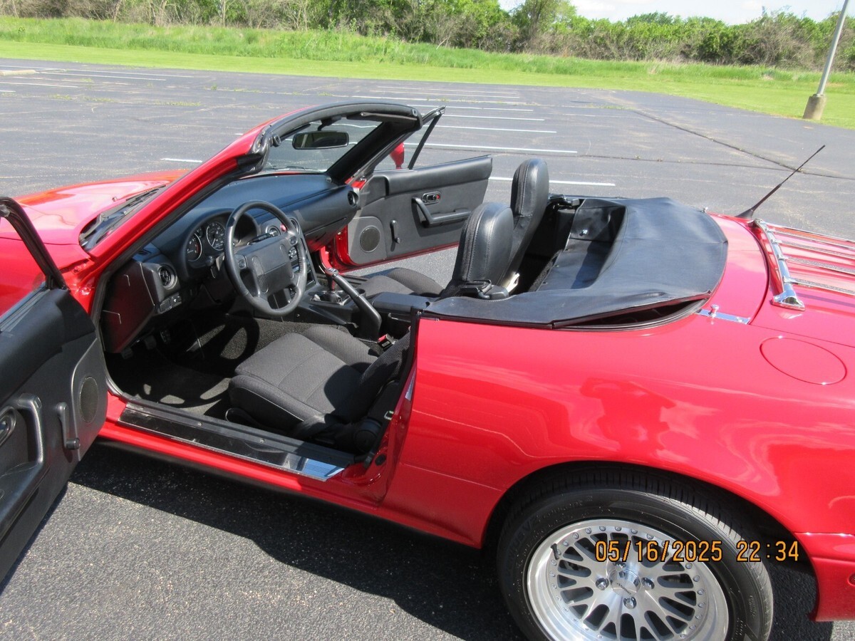 A 35 year old Miata made by Mazda with only 14,500 original miles. 1.6L 116hp, Custom Circuit 15" wheels, New Hankook 205/50R15 tires, The sound system has been upgraded to a Sony AM-FM Disk player and Sony speakers, Smooth shifting 5 speed transmission, Cloth seats, Pop up headlights, Luggage rack, Yonaka "Catback" stainless steel exhaust (mellow sound), Has car cover, Convertible top and back window are in like new condition in fact this entire car is in exceptional condition. 1990 was the first full year of production of the Miata which is referred to as the NA MX-5 model. Do your home work and read up on these fantastic little cars, nothing but praise and you will find that insurance rates are lower compared to other two seater sport cars. Plenty of power and a whole lot of fun to drive. There are Miata clubs all across the country. This car has been kept in a heated garage and babied all its life as you can tell by the pictures. The under side is clean never driven in salt its entire life. i am the second owner. This is a Miata MX-5 Roadster Convertible that you will be proud to own and fun to drive. ( top down of course) any questions please ask, Jack ( this auction only in U.S.)