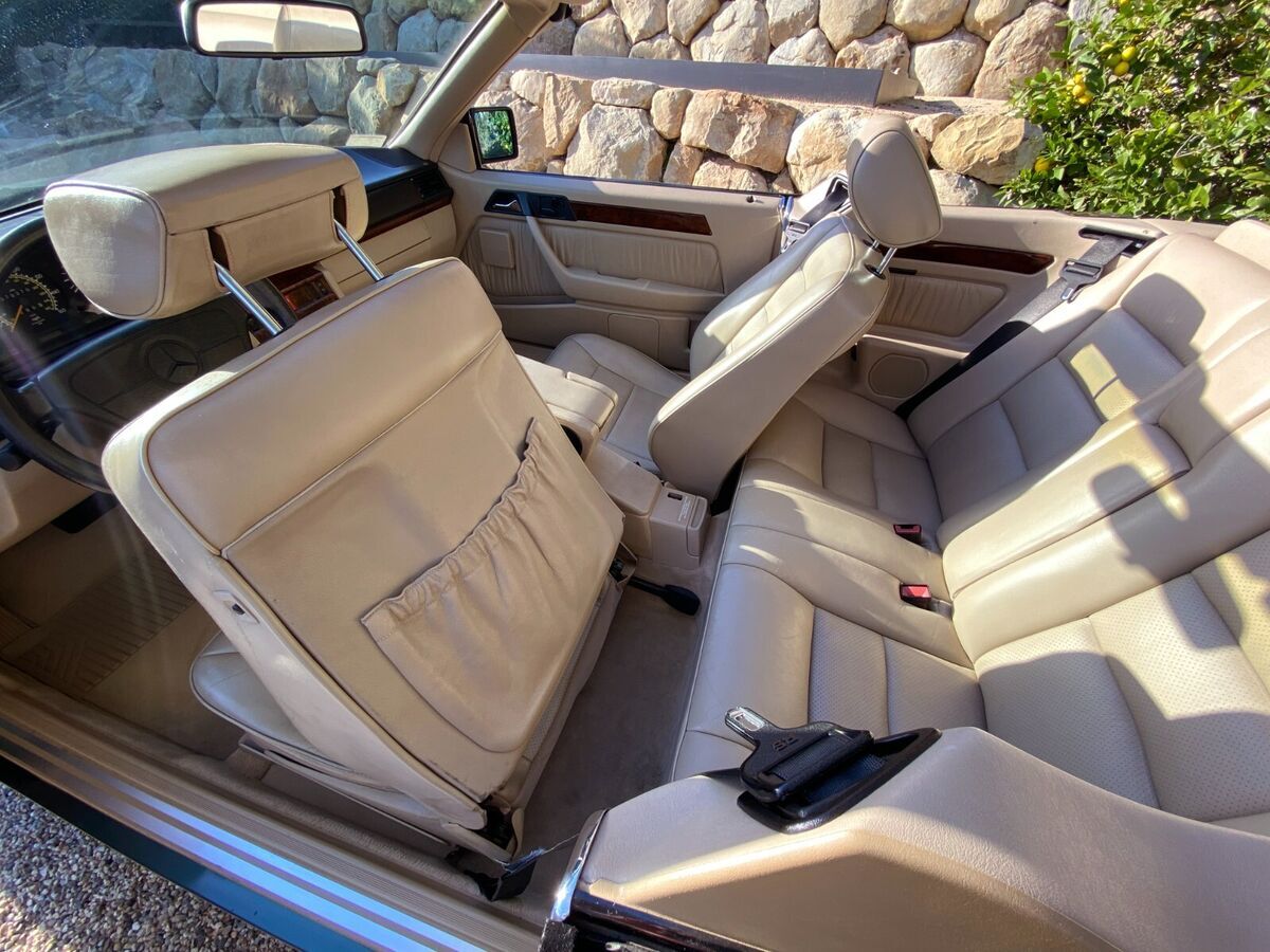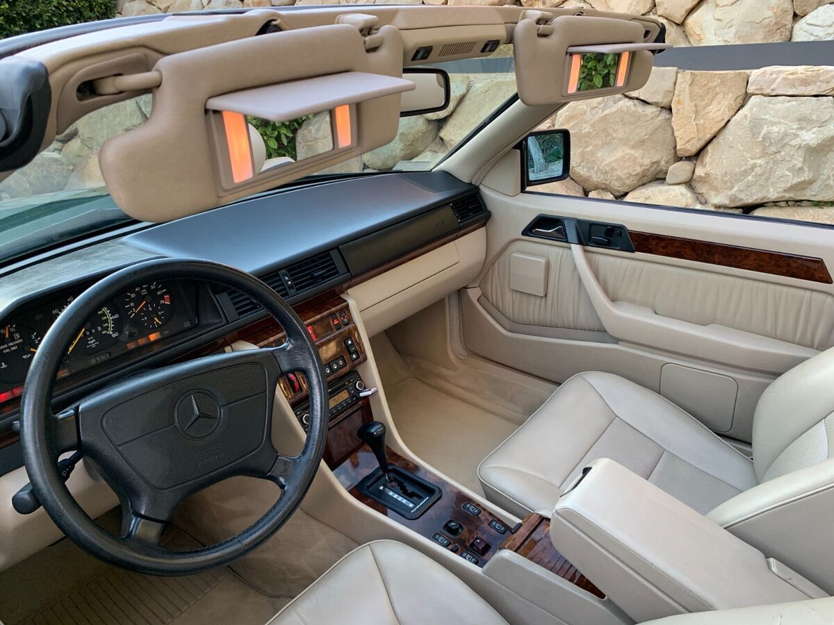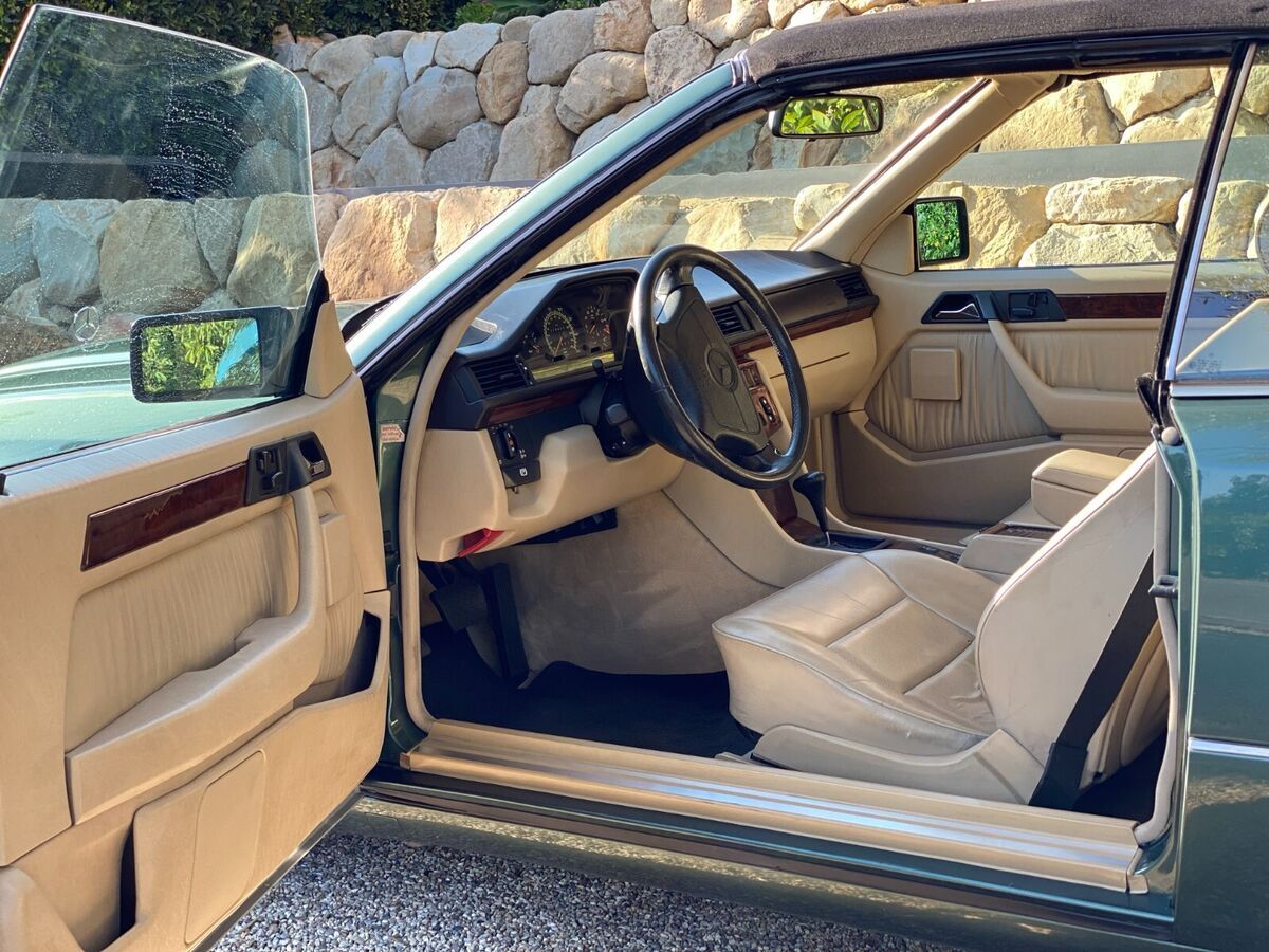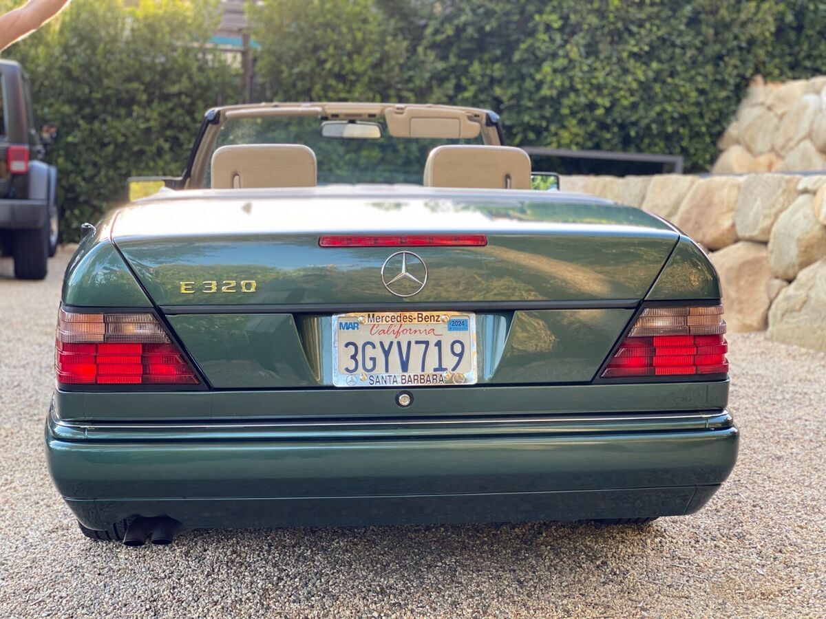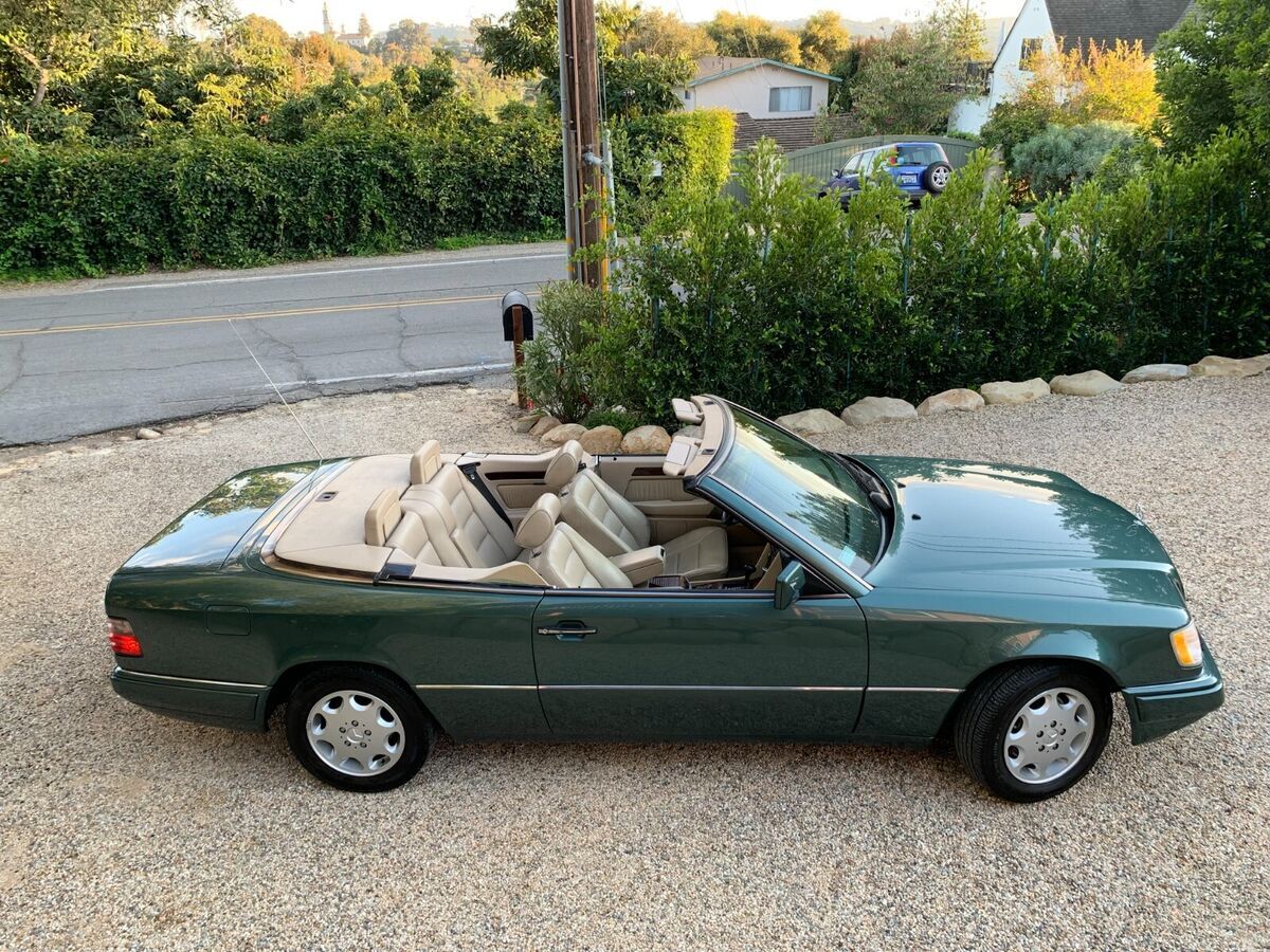 Original Owner American actress Dana Delany, and lovingly cared for ever since, this 1994 Mercedes-Benz E320 Cabriolet only has 79,700 miles on the odometer. A tasteful example of pure lines and simplicity from a bygone era. Just enough technology to make the ride comfortable, while enjoying a vintage feeling of luxury with the unique color combination of Malachite Green Metallic over Tan Leather. Power is provided by a 3.2-liter inline-six paired with a four-speed automatic transmission driving the rear wheels. This timeless automobile really turns heads and receives compliments wherever it goes!