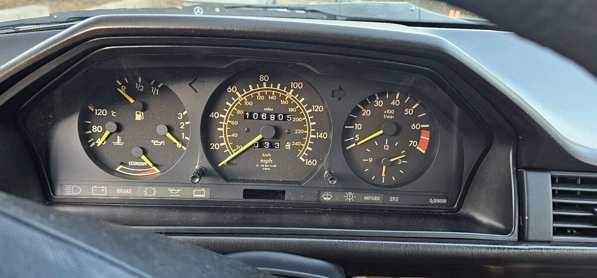 The car is Nautical Blue Metallic over Palomino leather interior. The current mileage sits at 106k which approximately 1500 miles I have added. The mileage is correct and backed up by service records and carfax. All dial gauges, odometer and trip odometer are fully functional including the clock.