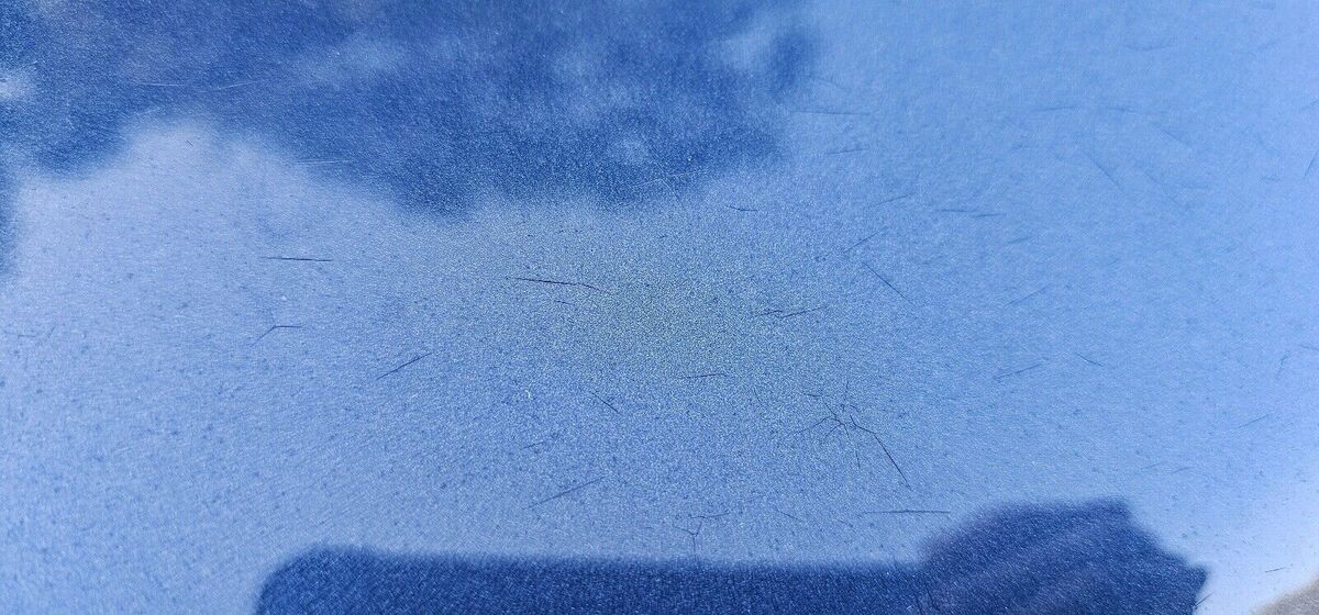 The exterior is the original Nautical blue with goldfish pinstripes. The paint overall looks very good. The hood, roof and trunklid do have some clearcoat checking. The RH passenger fender has a small dent which has not gone through the paint. Overall very nice for it's age and extremely presentable.