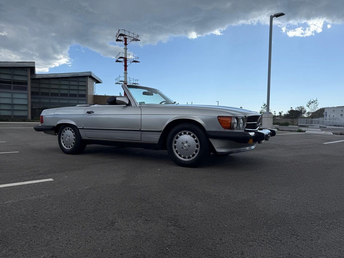 Stunning 1988 Mercedes-Benz 560 SL with a silver exterior and navy blue interior.This well-maintained classic has been recently serviced, with all maintenance up to date—service paperwork available.A fantastic daily driver that hasbeen living in Malibu, ensuring a well-preserved condition.Comes with a removable hardtop and Coco Mats.