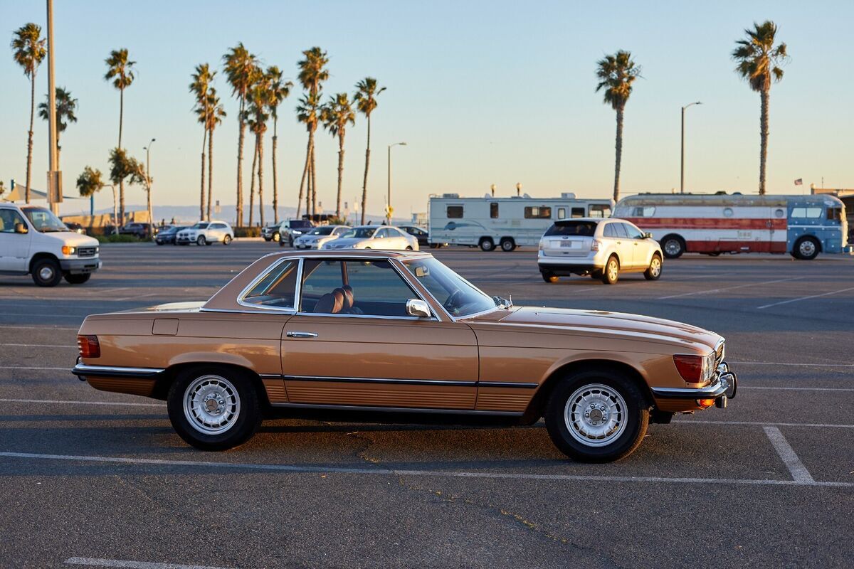This R107 is equipped with an automatic transmission, V8 engine, four-wheel disc brakes, power steering, twin exhaust finishers, quad headlamps, fog lights, side moldings, body-color hardtop, convertible soft top, four-spoke steering wheel, chrome trim, chrome bumpers, wire wheels, tool roll, and a full-size spare tire fitted in the trunk. Amenities include dual-side mirrors, door pockets, sun visors, lighter with an ashtray, and a glove compartment. A well-priced and original California car that is mechanically sound.3 owners only.