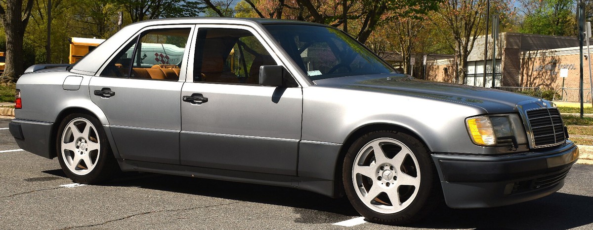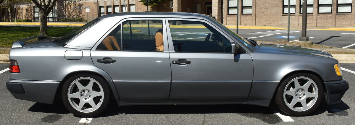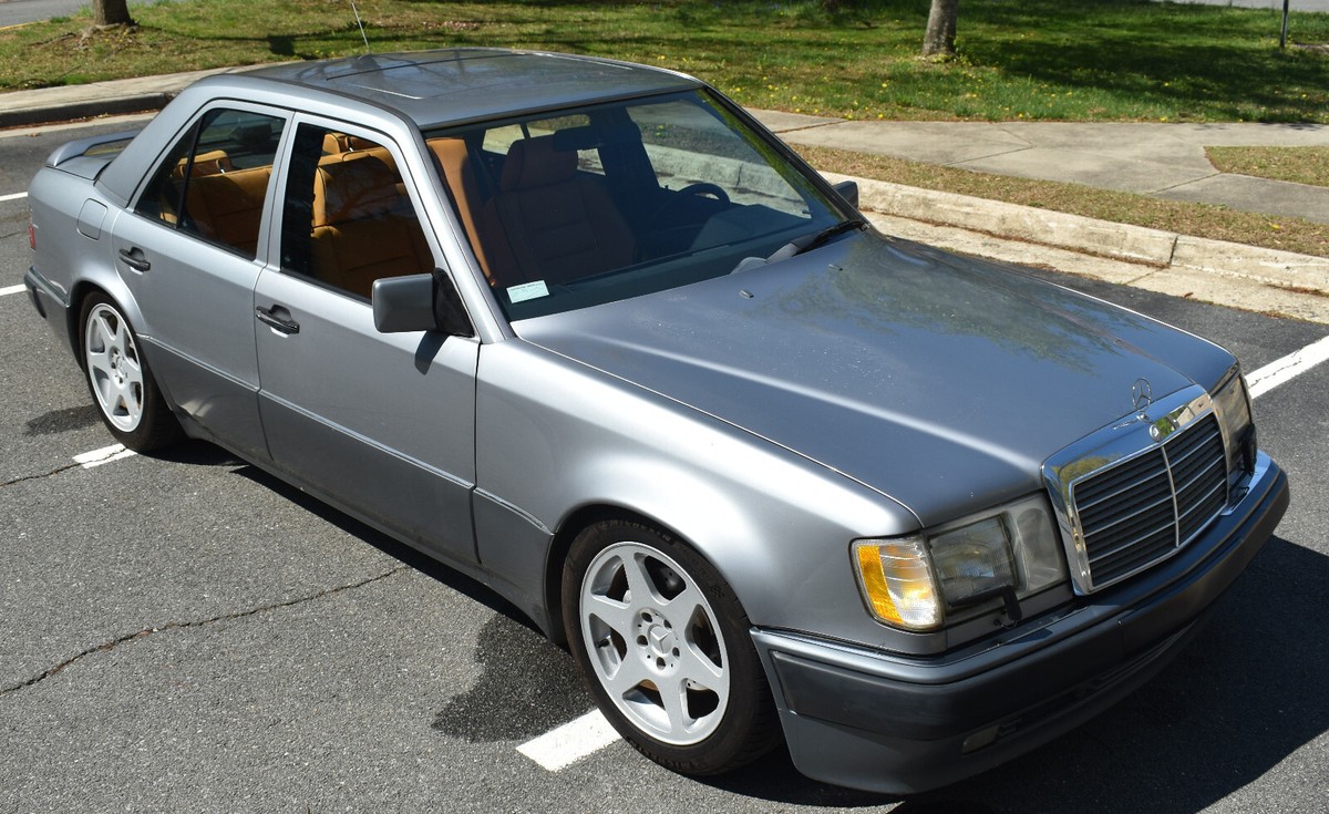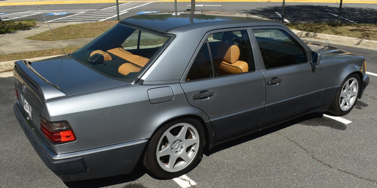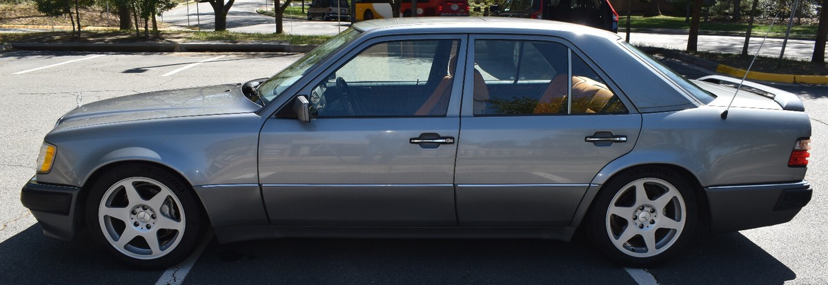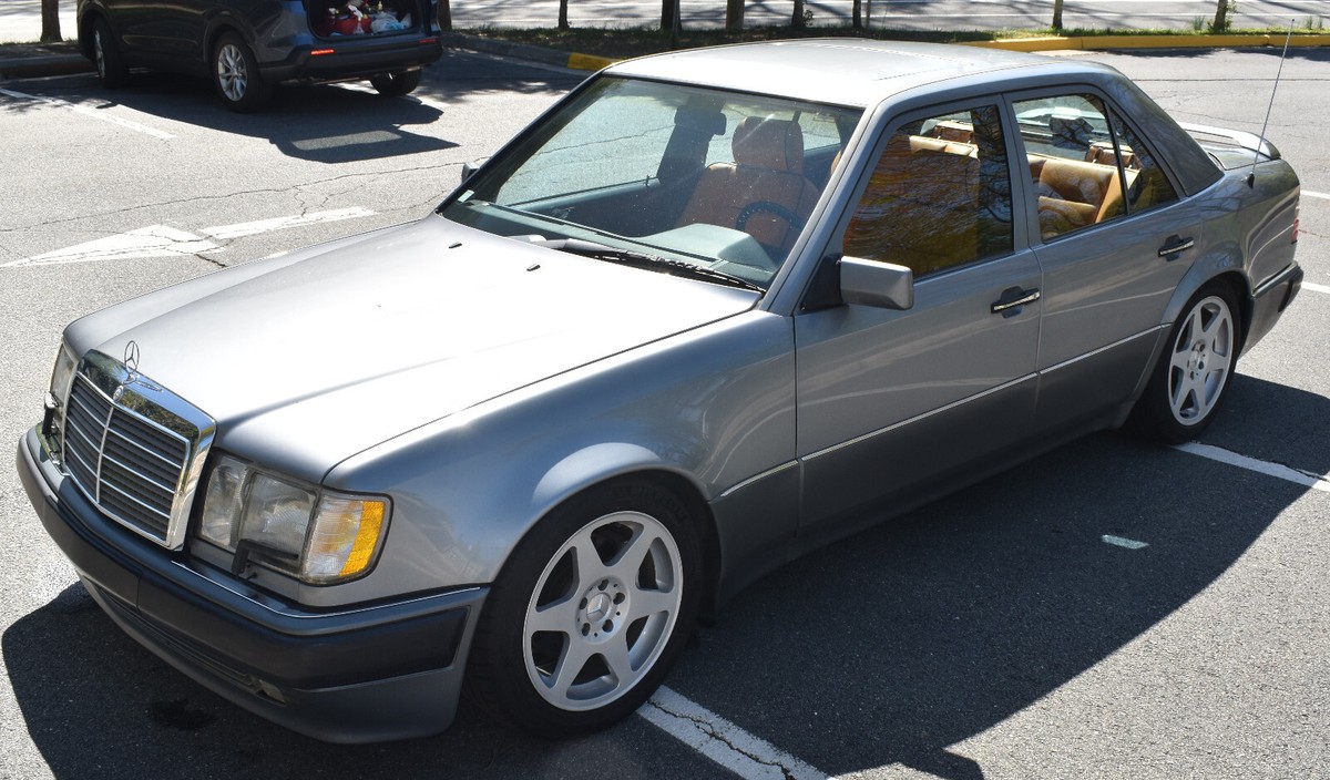 [isdntekvideo]1992 Mercedes-Benz 500 class 500E (W124) 4-door sedan with 81,000 miles and in the original Gray Pearl Metallic. This is a survivor and one of approximately 10,400 produced from 1990-1995 and one of 1,528 sent to the USA. It was known as a “wolf in sheep’s clothing” because of the powerful 5.0L DOHC (dual over head cam) 32-valve V8 boasting 322 horsepower and backed by a 4-speed automatic transmission.