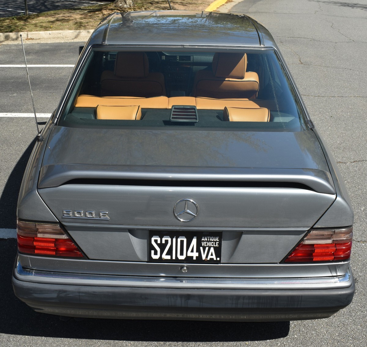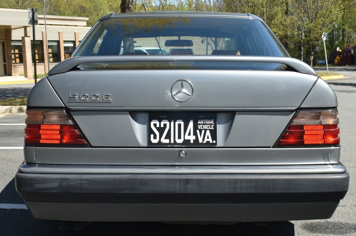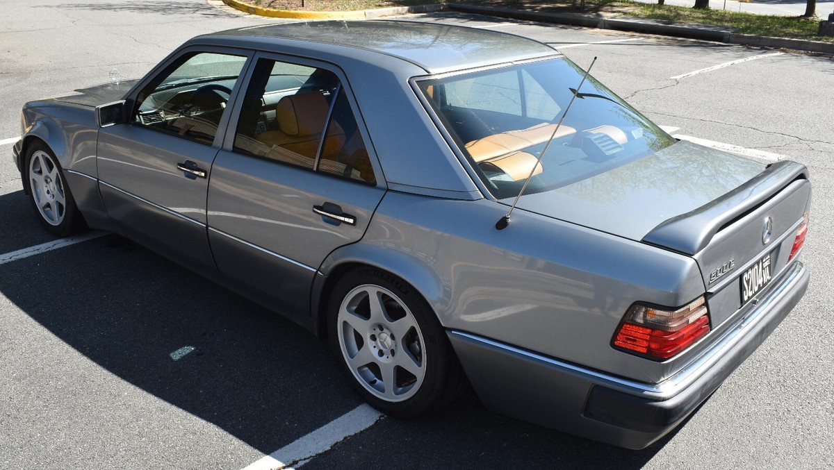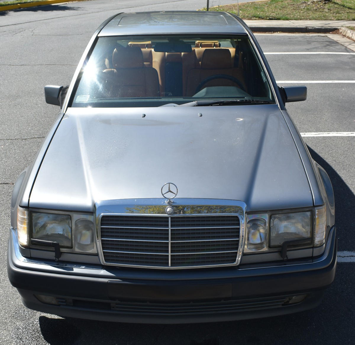 [isdntekvideo]1992 Mercedes-Benz 500 class 500E (W124) 4-door sedan with 81,000 miles and in the original Gray Pearl Metallic. This is a survivor and one of approximately 10,400 produced from 1990-1995 and one of 1,528 sent to the USA. It was known as a “wolf in sheep’s clothing” because of the powerful 5.0L DOHC (dual over head cam) 32-valve V8 boasting 322 horsepower and backed by a 4-speed automatic transmission.