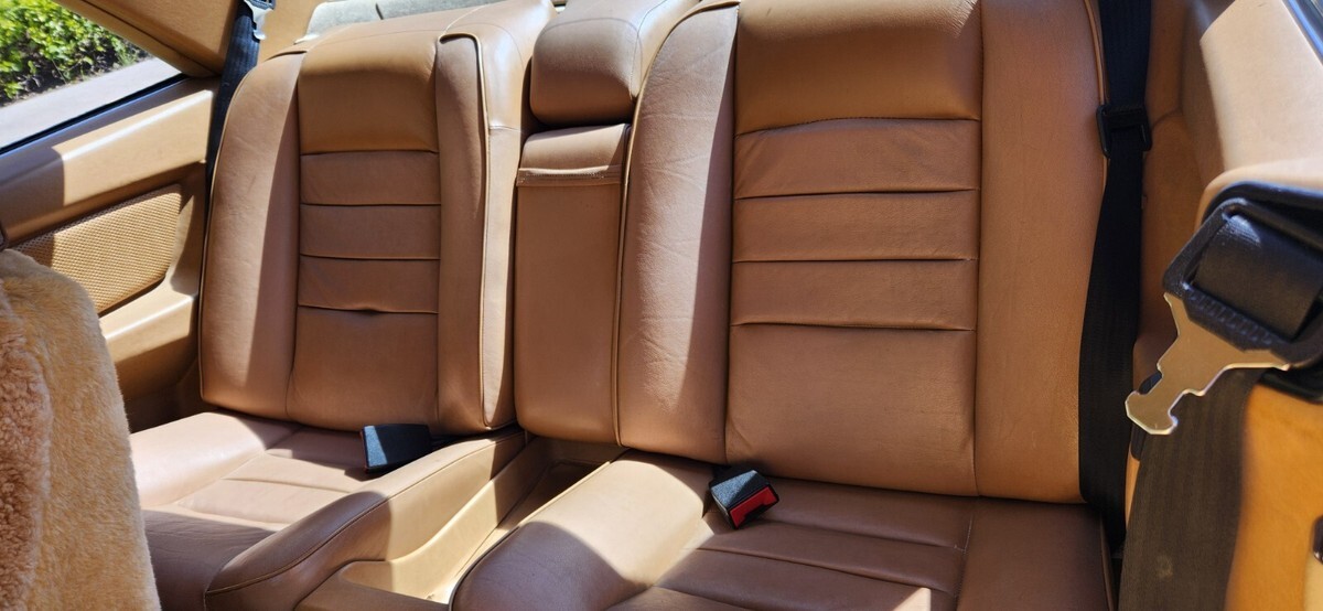 - With a tan interior and red exterior, this coupe seats up to 4 people and has a mileage of 209,000.