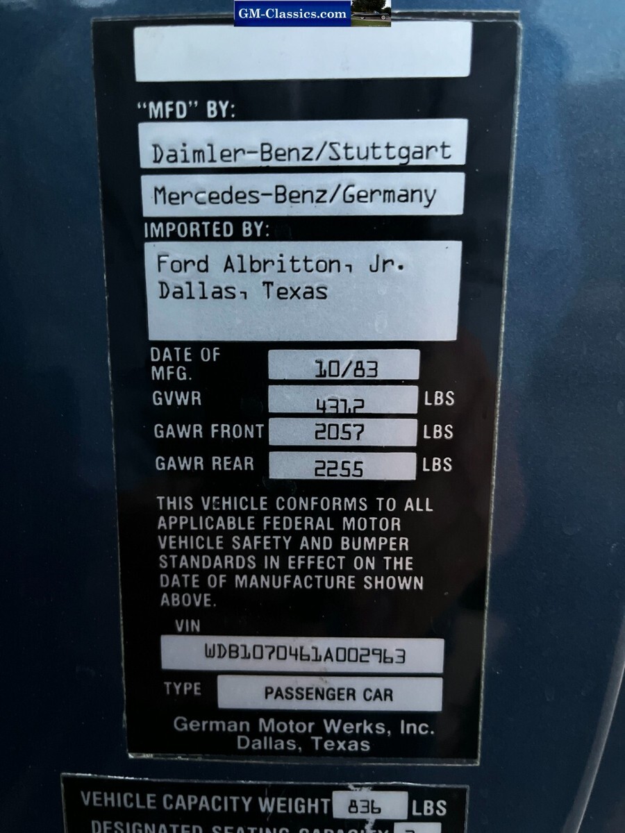 Mercedes SL500, Imported new In Dallas TX in 1984, remained here all its life. Extreme documentation including the $44000 check paid to buy this car in late 1983, this car was owned by a well known Texas Business man and Philanthropist/donor to Texas A&M. 60K Miles. One of 1793 500SL's built worldwide for 1984. Full function euro equip, lamps, lamp tilt, and R12 AC. All options, rear seat and heated seats. Very original, always preserved and cherished. Open checkbook service over its life. Svc includes timing chain/guides and ALL of the hard expensive items. 1984 true German BBS RS 16 wheels dated 1984. Yes top is excellent too. One of the most striking preserved Euro SL500s seen.