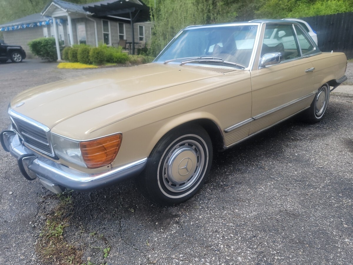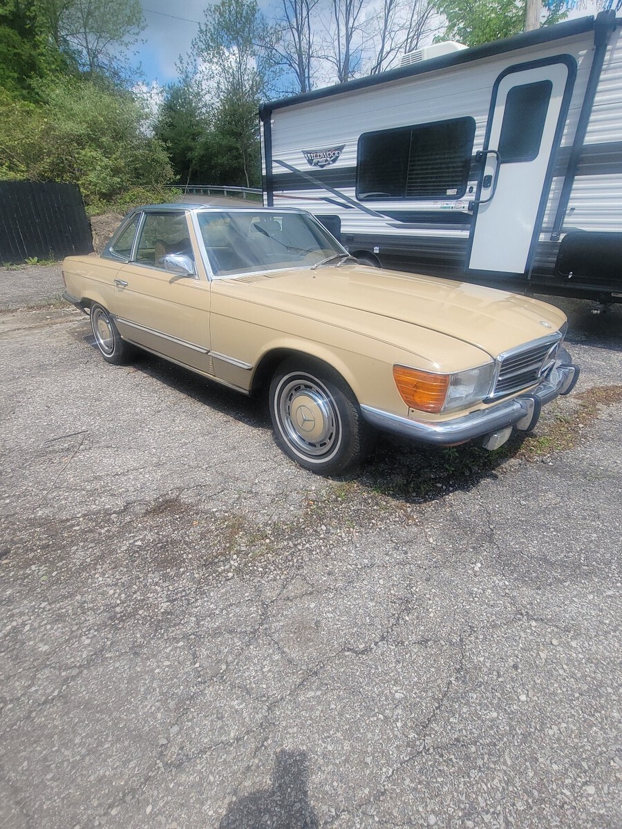 This 1973 Mercedes-Benz 350SL is an original vehicle that the owner has had for one year. It is drivable and not regularly driven. The car has a brown color and a clean title. The mileage on the vehicle is 76,192.