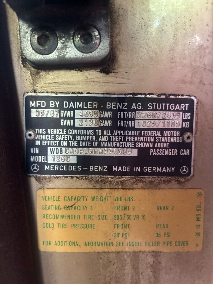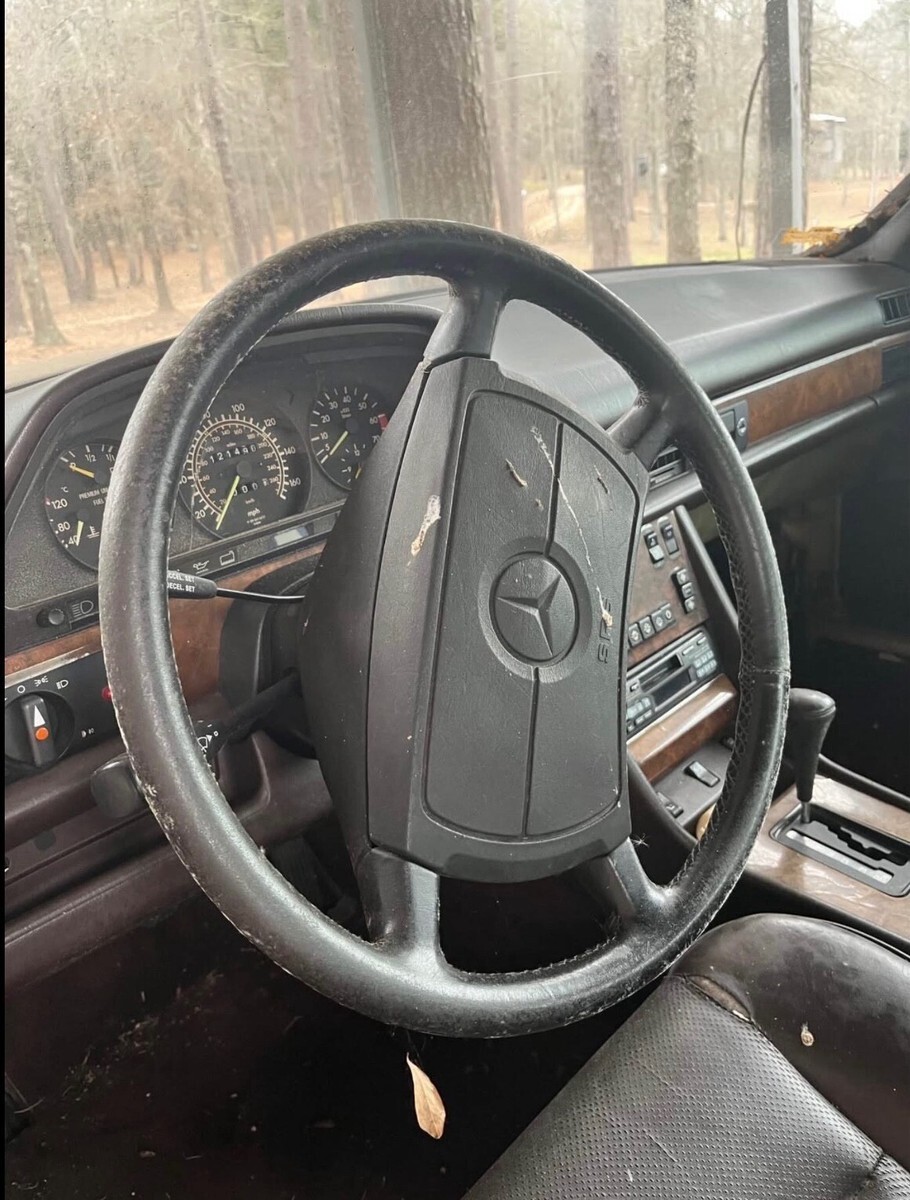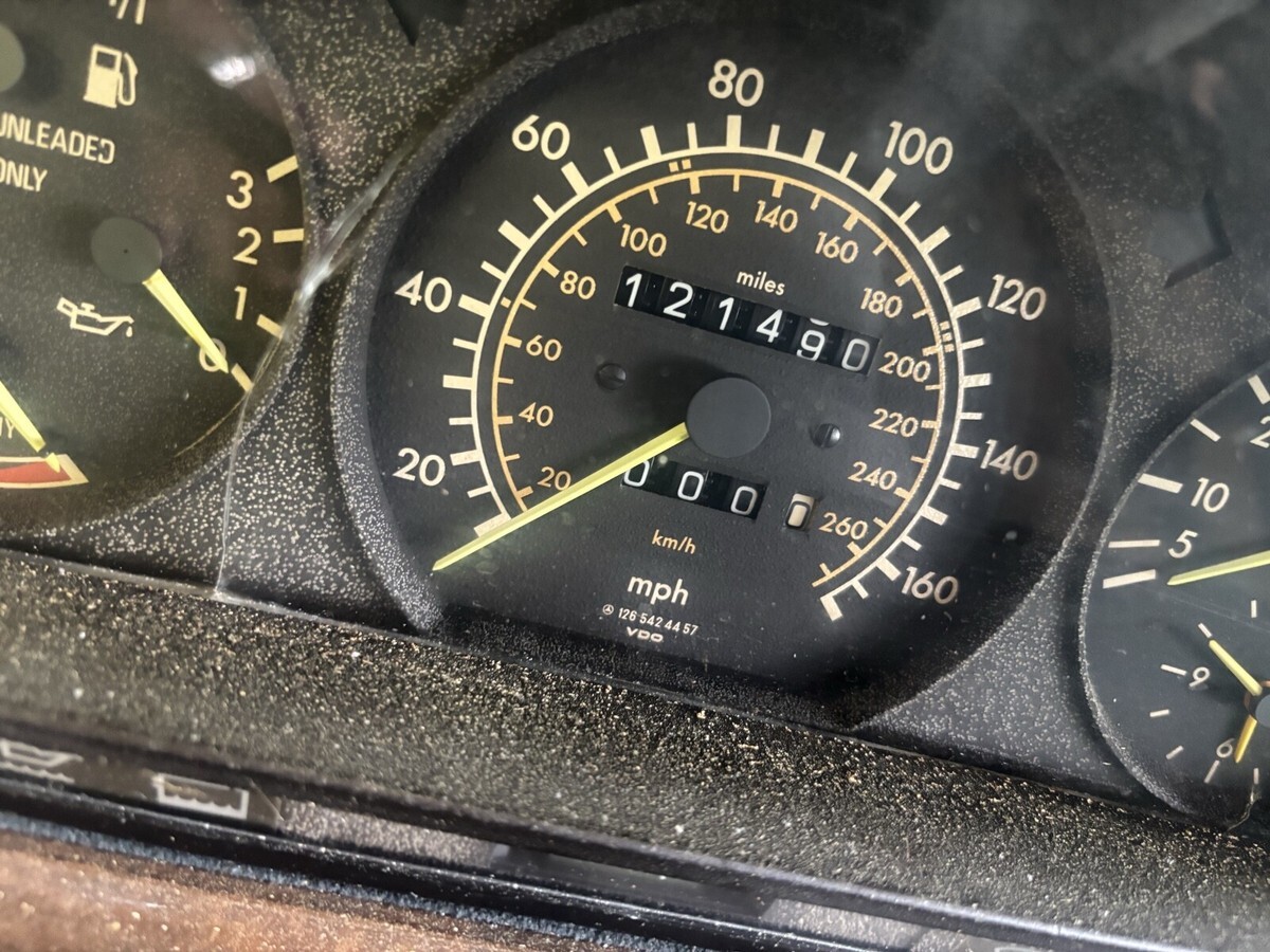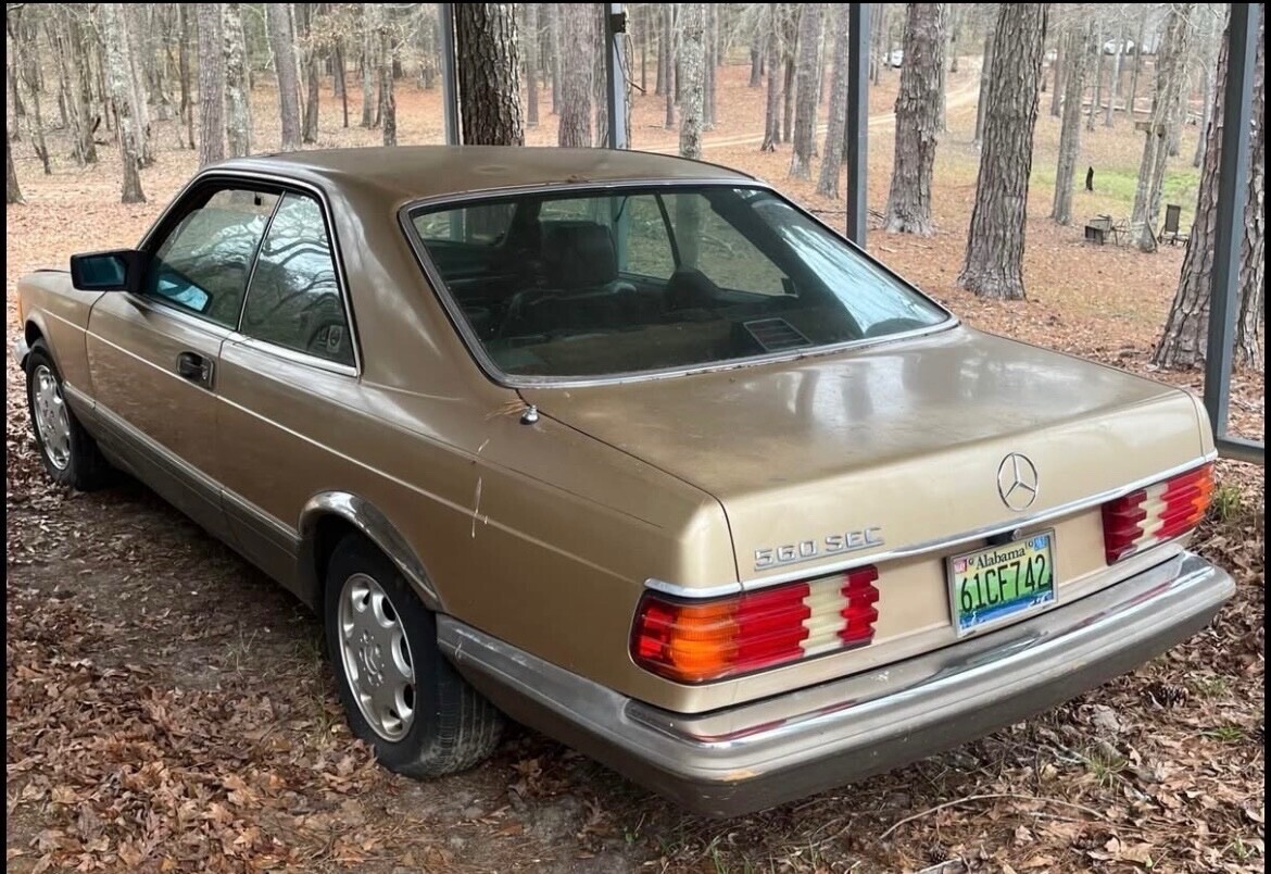 1987 gold Mercedes-Benz 560 SEC comes with extra interior and part, only 121,000 miles, runs with gas in carburetor.