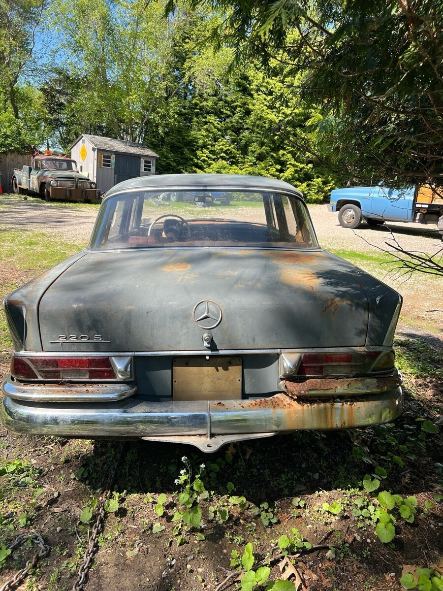 Barn find sitting since 2000. 1961 Mercedes 220s 4 door. Milage shows 39,120 and is original to my knowledge. The car is complete and pretty straight. Doors open and close very nice. Trim is all in good condition. 6 cylinder engine is locked up from sitting. Manual transmission. The car rolls freely. Some rust underneath. I do not have a key so can not open the glove box or trunk. Great parts car or restoration. I have previous registrations and original service manuals and owners manuals. Located in southold NY 11971. Buyer pays sipping but I will assist loading for shipping.