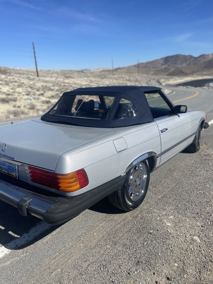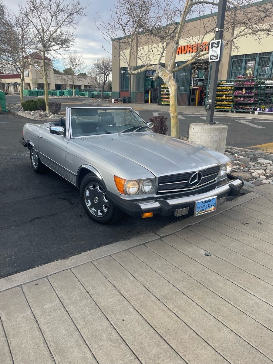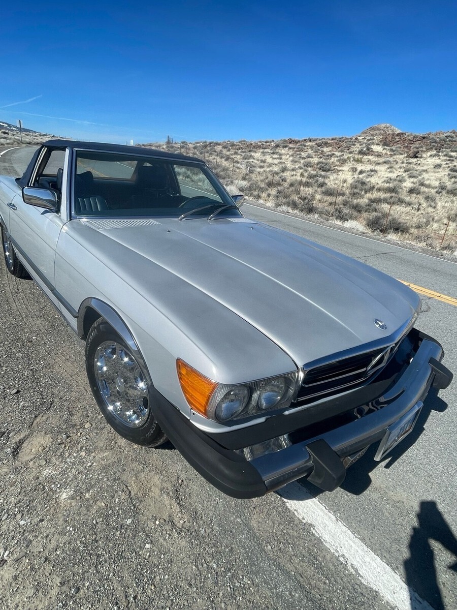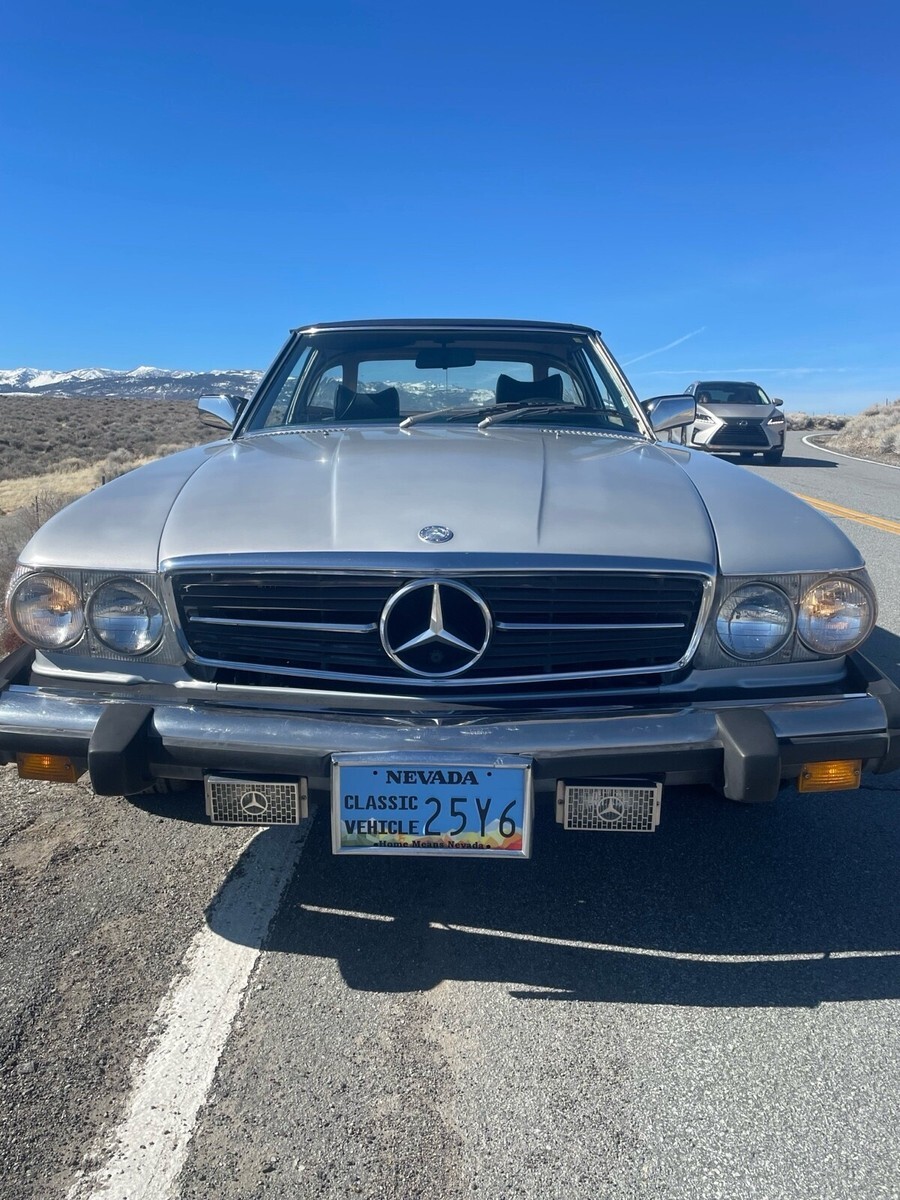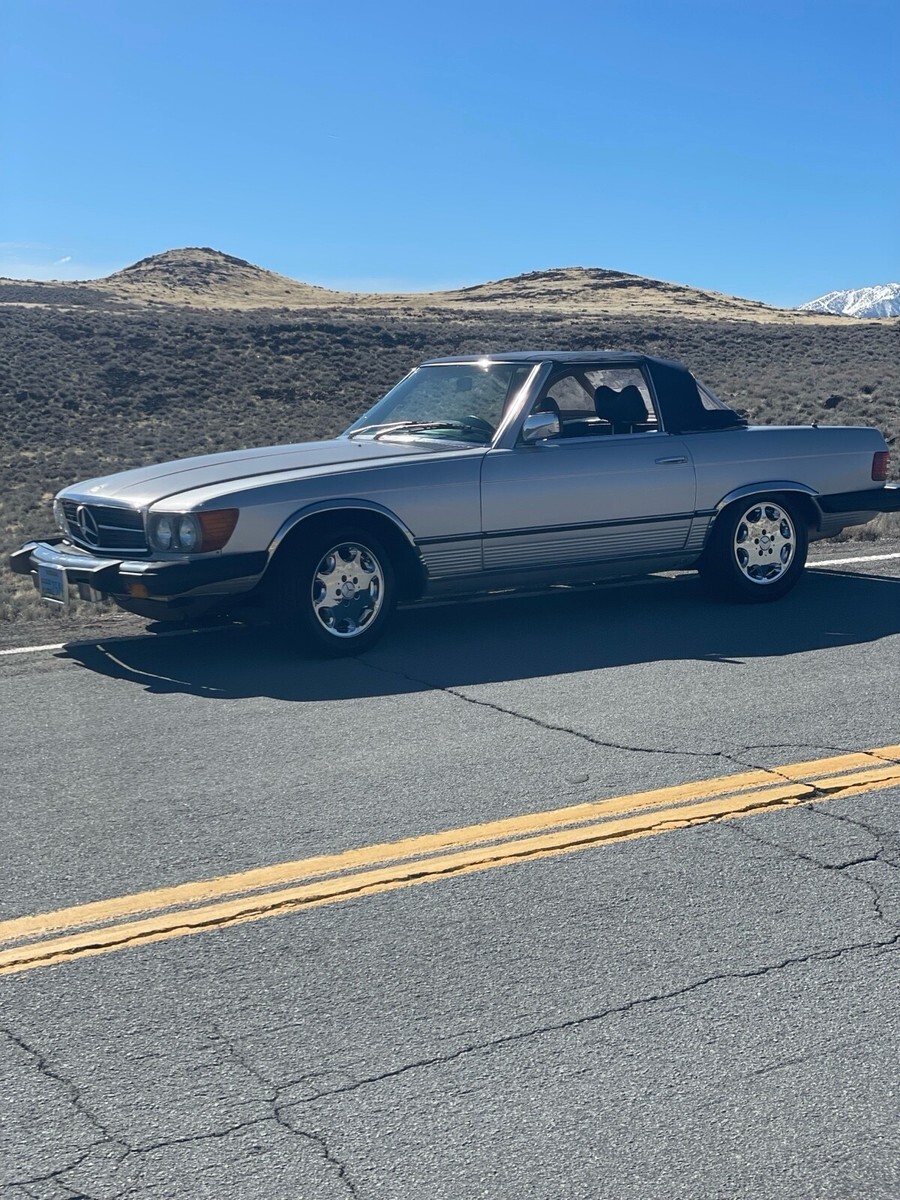 1977 MB 450 SL in Astral Silver with blue interior and blue top. Automatic transmission with v8 4.5L engine. Has ~114,000 original miles. Frame is rust free and structurally sound. Mechanically car is very good and reliable a wonderful cruiser. Blue convertible top is in excellent condition and also have hard top with carrier stand for hard top.