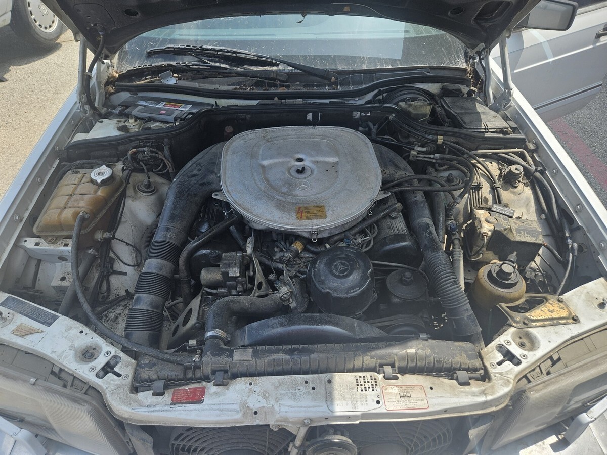 This W126 was purchased from an estate sale and has been sitting for close to 7 years. I got her running ans driving but she will need some work to be road ready. Has new tires, windows/sunroof work, seats are good, dash is good, has a slight rattle when in reverse but engages fine, paint is in good shape.