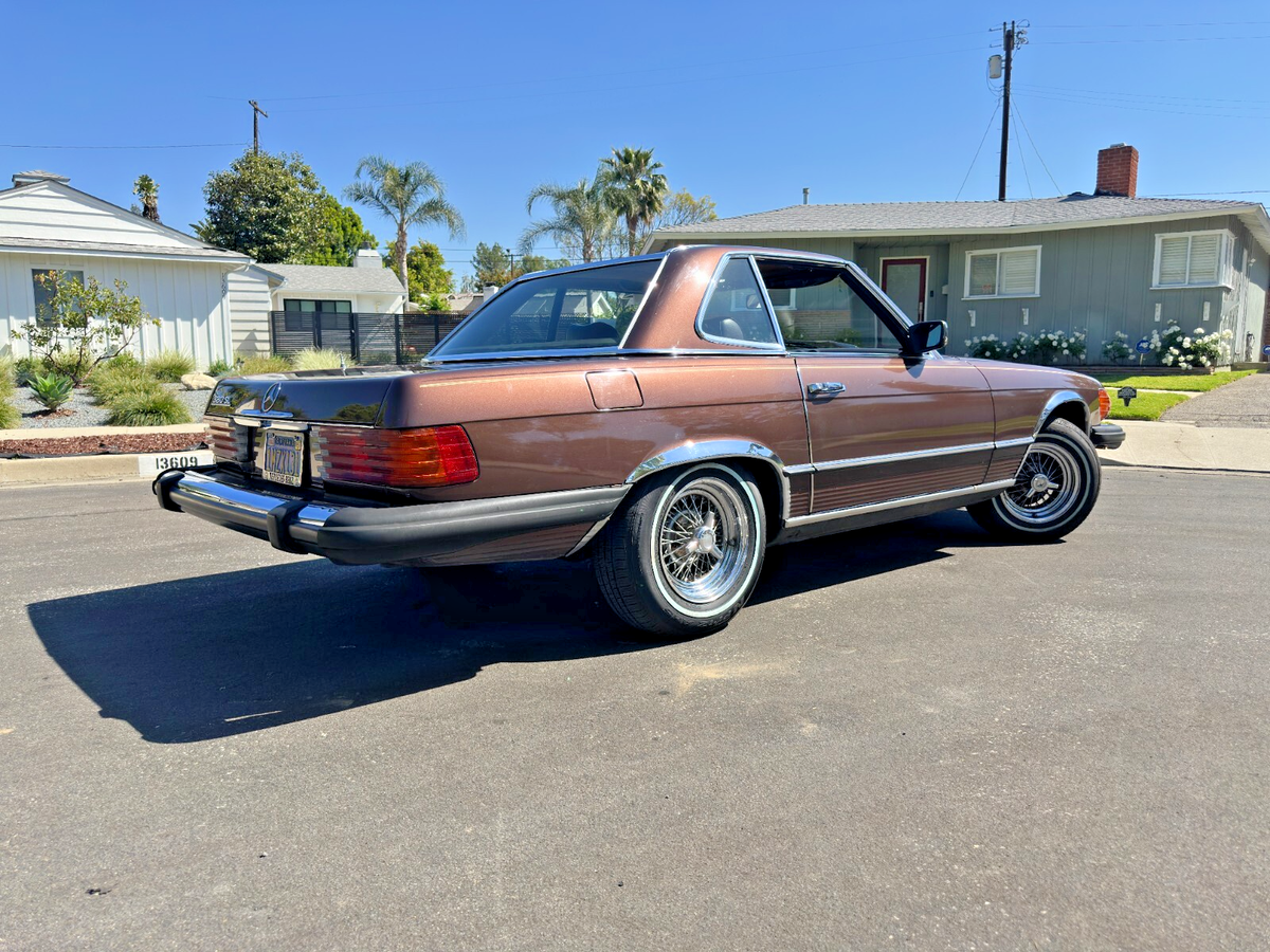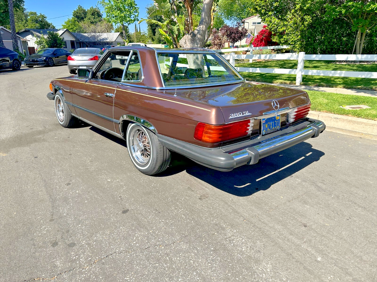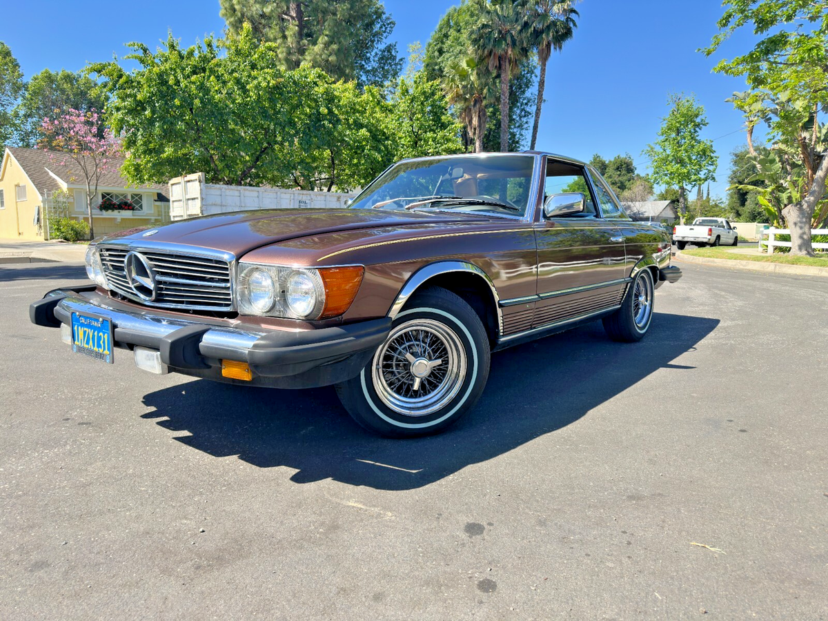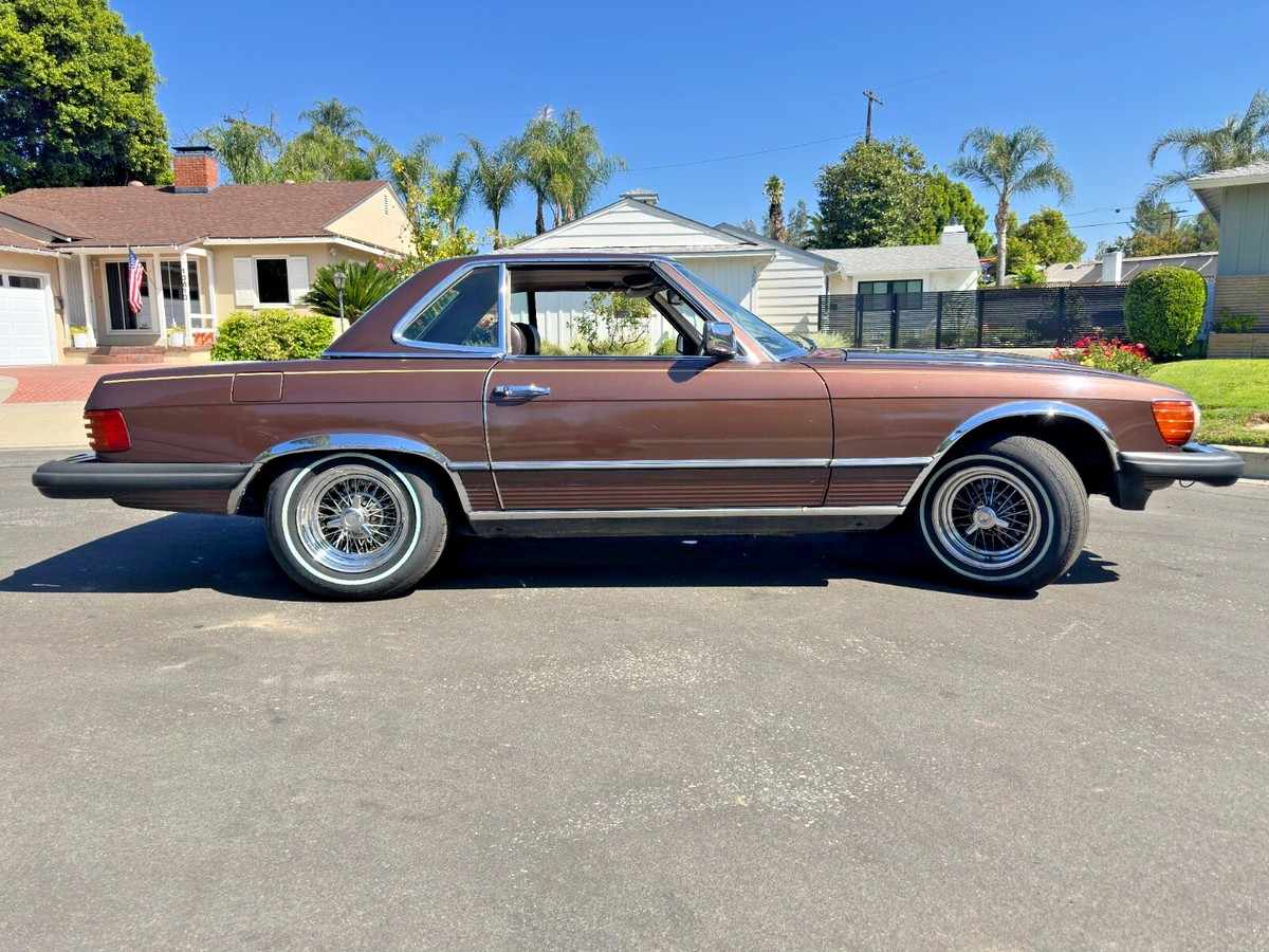 This isn’t just a car. It’s a scene.Imagine warm asphalt under whitewalls, wind through your hair, and the deep, confident growl of a V8 engine gently reminding everyone around you that not all heroes wear Tesla badges.This 1981 Mercedes-Benz 380SL, finished in a rare and regal brown-on-brown combo, is equal parts gentleman and outlaw. The whitewall tires wrap around custom wire wheels like they were meant to star in a jazz album cover. Whether the factory hardtop is locked on for winter or the soft top is dropped (with character and a bit of TLC required), this SL makes every drive feel like a parade—and you’re the float.It runs smooth. The suspension is so soft it practically apologizes for bumps. Driving it feels less like commuting and more like yachting through a sea of Camrys. Whether you’re looking for a Sunday driver, a PCH daydream machine, or a vintage Benz with timeless curb appeal, this 380SL delivers. Title is clean. Ready to drive home—or straight to the Pacific Coast Highway.This SL is for the driver who values experience over efficiency, and attention over anonymity. It’s for someone who wants to make every errand look like a movie scene. You don’t drive this car—you arrive in it.
