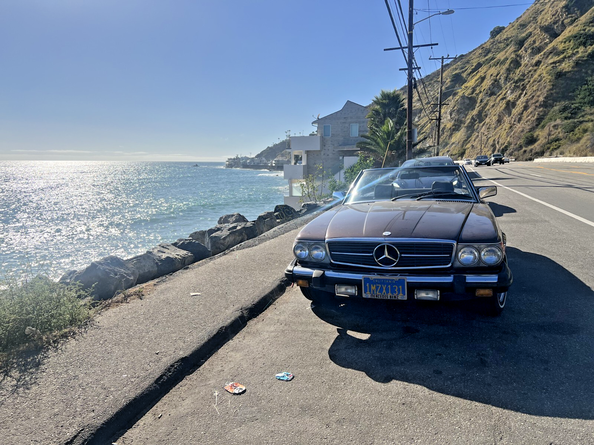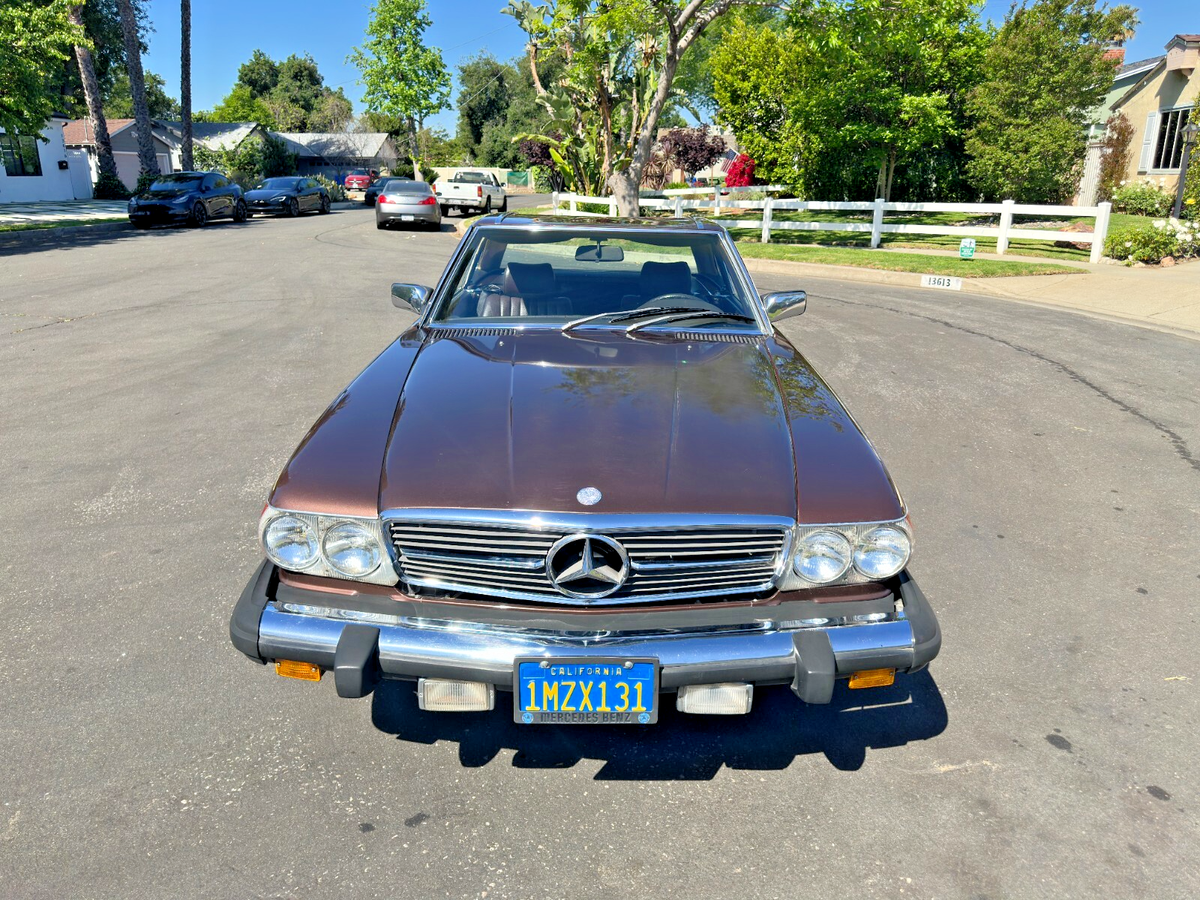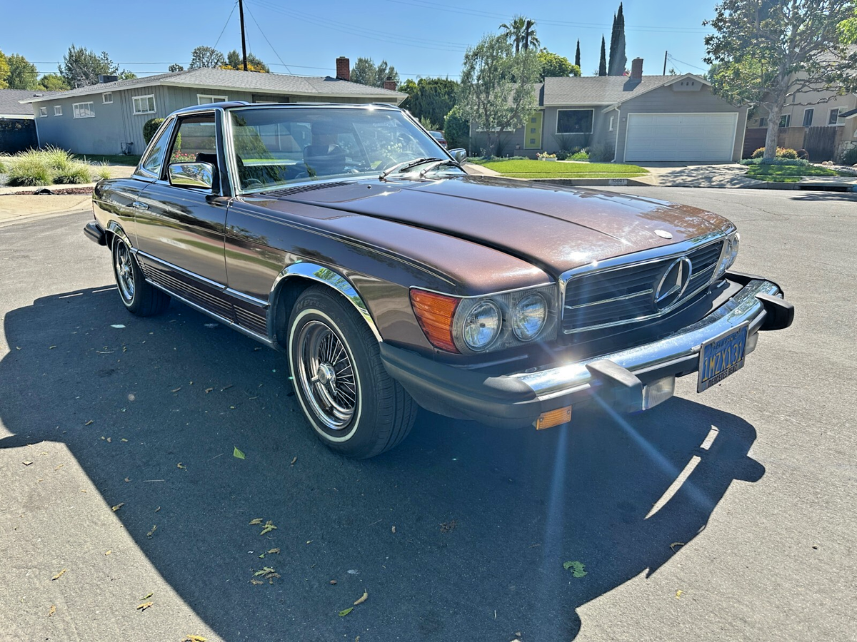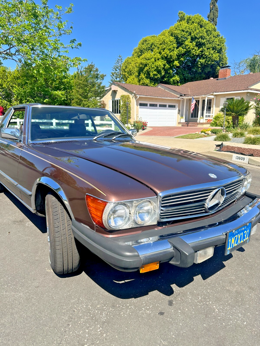 This isn’t just a car. It’s a scene.Imagine warm asphalt under whitewalls, wind through your hair, and the deep, confident growl of a V8 engine gently reminding everyone around you that not all heroes wear Tesla badges.This 1981 Mercedes-Benz 380SL, finished in a rare and regal brown-on-brown combo, is equal parts gentleman and outlaw. The whitewall tires wrap around custom wire wheels like they were meant to star in a jazz album cover. Whether the factory hardtop is locked on for winter or the soft top is dropped (with character and a bit of TLC required), this SL makes every drive feel like a parade—and you’re the float.It runs smooth. The suspension is so soft it practically apologizes for bumps. Driving it feels less like commuting and more like yachting through a sea of Camrys. Whether you’re looking for a Sunday driver, a PCH daydream machine, or a vintage Benz with timeless curb appeal, this 380SL delivers. Title is clean. Ready to drive home—or straight to the Pacific Coast Highway.This SL is for the driver who values experience over efficiency, and attention over anonymity. It’s for someone who wants to make every errand look like a movie scene. You don’t drive this car—you arrive in it.