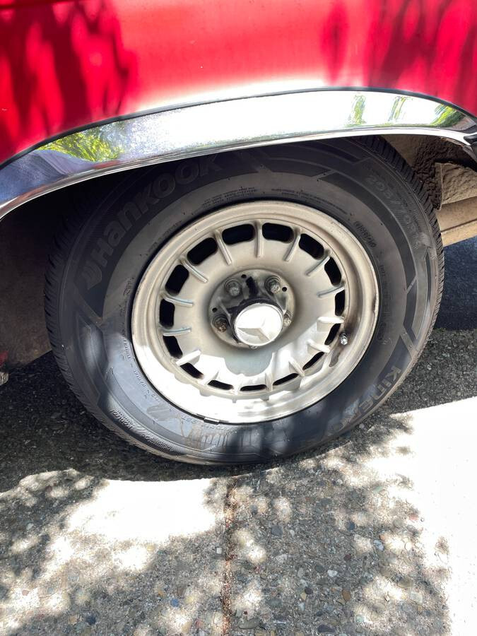 1978 Mercedes 450SL Convertible w/ Hardtop - fire engine red NEW TIRES - 166,000 miles All original parts. Drives great. BRAND NEW TIRES !! The bumpers have been tucked in several inches, so the car is much more compact like with the European bumpers. Rear wheel drive V8 engine 4.5 liter 180 HP Automatic Authentic 14" Bundt wheels Brand new tires Original Bosch stainless steel wipers 3670 lbs tucked in bumpers 166,000 miles I have owned and occasionally driven the car since 2016. Photos show old tires. I just put a new set of Hankook Kinergy 14" 205/70R14 tires on it ($700 value) In good condition.Registered. Motor starts and running strong.Plastic window in original canvas top need to be fixed (an aftermarket canvas replacement costs only $450) I just installed a new refurbished aluminum body AC Servo, but need to check vacuum lines and charge refrigerant, so currently not working. Blower is working. Front wheel bearings need attention. Minor other fixes needed such as replacing a few instrument light bulbs, brake light sensor. Comes with matching red hard top with tan interior, just de-rusted and touched up the inside. Rain/dust cover included The Mercedes-Benz R107 were produced from 1971 until 1989, The R107/SL is a two-seat convertible with a detachable roof. It replaced the W113 SL-Class in 1971 and was replaced by the R129 SL-Class in 1989.